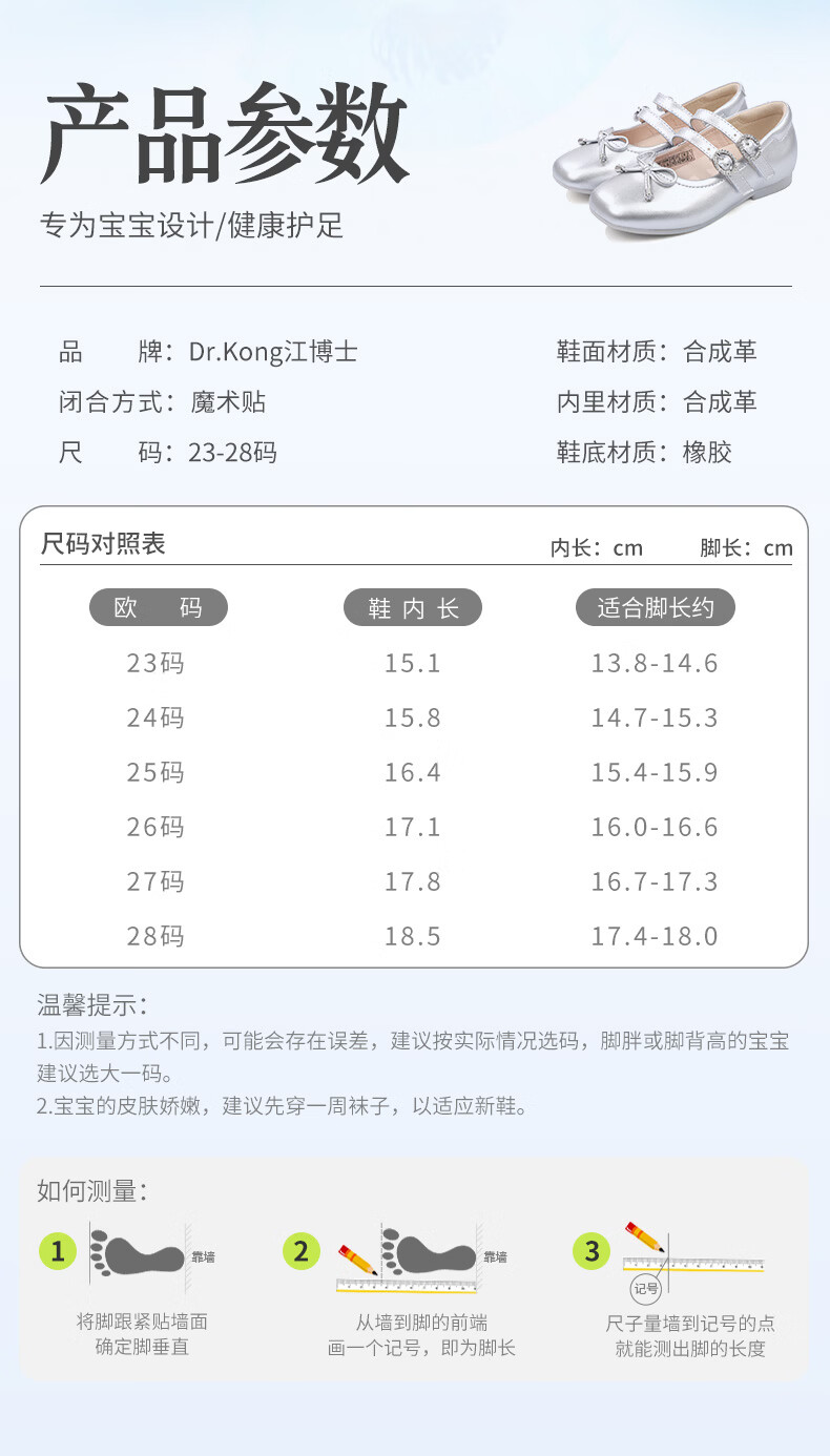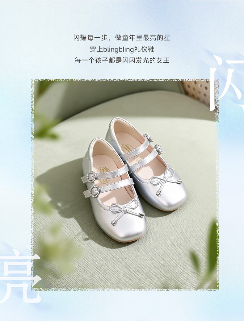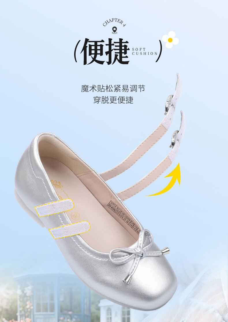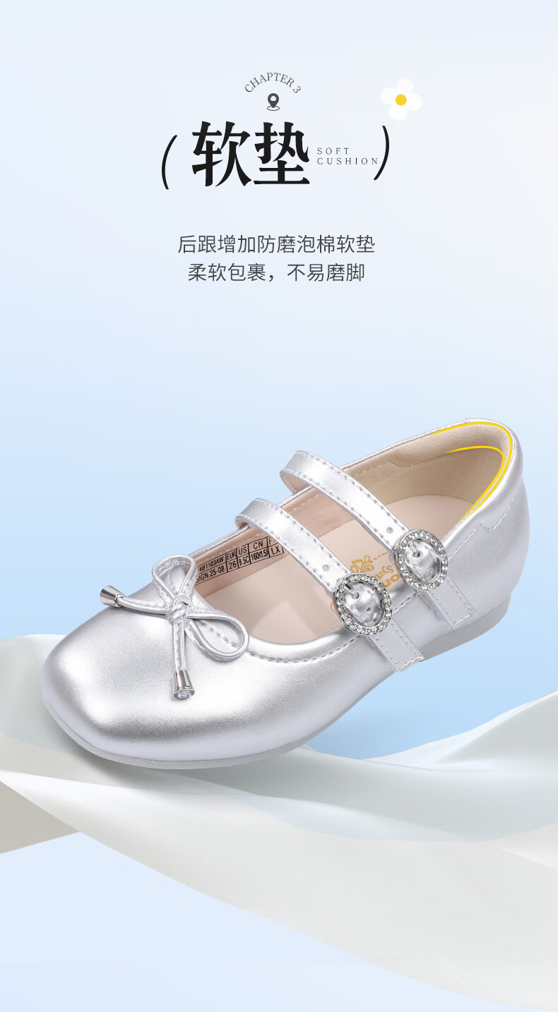Dr. Jiang (DR KONG) spring girls' off-white solid color simple princess etiquette shoes campus performance children's leather shoes silver 23 feet length about 13.8-14.6