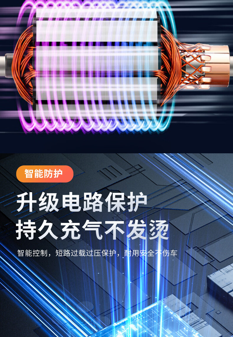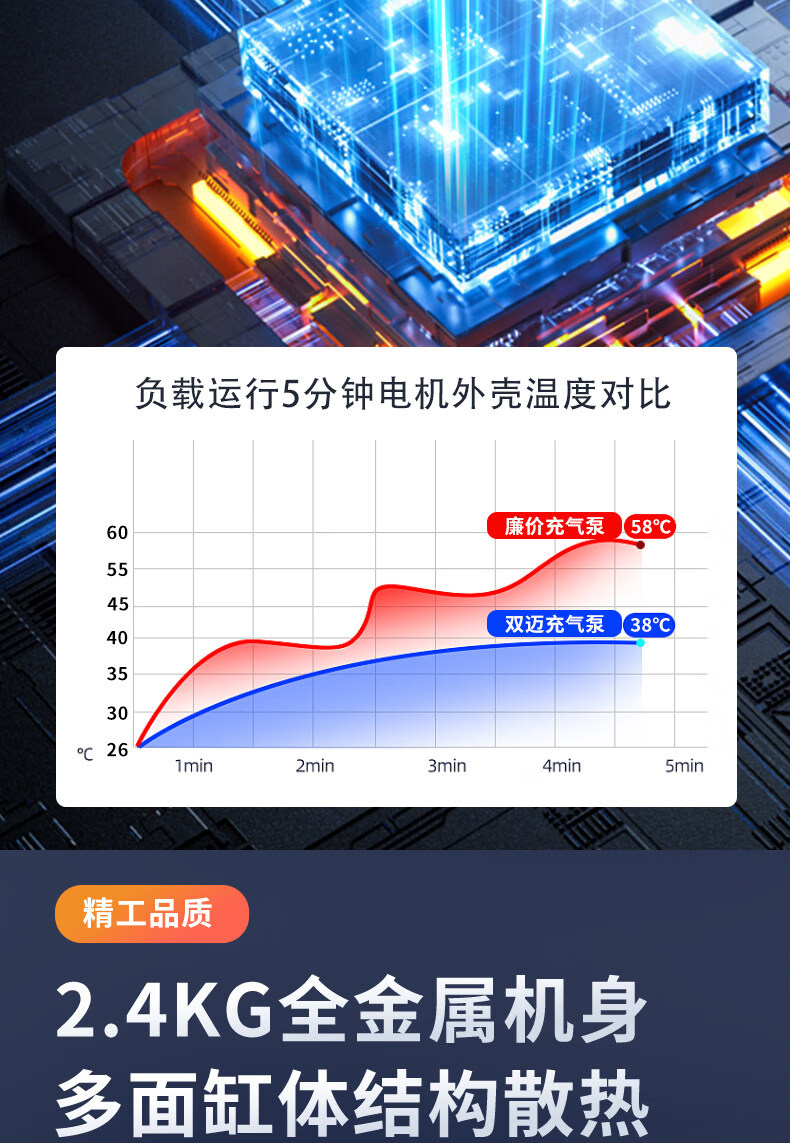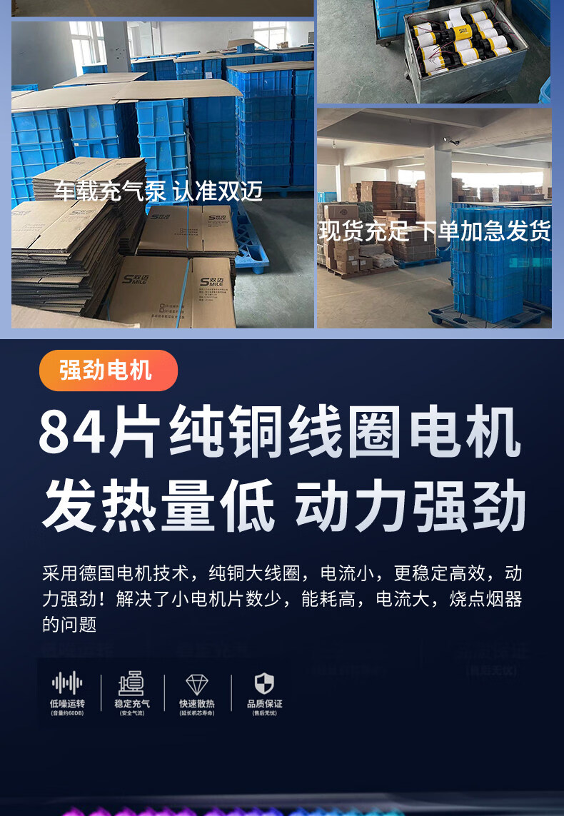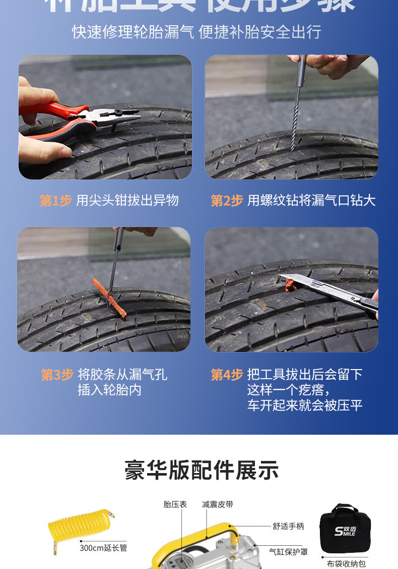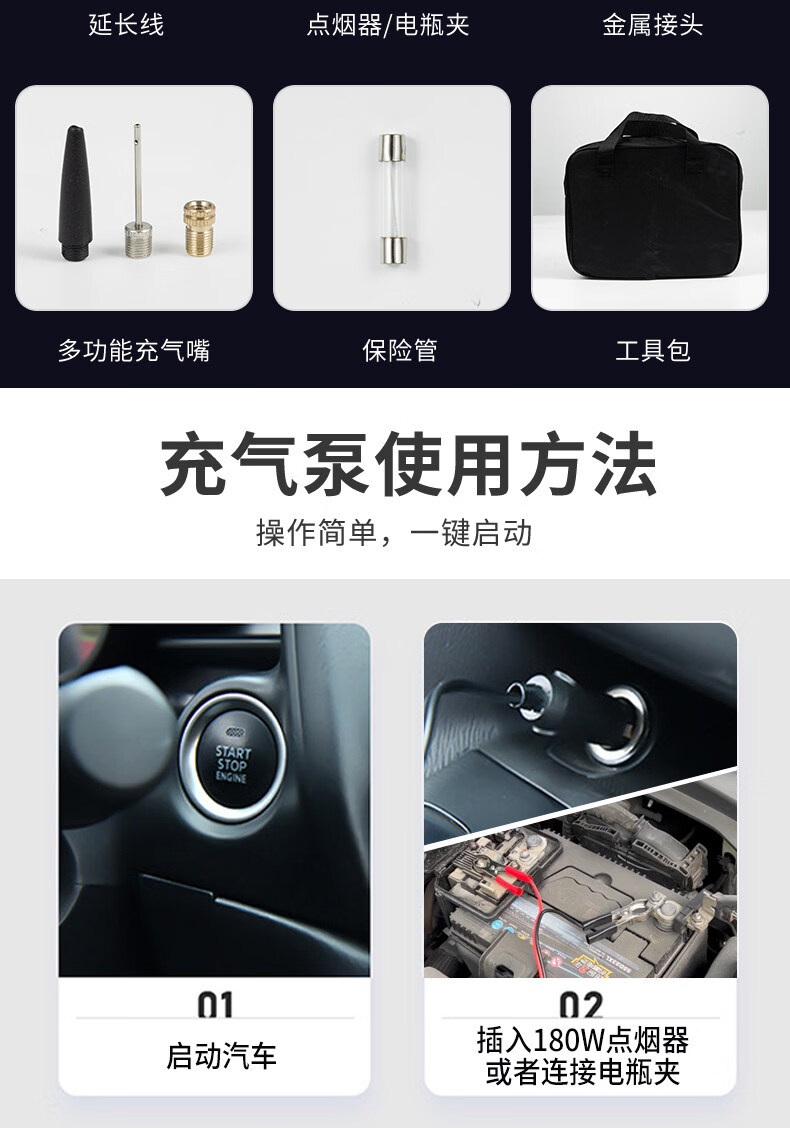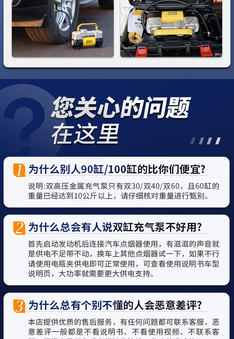 Gongma Shuangmai car air pump portable car tire double cylinder high pressure high power electric car air pump 12V yellow 70 piece motor youth version double cylinder pointer model manual stop + base