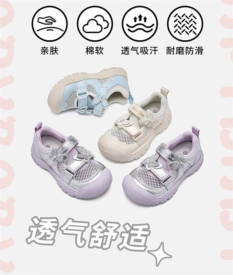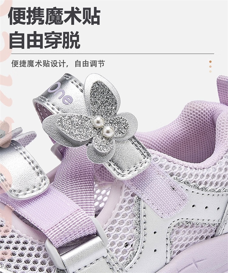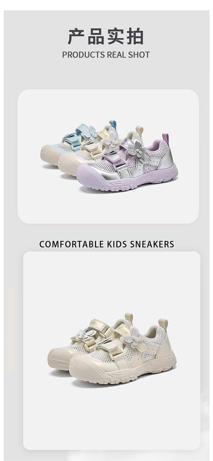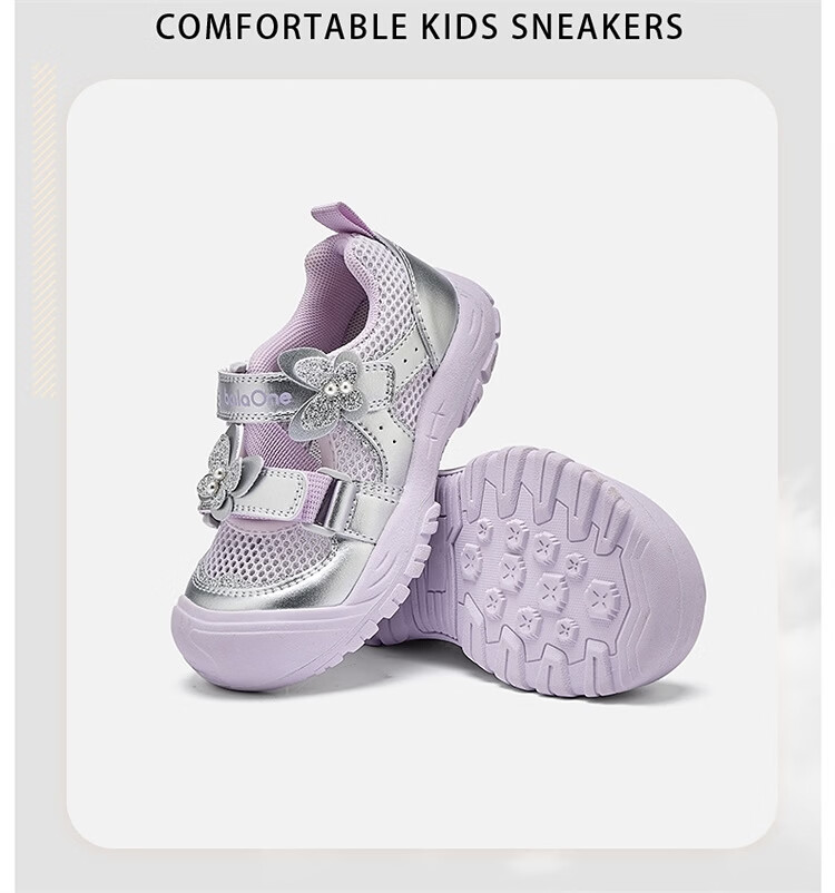 BALABALA children's shoes children's sports shoes girls 2026 new spring and autumn sweet butterfly breathable outdoor shoes gray purple tone 00327 26 (foot length 16cm)