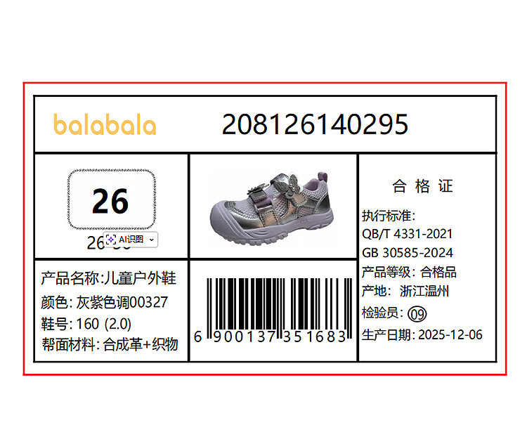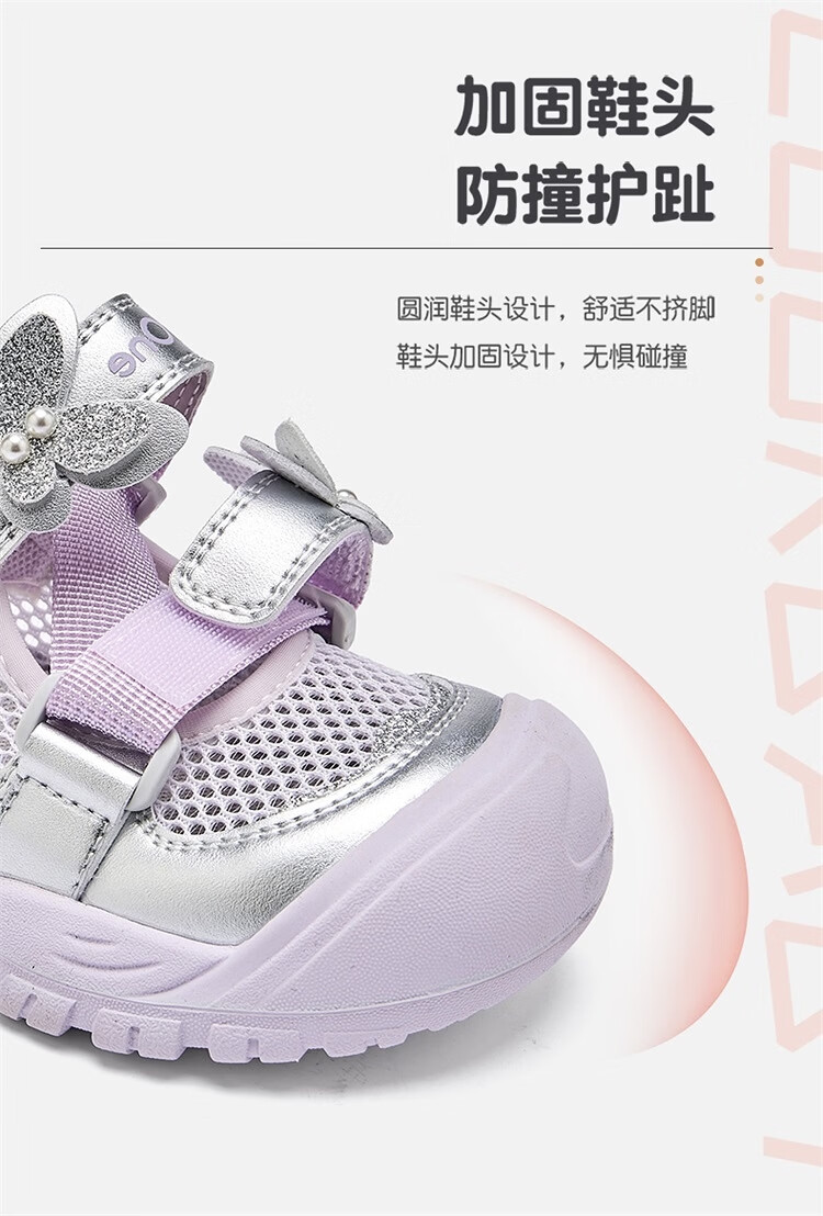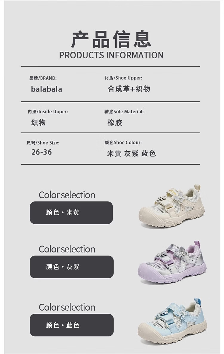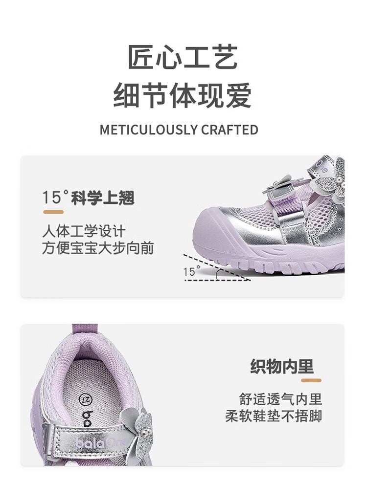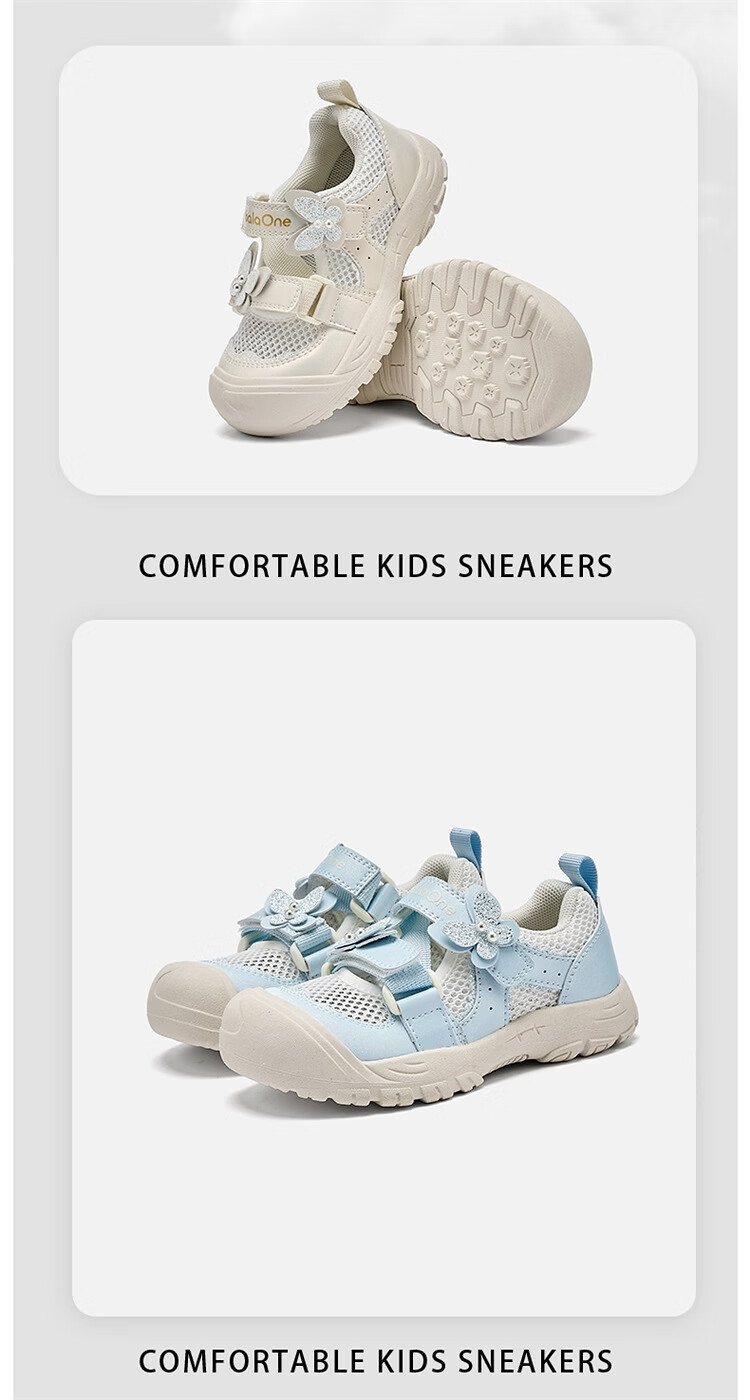 BALABALA children's shoes children's sports shoes girls 2026 new spring and autumn sweet butterfly breathable outdoor shoes gray purple tone 00327 26 (foot length 16cm)