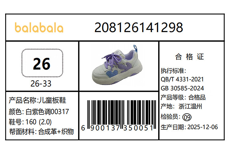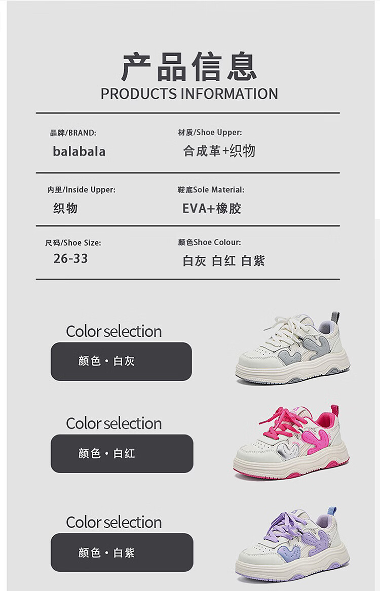 BALABALA children's shoes, children's casual shoes for boys and girls, 2026 new spring and autumn contrast color versatile campus style sneakers, white and red tone 00316 26 (foot length 16cm)