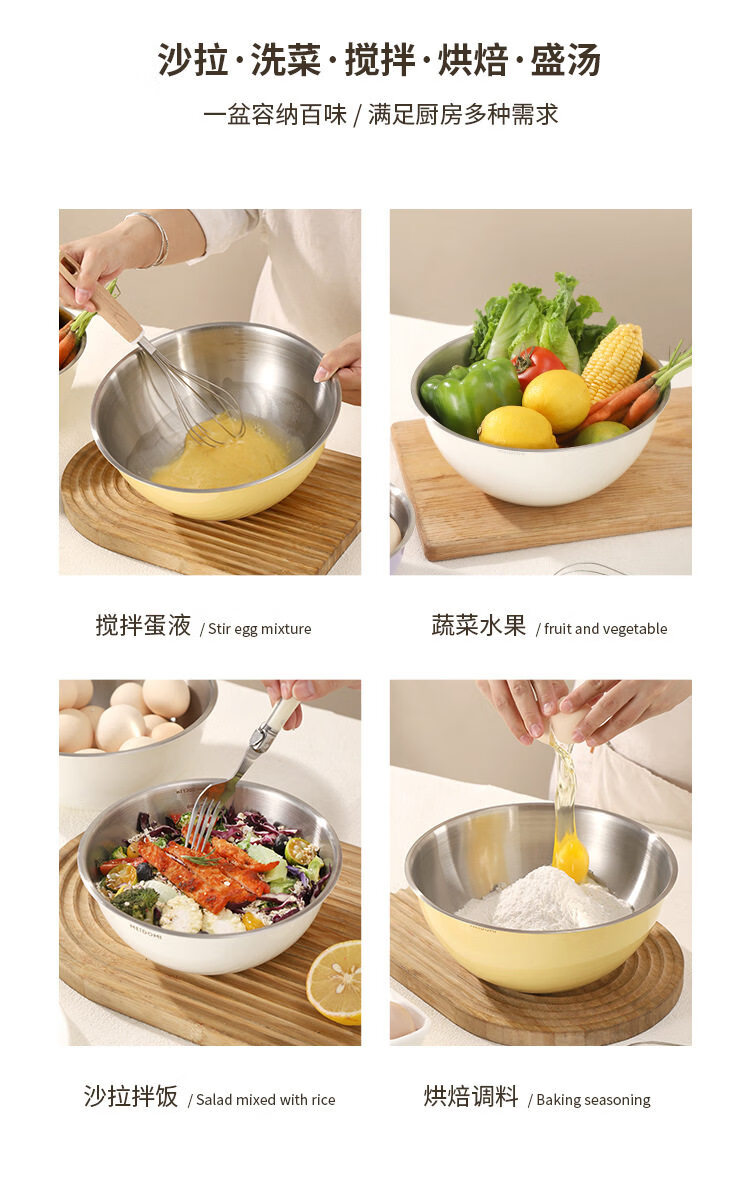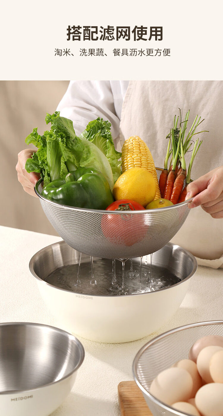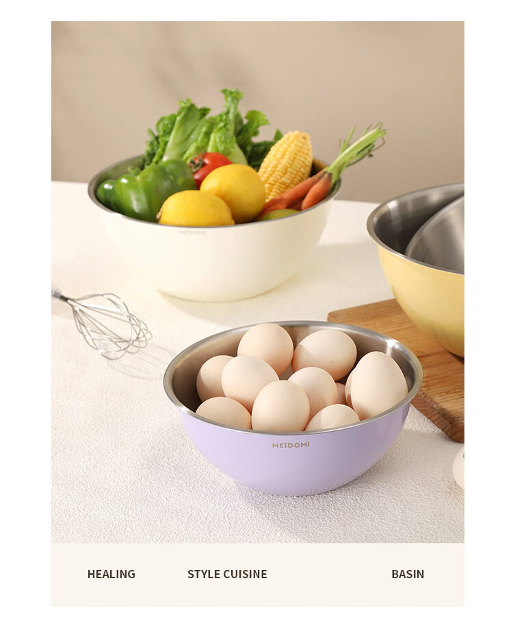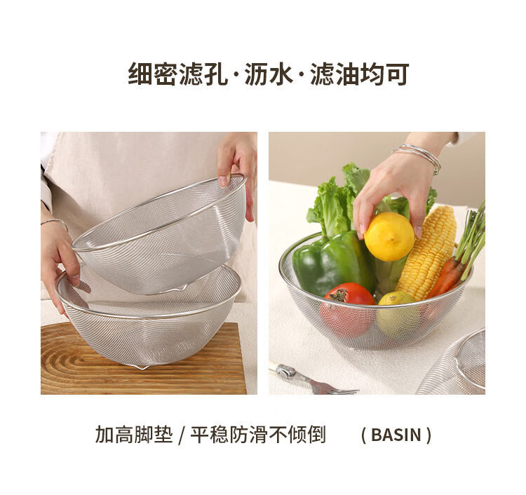Aoyanlai Cream Drainage Basket Stainless Steel Washing Basin Home Kitchen Mixed Vegetables Washing Vegetables and Noodles Colorful Salad Bowl Purple 25cm Basin + 24cm Drainage Net Two-piece Set