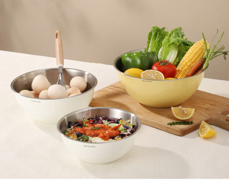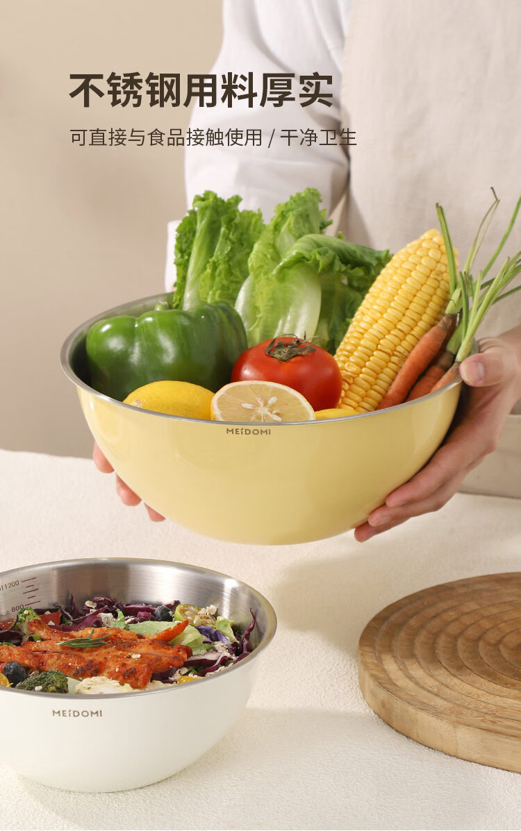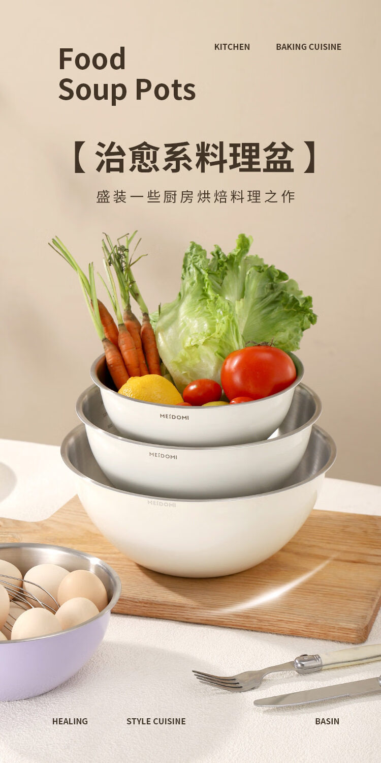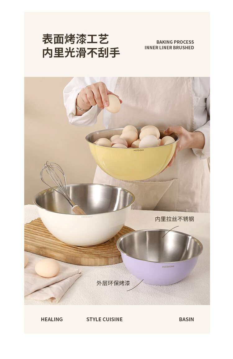 Aoyanlai Cream Drainage Basket Stainless Steel Washing Basin Home Kitchen Mixed Vegetables Washing Vegetables and Noodles Colorful Salad Bowl Purple 25cm Basin + 24cm Drainage Net Two-piece Set
