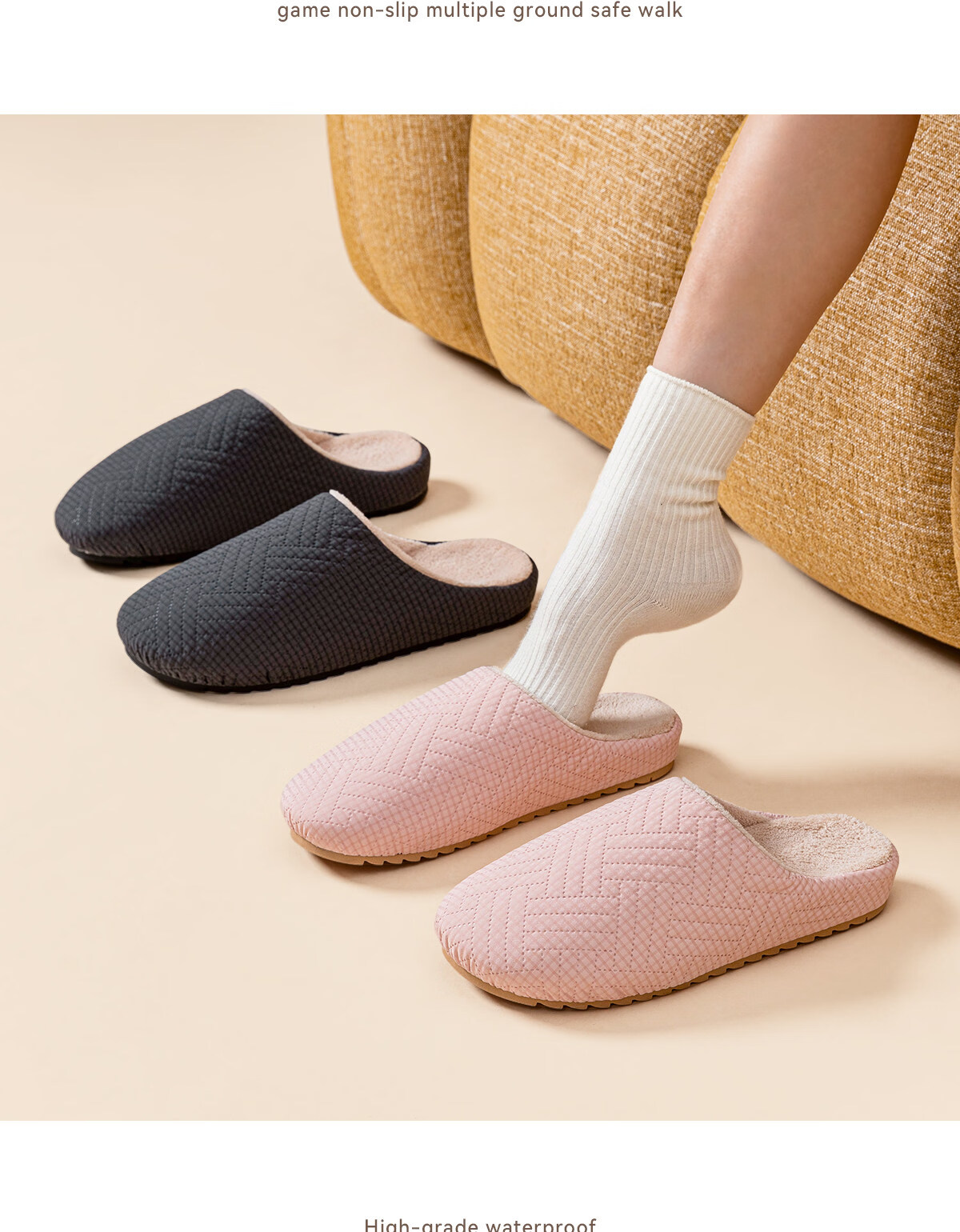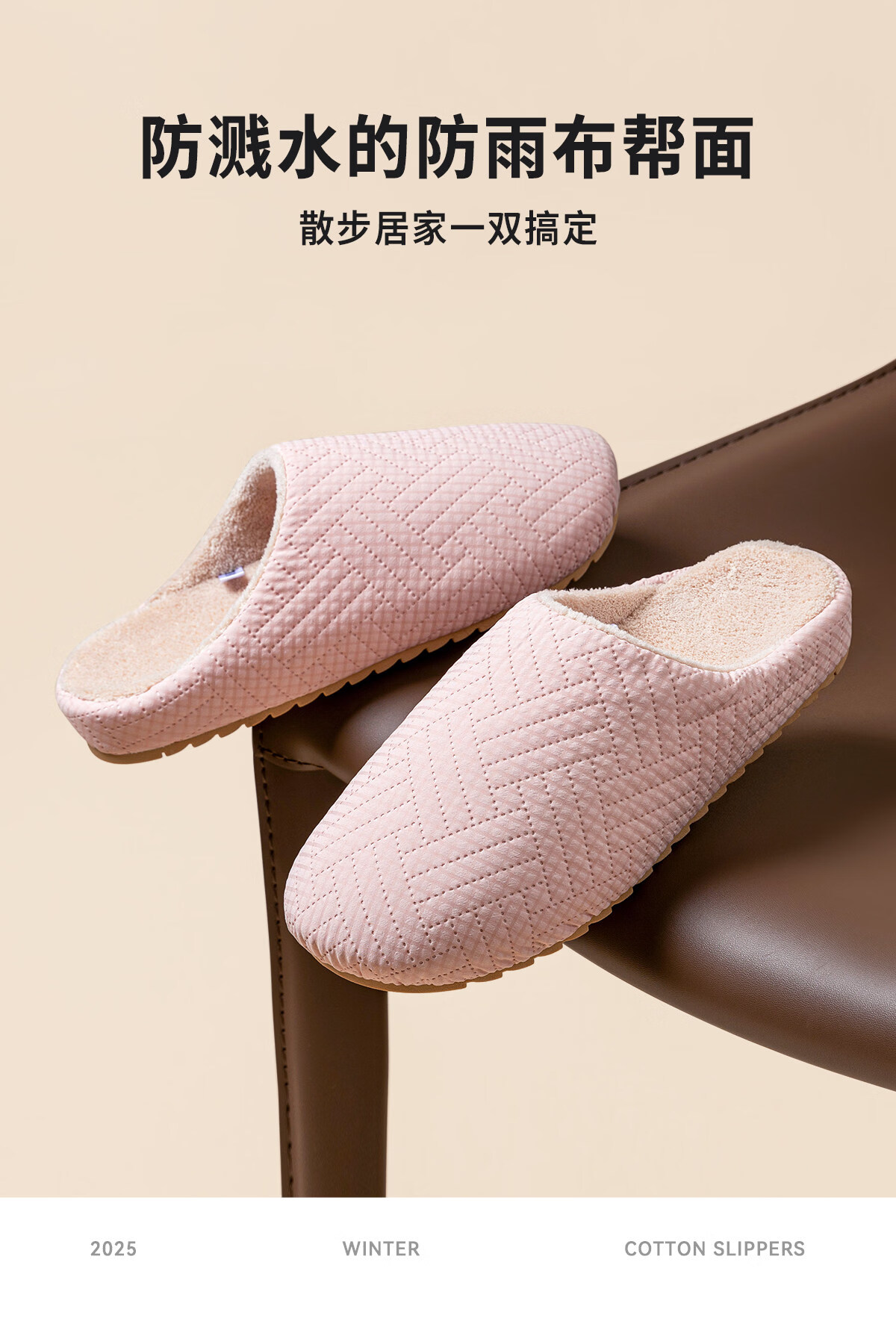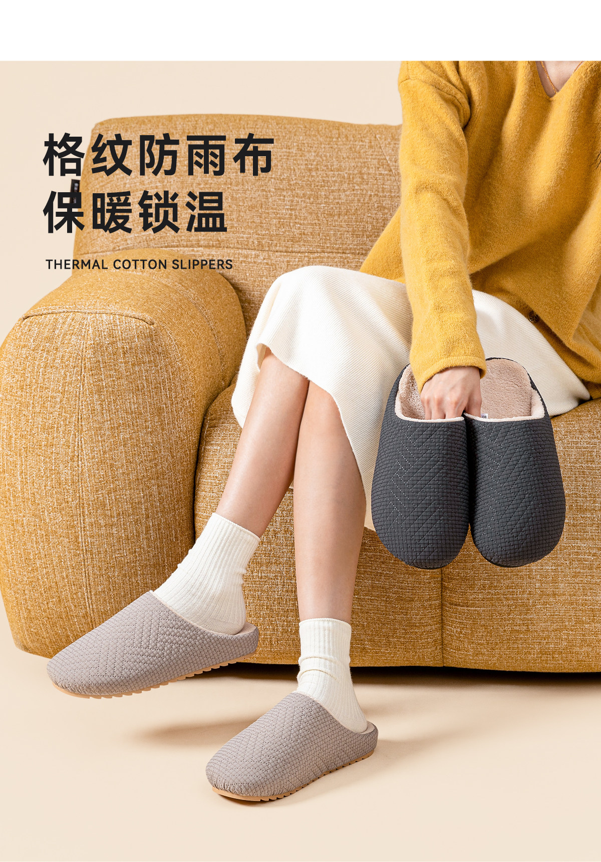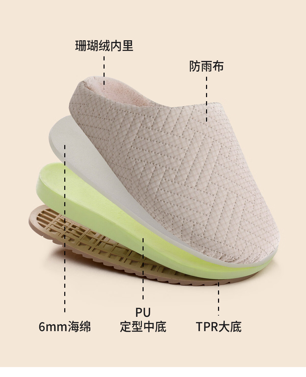 Merdor thick-soled cotton slippers for women winter indoor home household couple soft-soled non-slip warm waterproof slippers for women autumn and winter beige 35-36