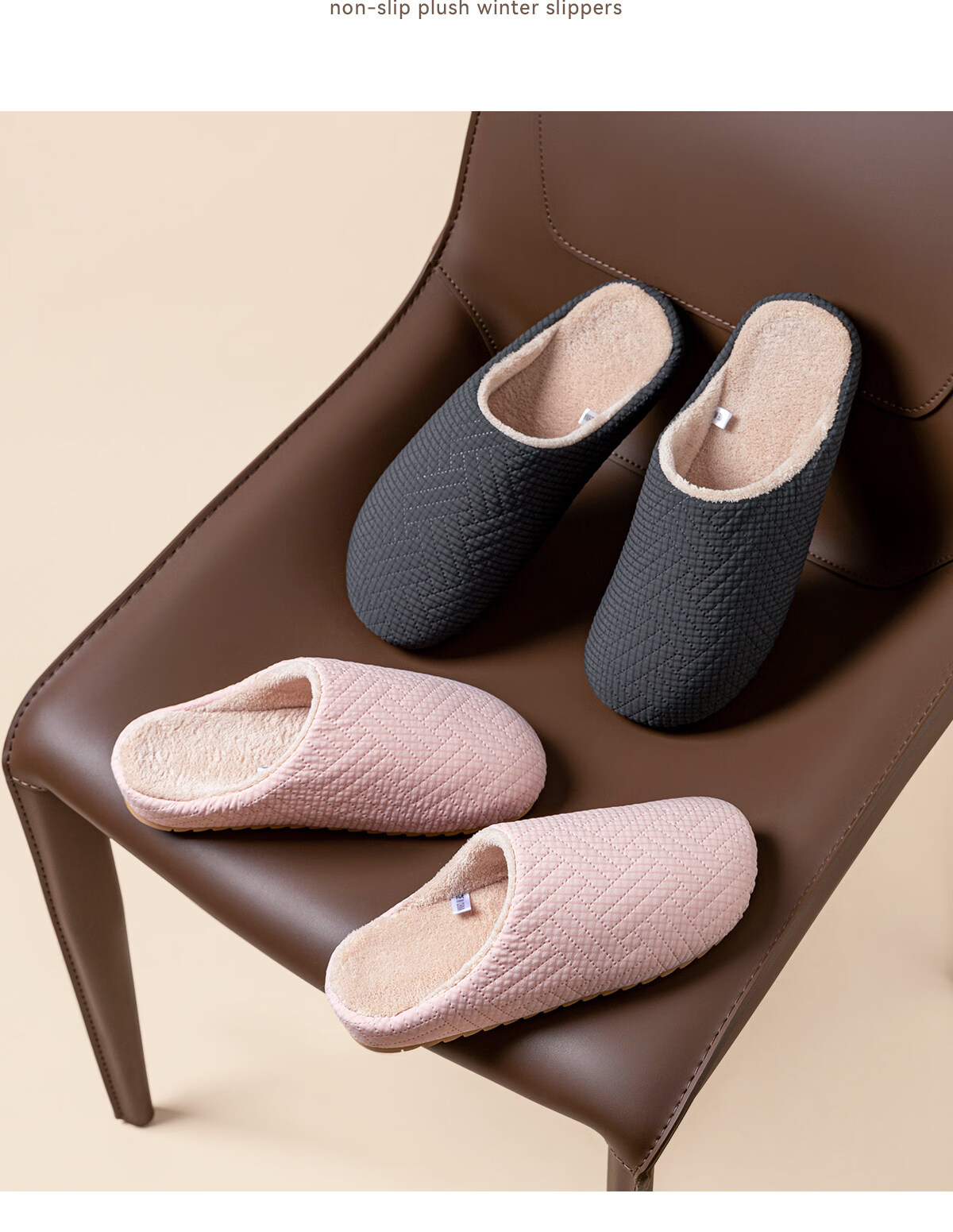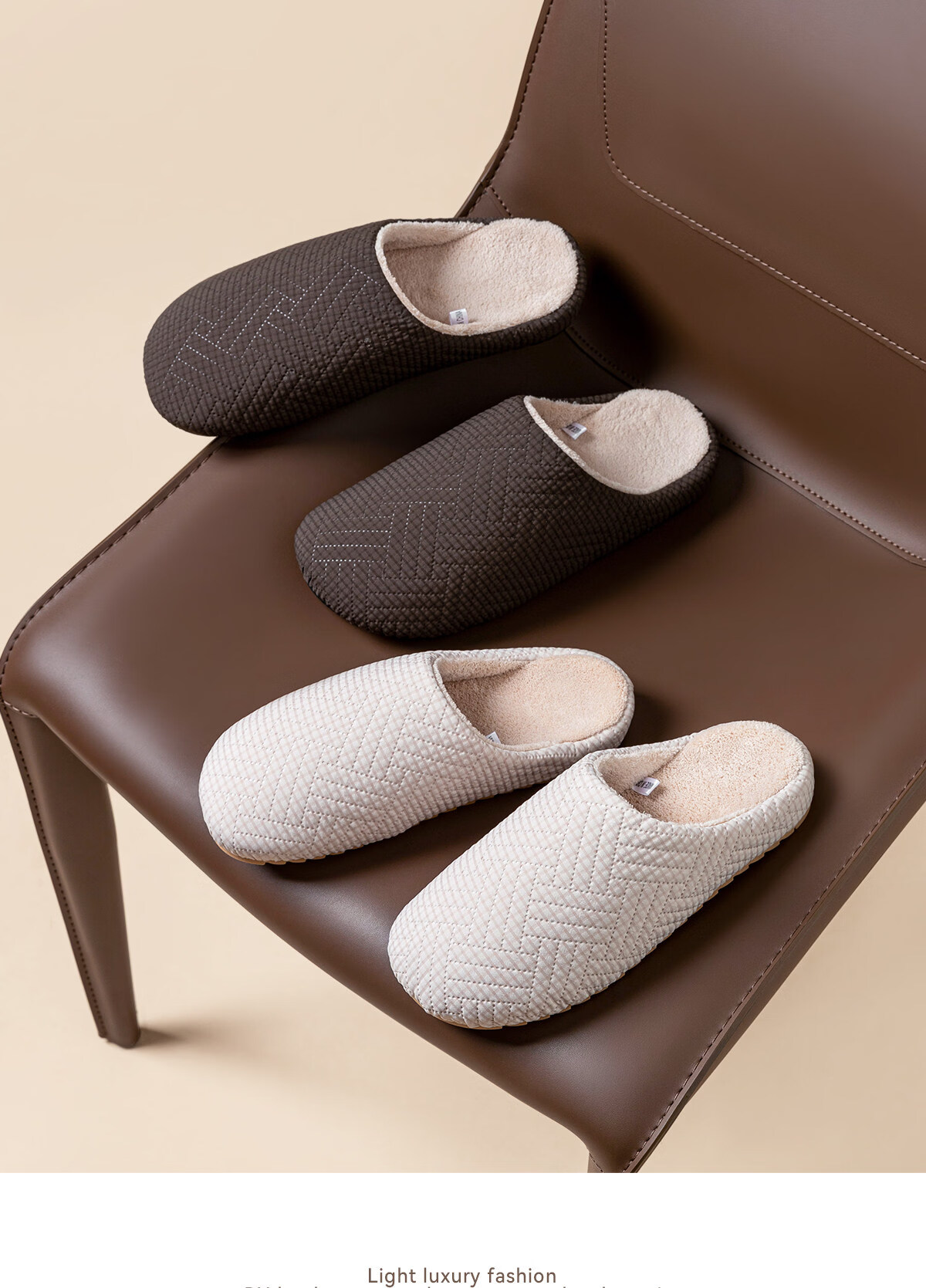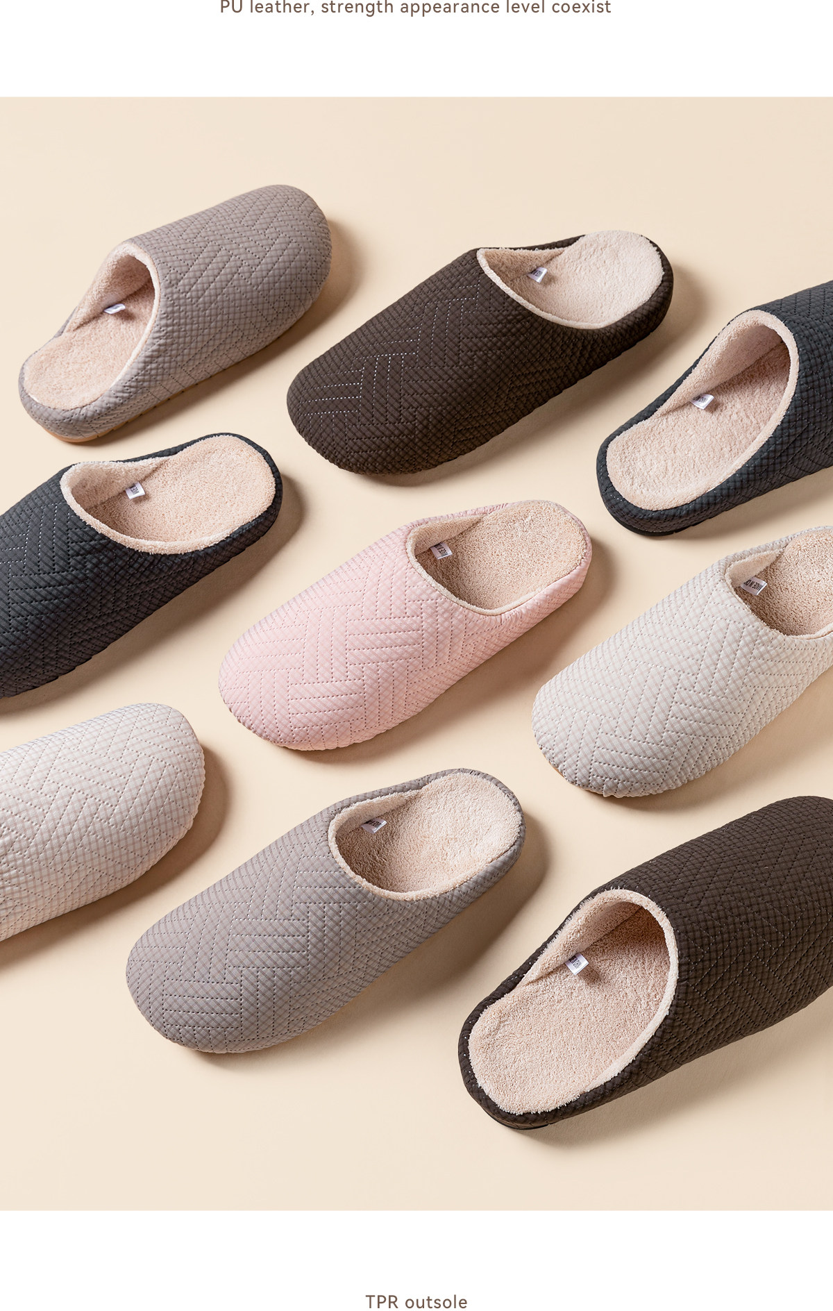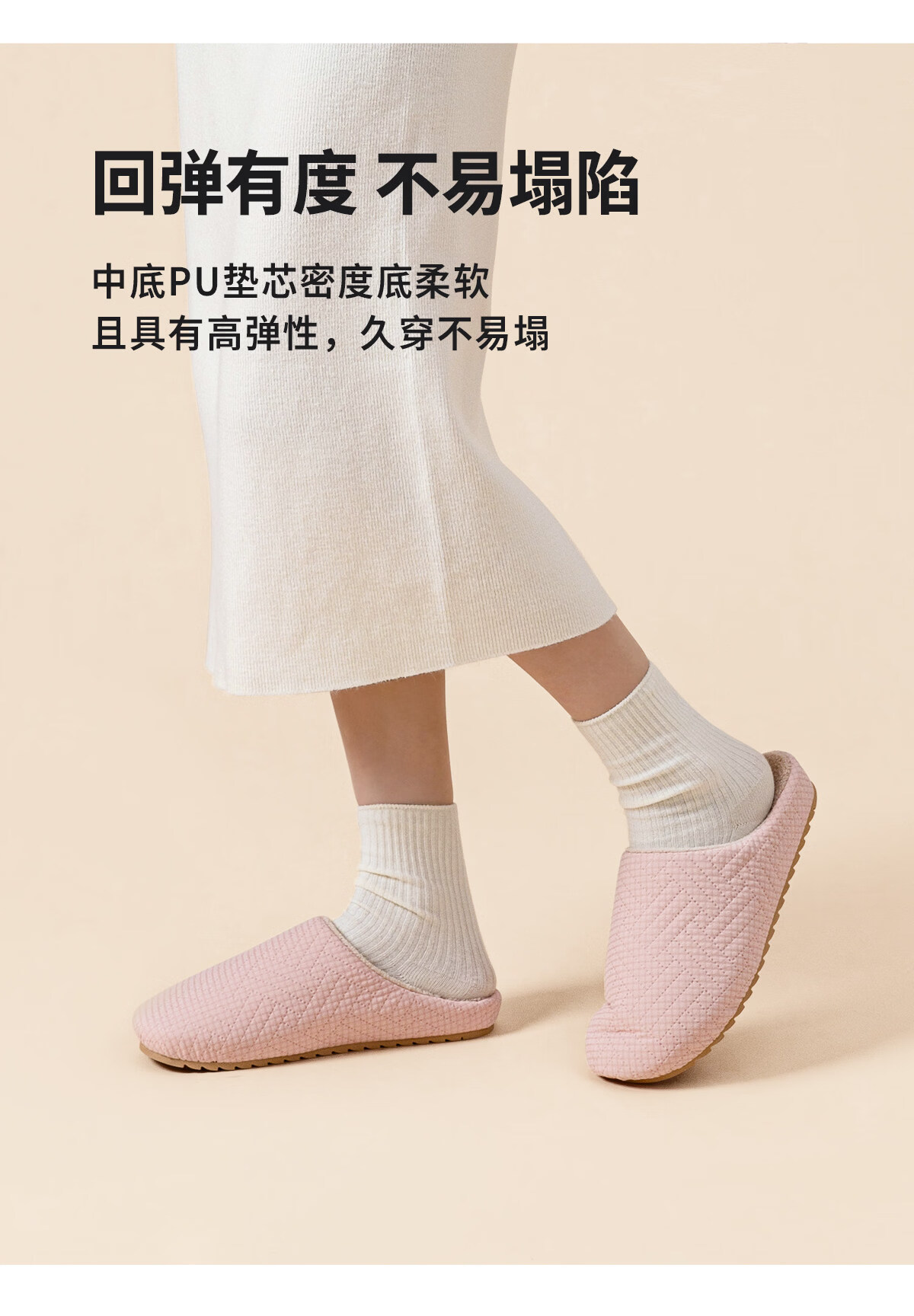 Merdor thick-soled cotton slippers for women winter indoor home household couple soft-soled non-slip warm waterproof slippers for women autumn and winter beige 35-36
