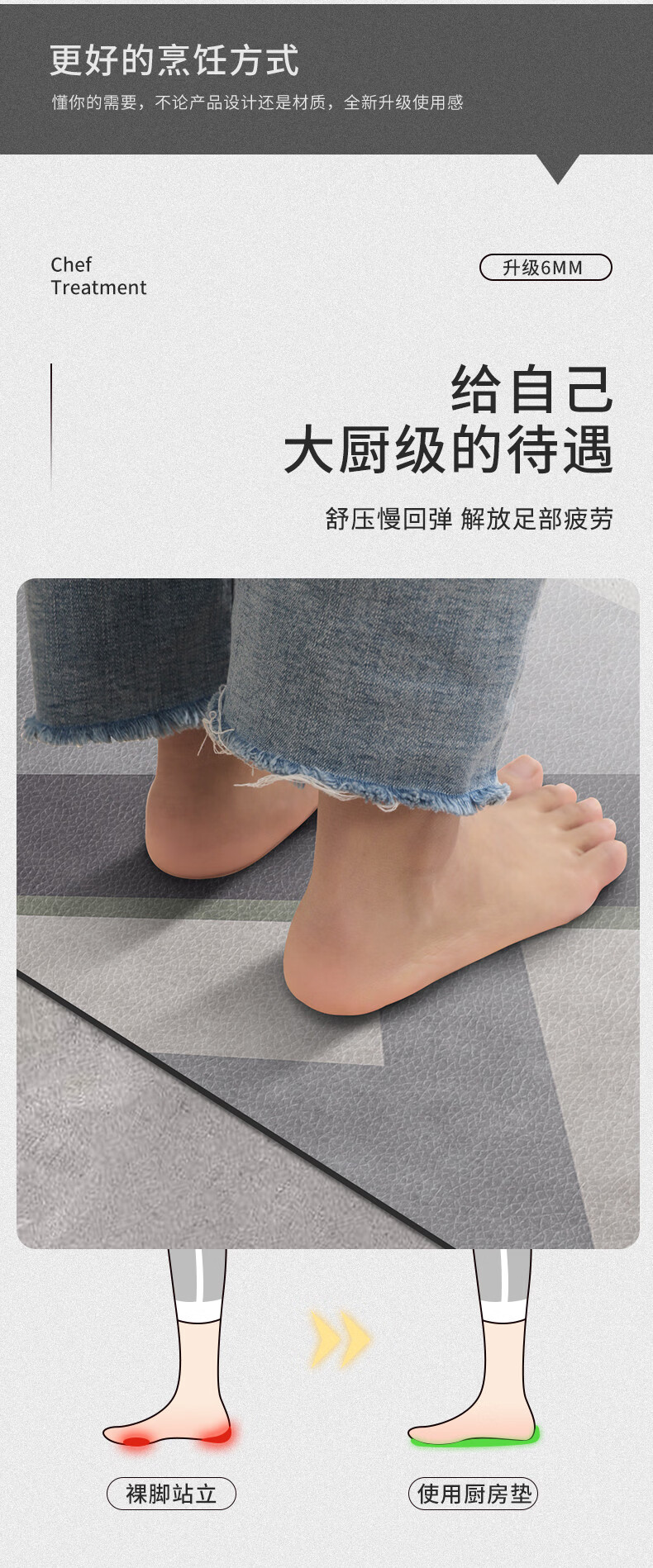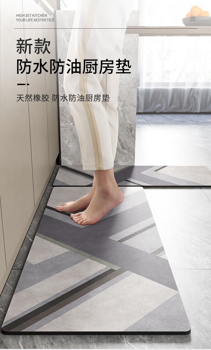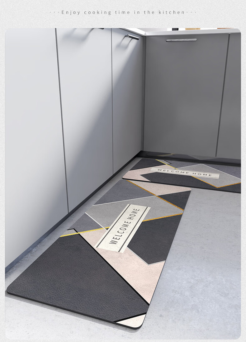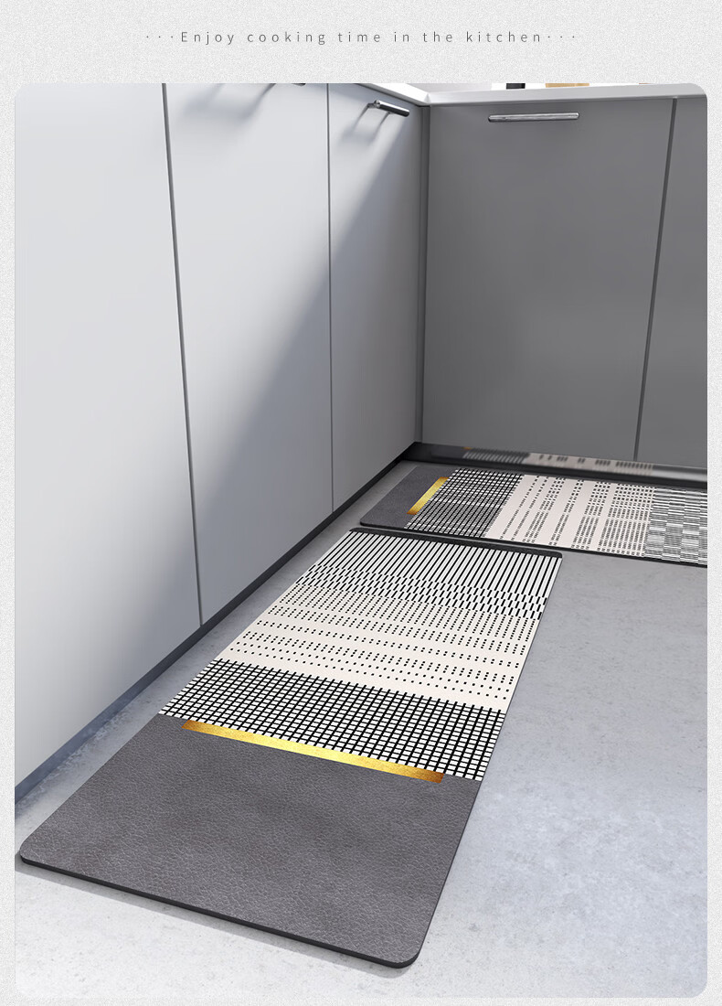 Fantasy kitchen floor mats, wipeable, washable, stain-resistant floor mats, waterproof, oil-repellent, non-slip carpet strip mats, door mats, Junhui 60x180cm, single pack