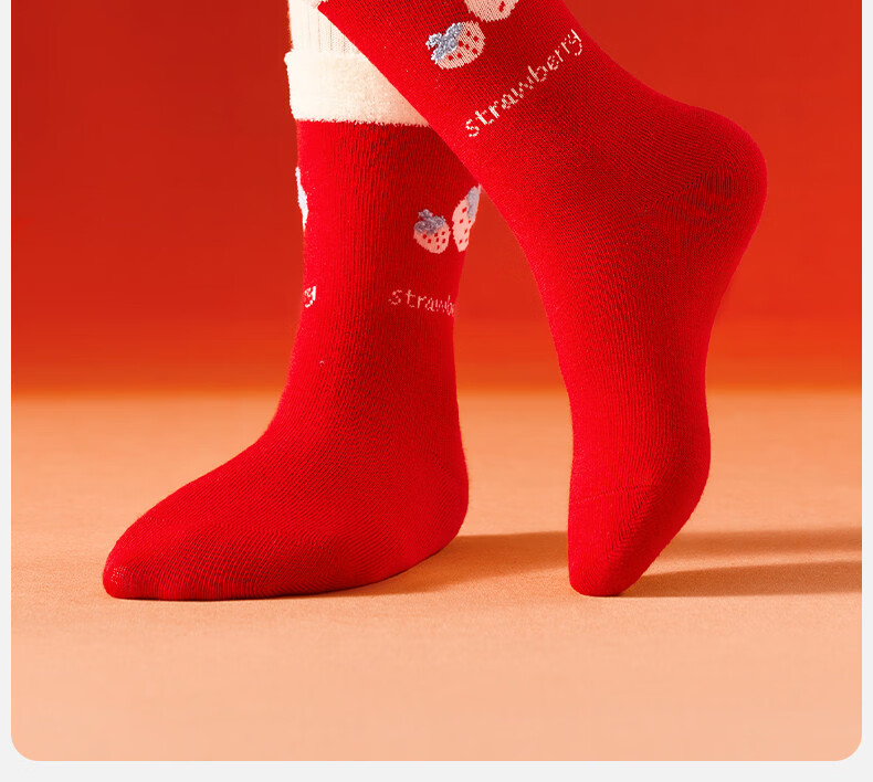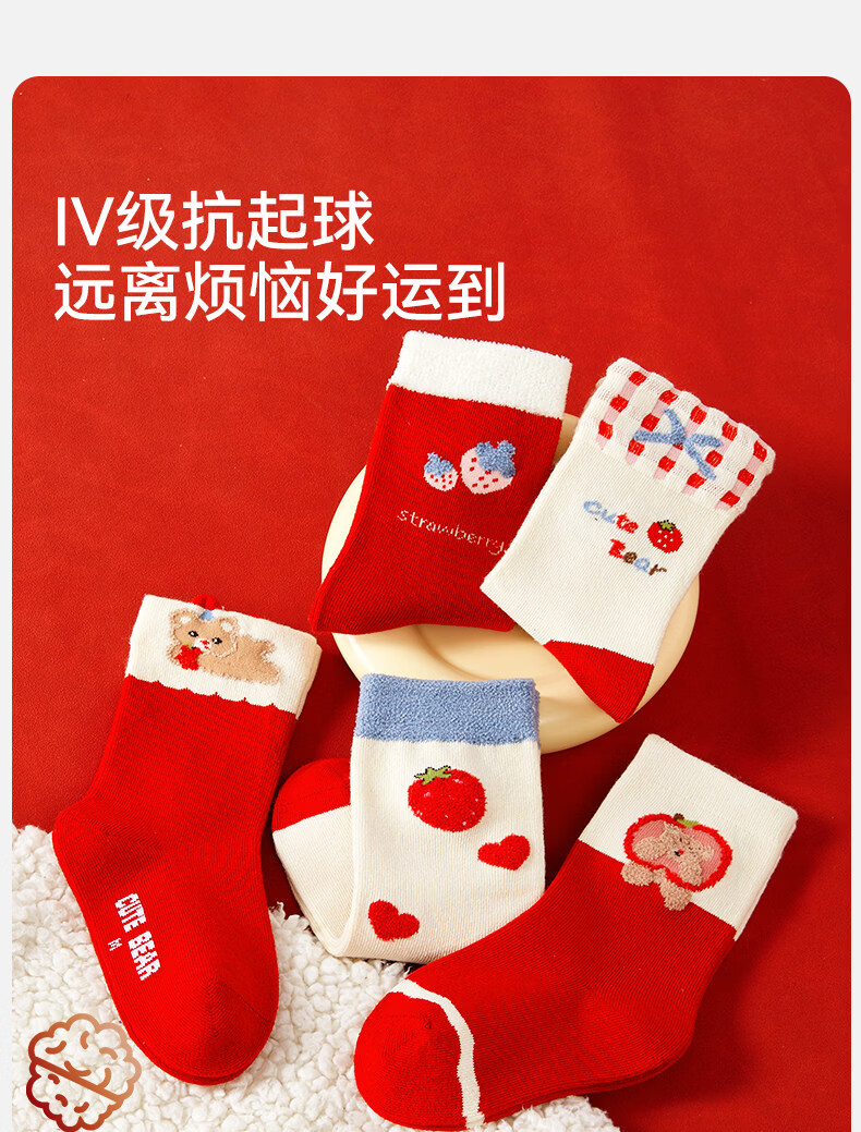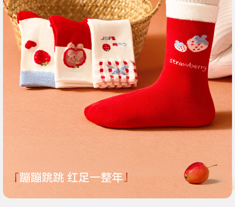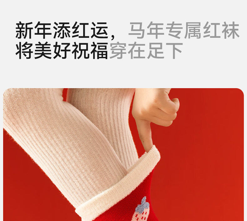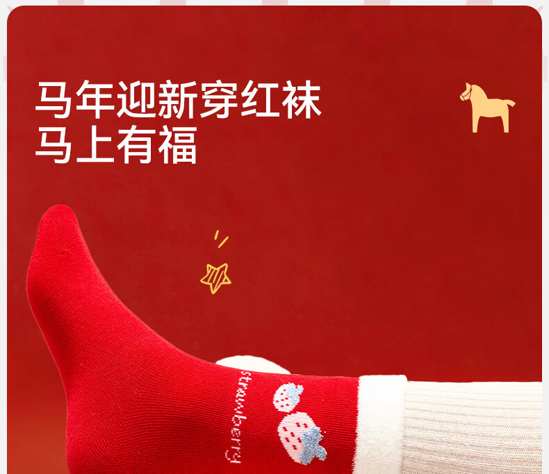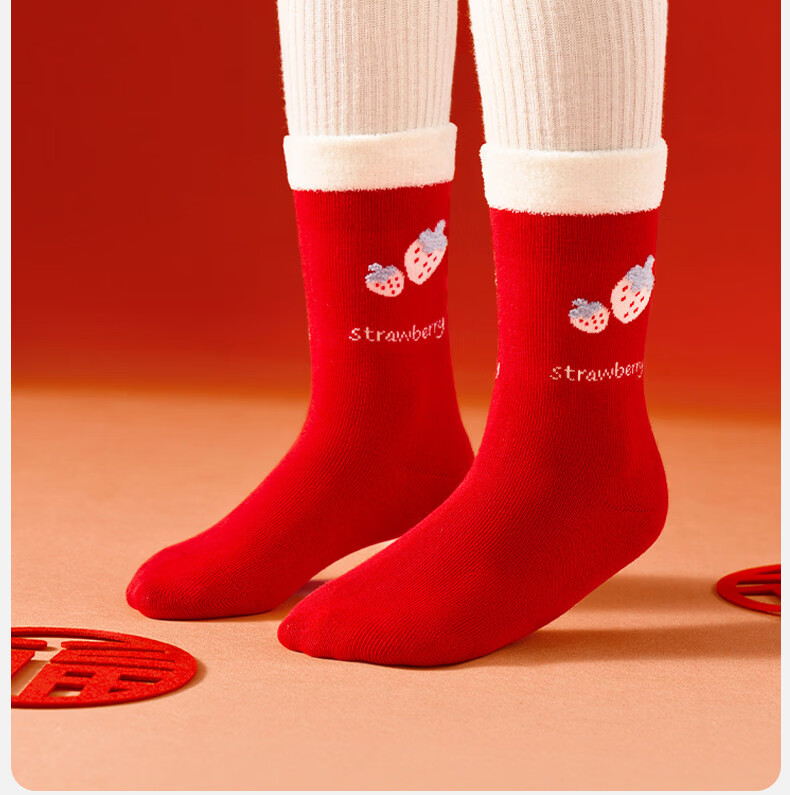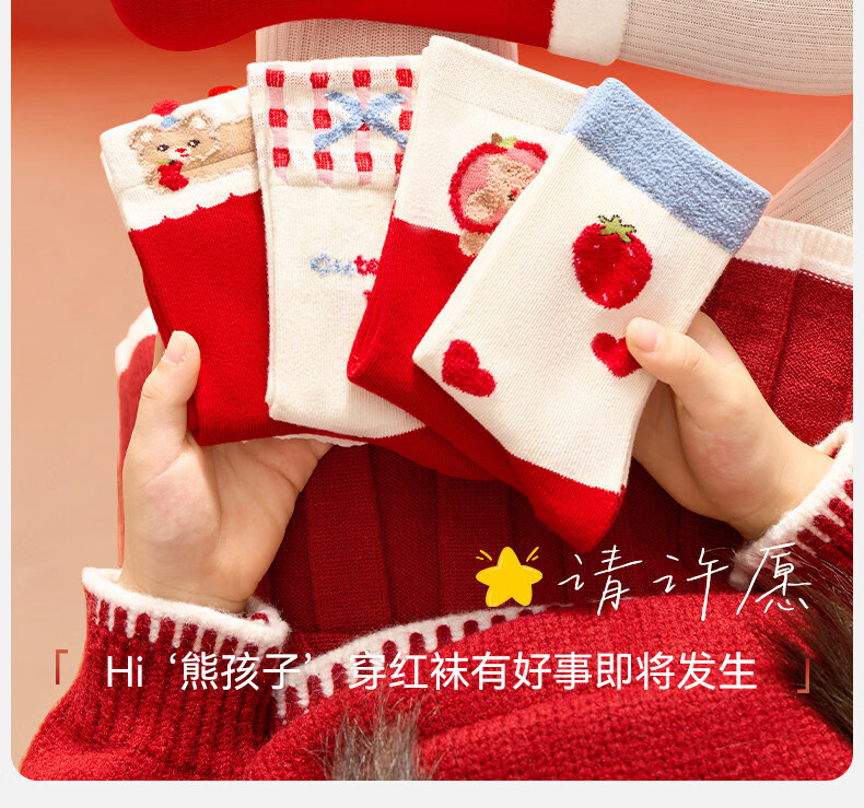 Mianqi Bear Children's Red Socks Girls' Zodiac Year Red High Cotton Socks Girls' 2026 Year of the Horse Winter New Year Big Red Socks