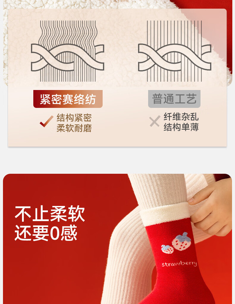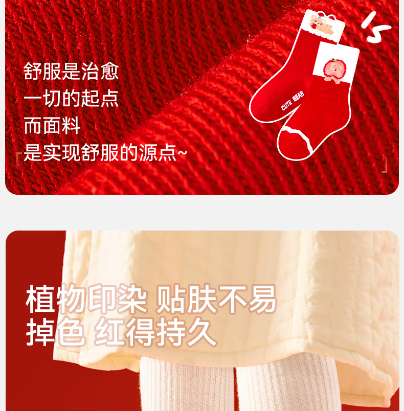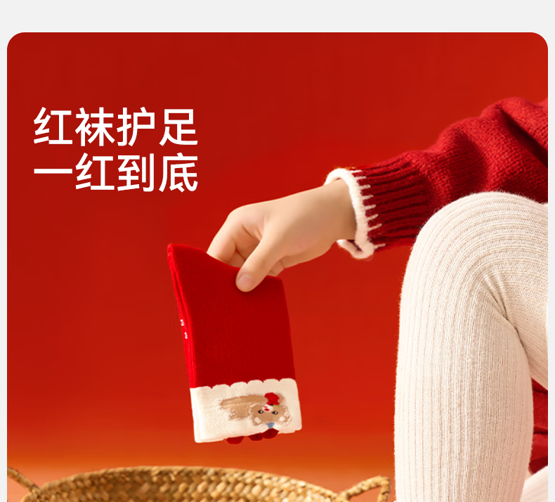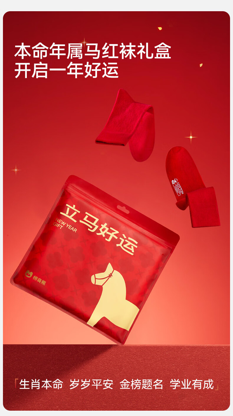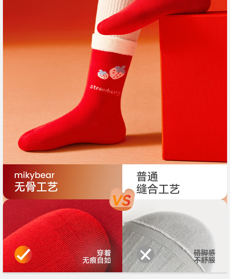 Mianqi Bear Children's Red Socks Girls' Zodiac Year Red High Cotton Socks Girls' 2026 Year of the Horse Winter New Year Big Red Socks