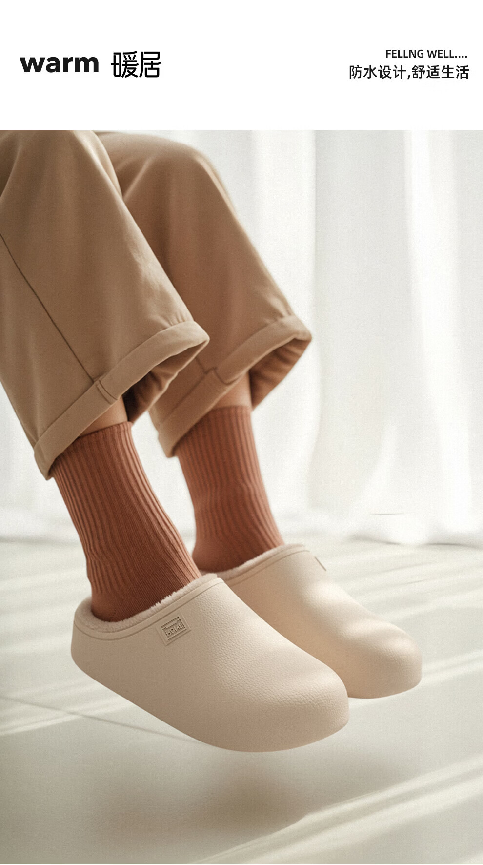 Red bean simple cotton slippers for women 2026 new letter plush warm home can be worn outside the home couple cotton slippers men's black 35-36 regular size