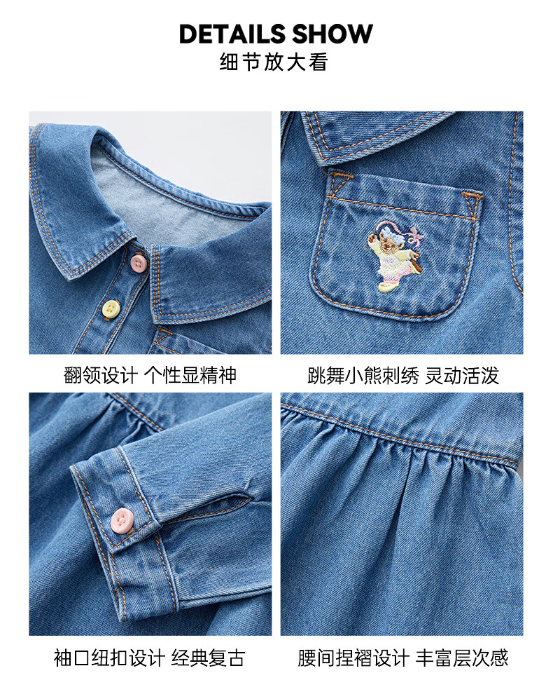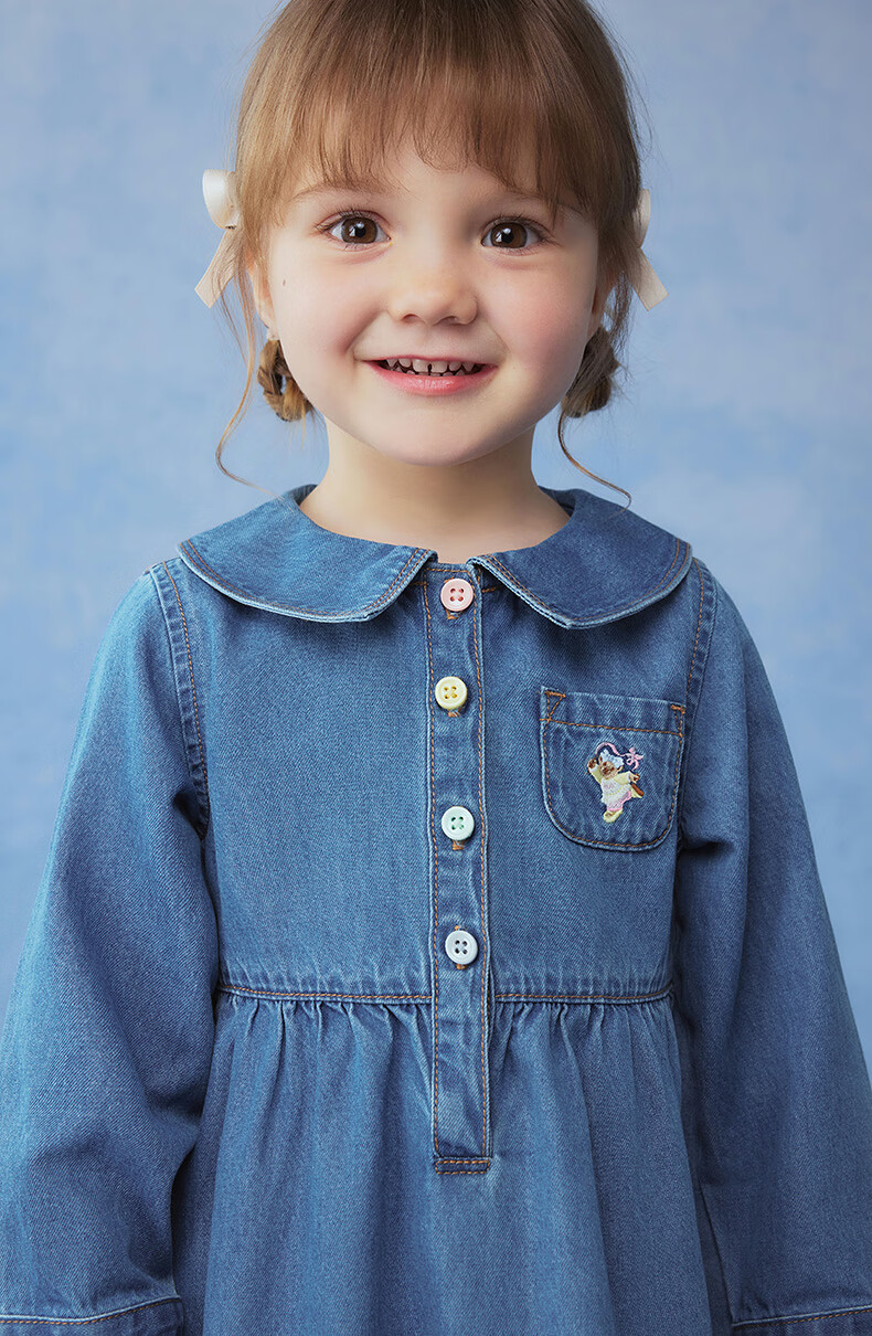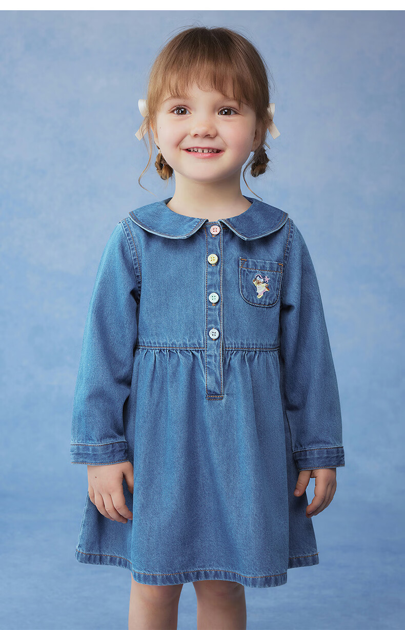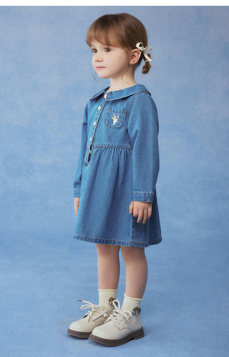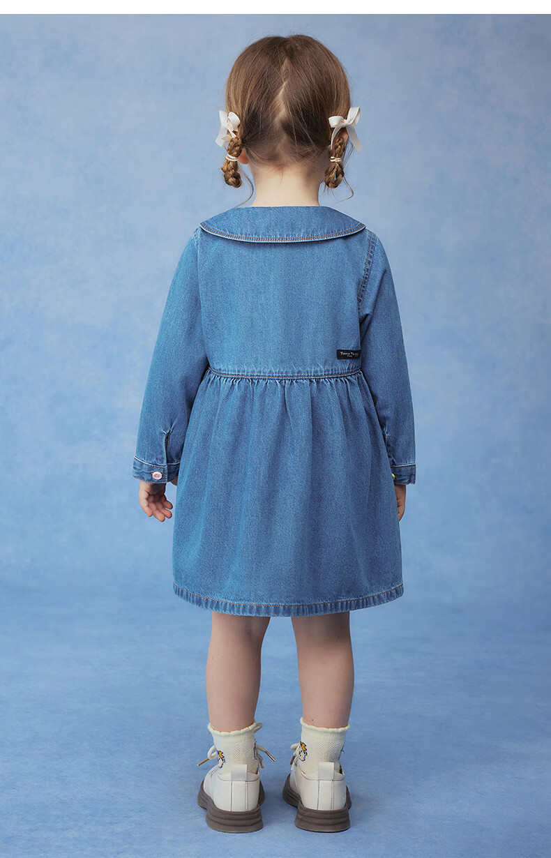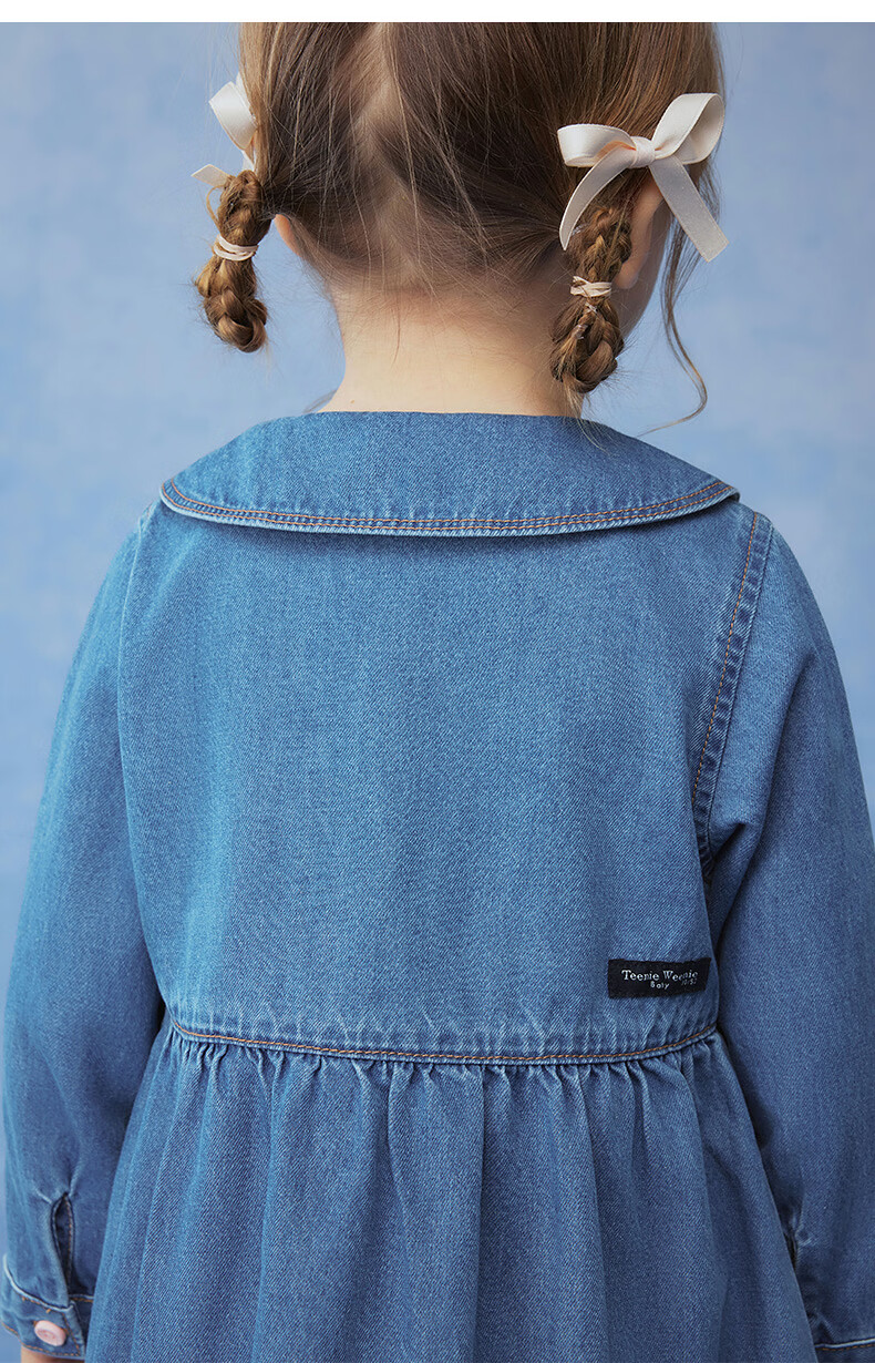 Teenie Weenie Kids 26 years new baby girl cotton long-sleeved lapel denim dress blue 110 cm