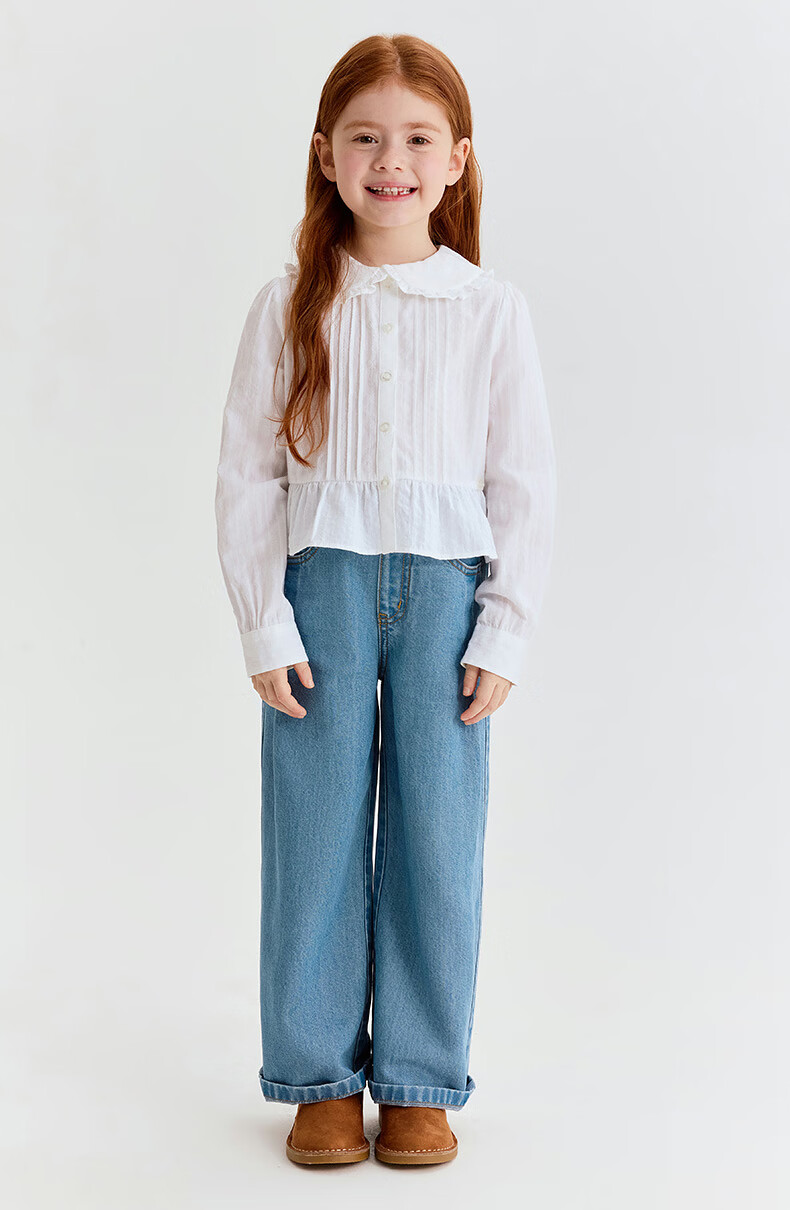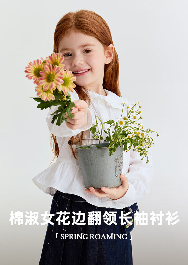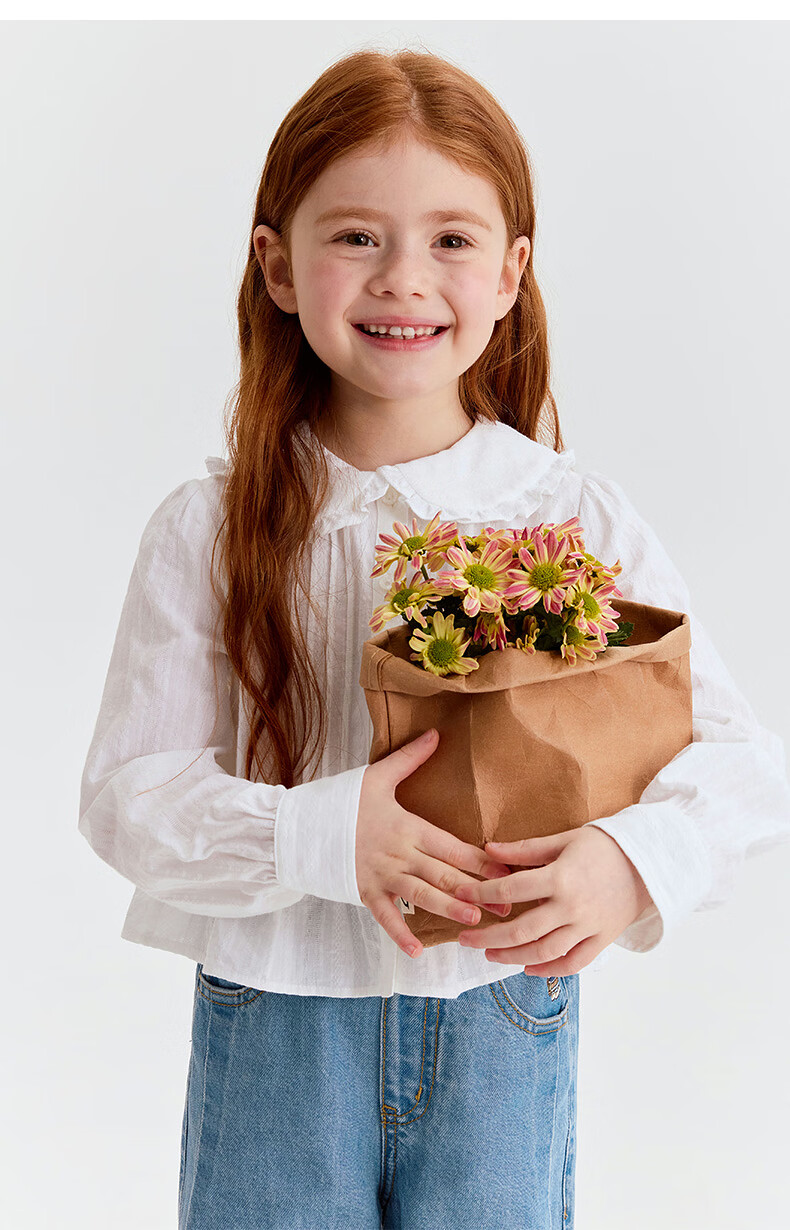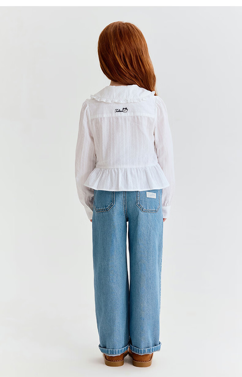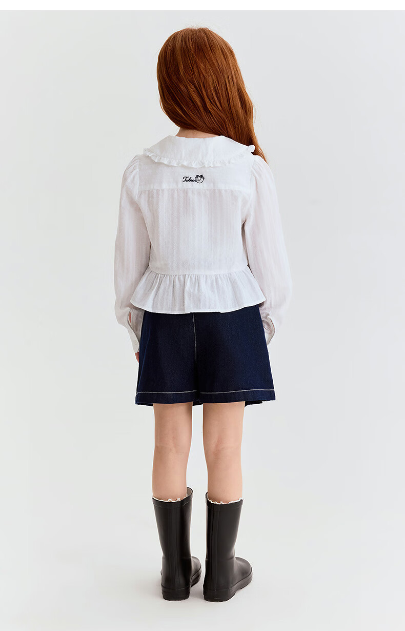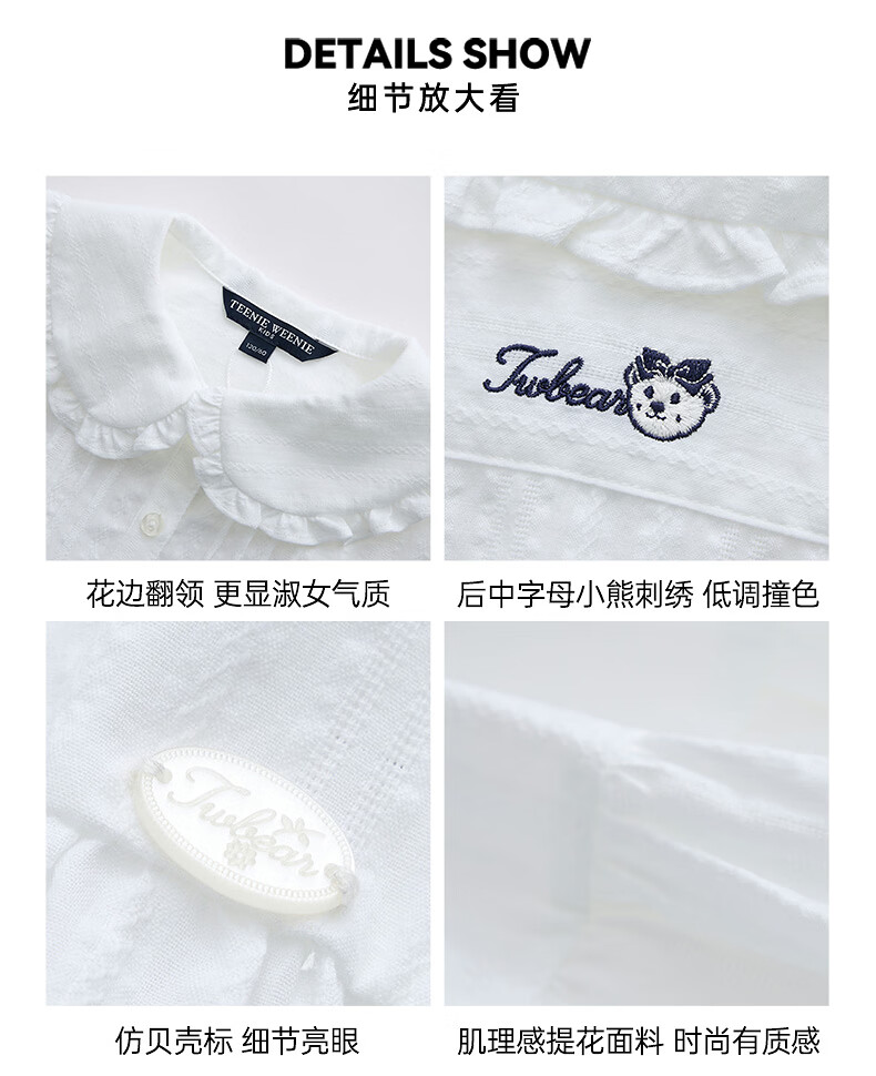 Teenie Weenie Kids 26 years new style girls cotton lady lace lapel long-sleeved shirt off-white 150 cm