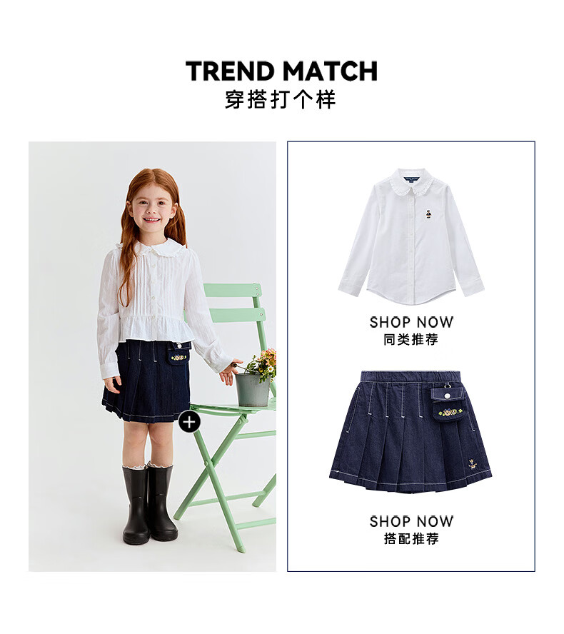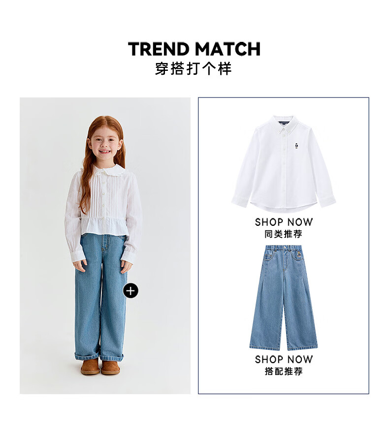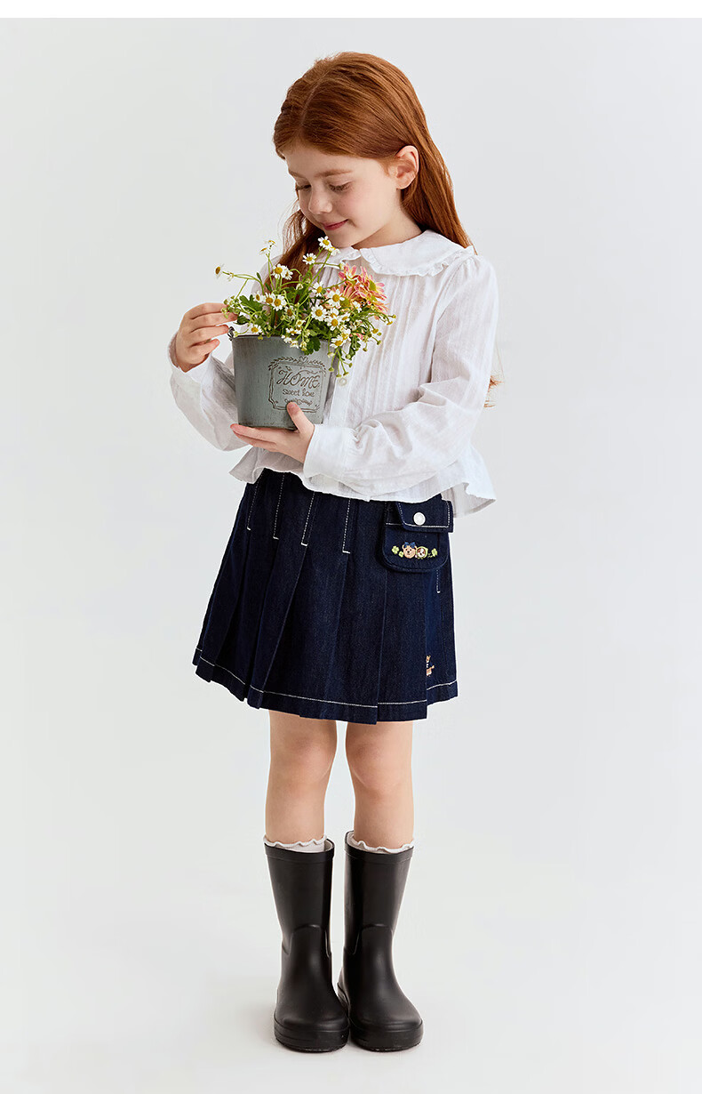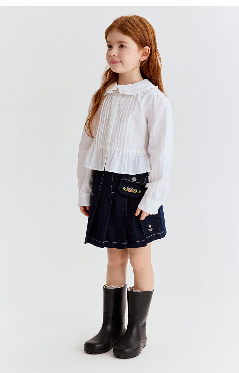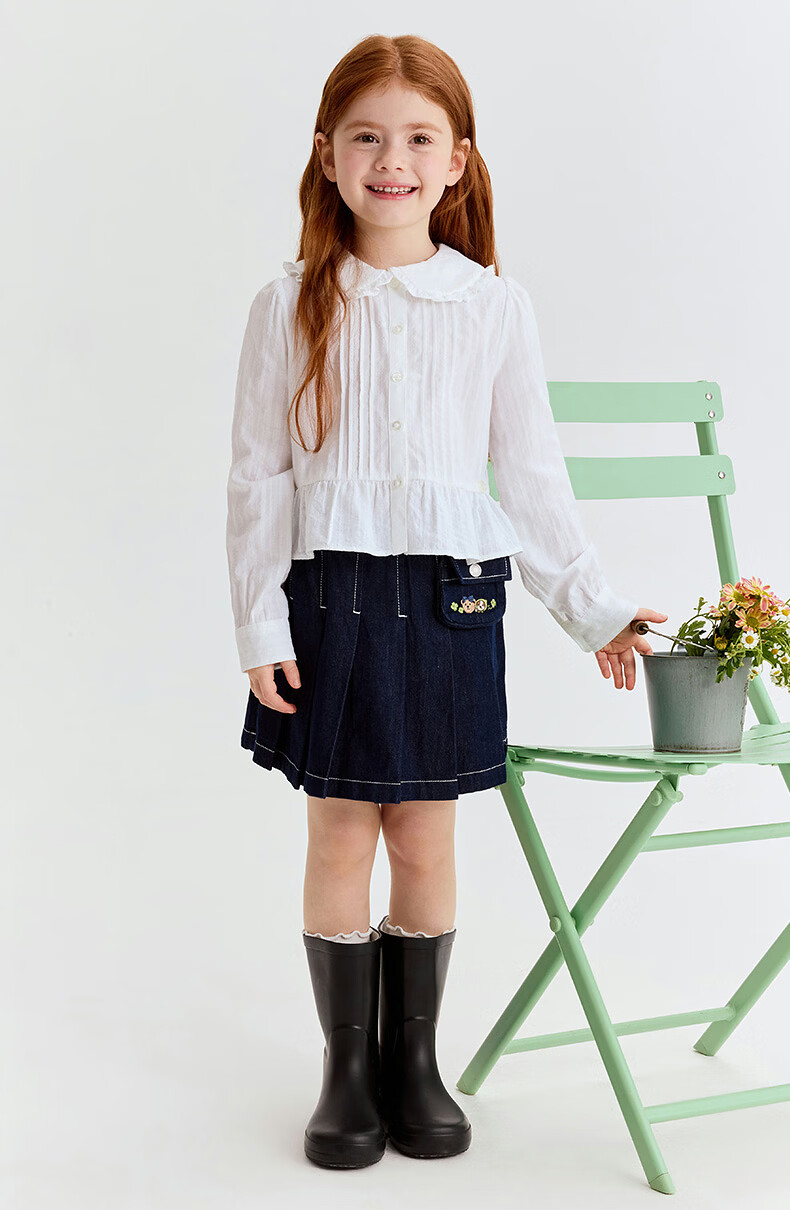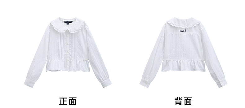 Teenie Weenie Kids 26 years new style girls cotton lady lace lapel long-sleeved shirt off-white 150 cm