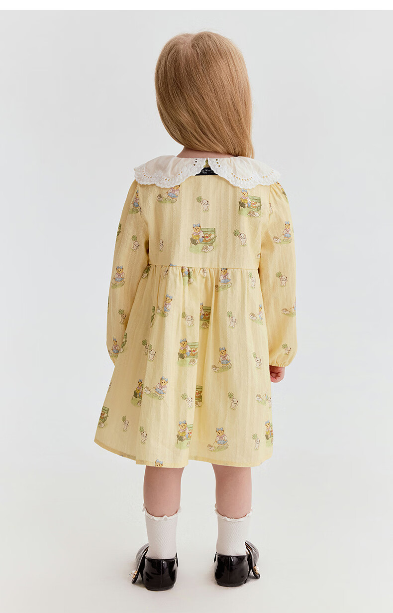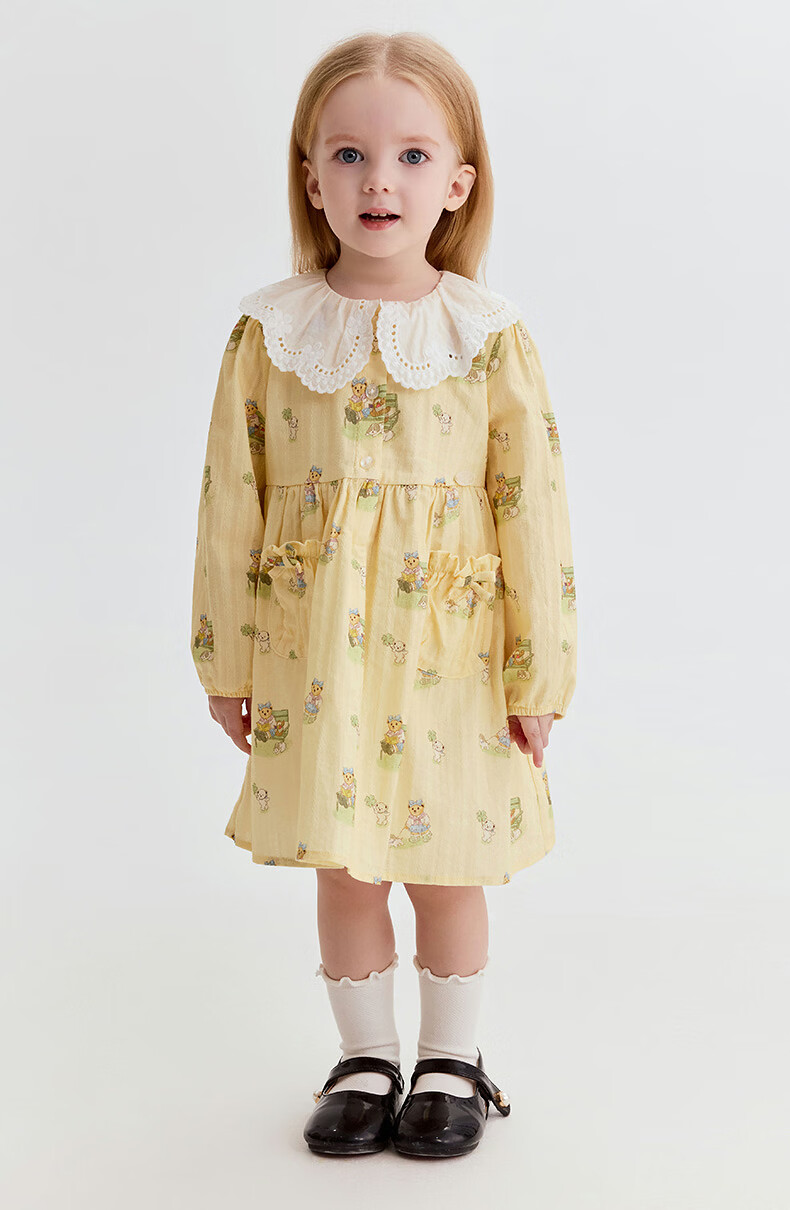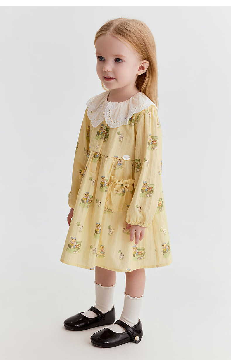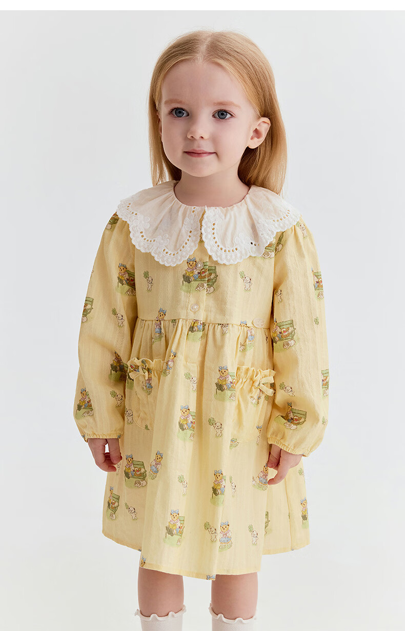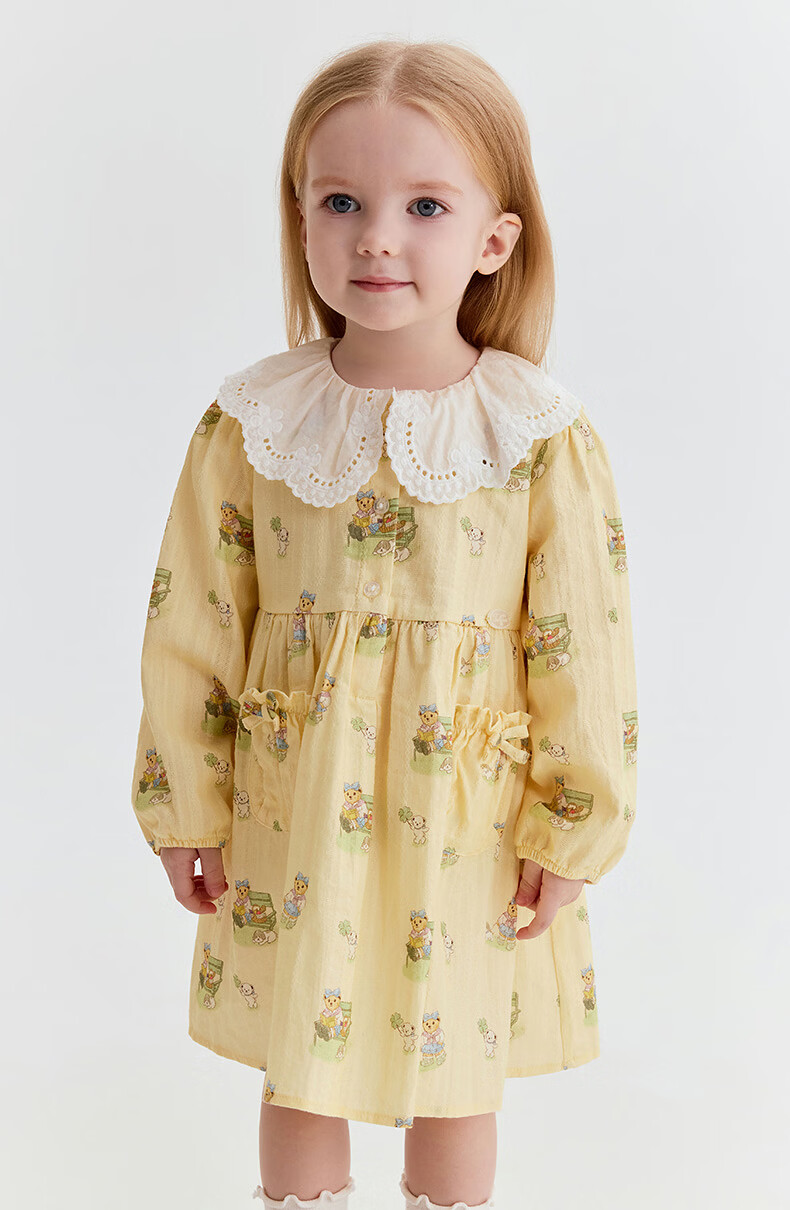 Teenie Weenie Kids 26th new baby girl full-print sweet lace collar dress yellow 110 cm