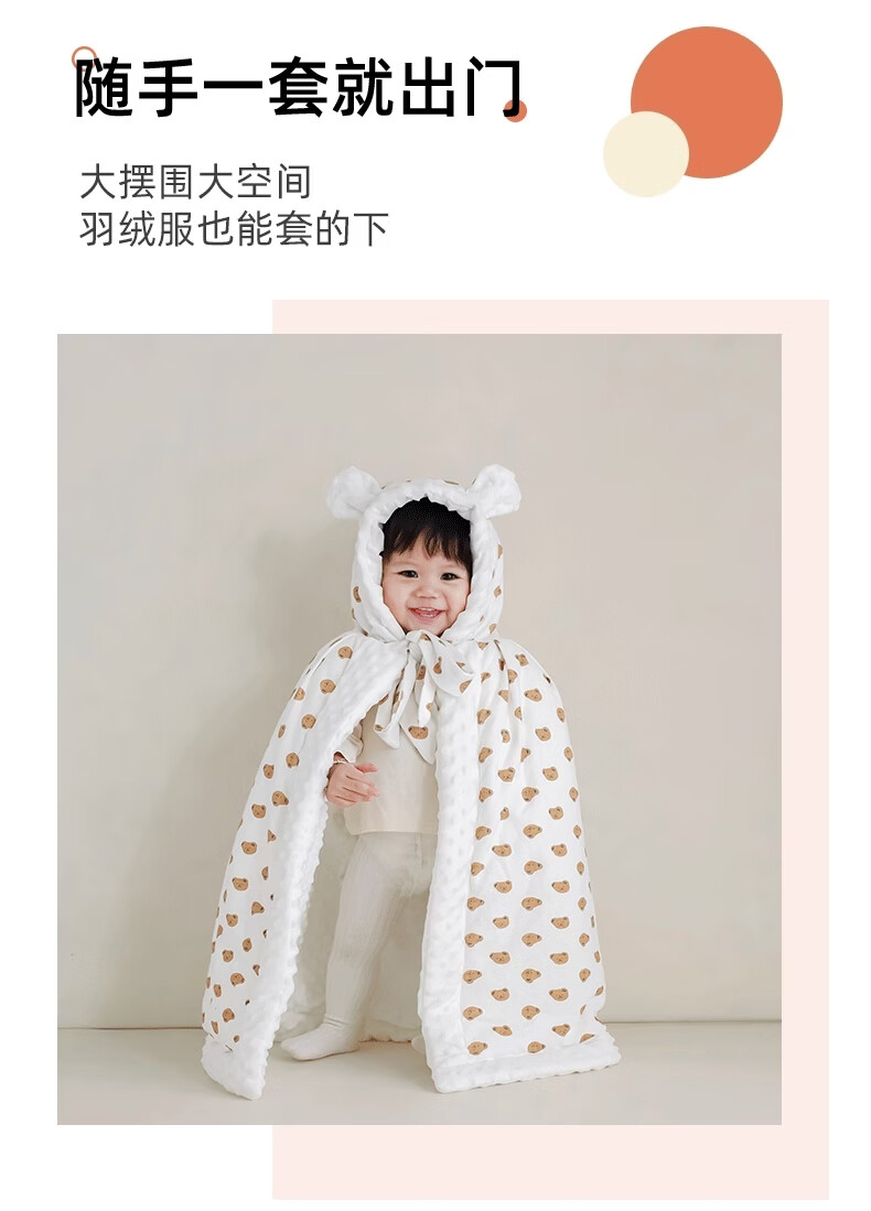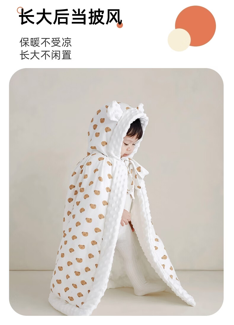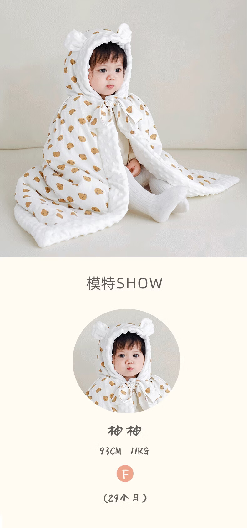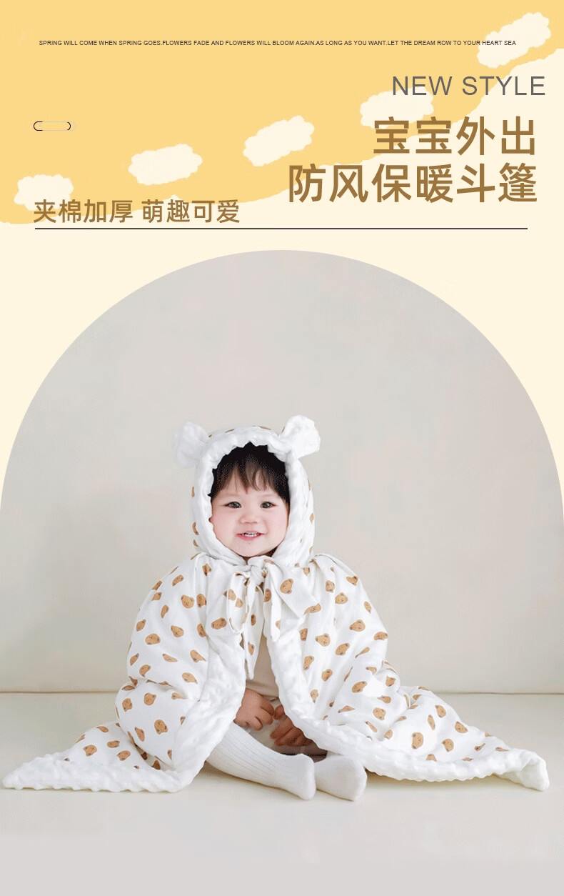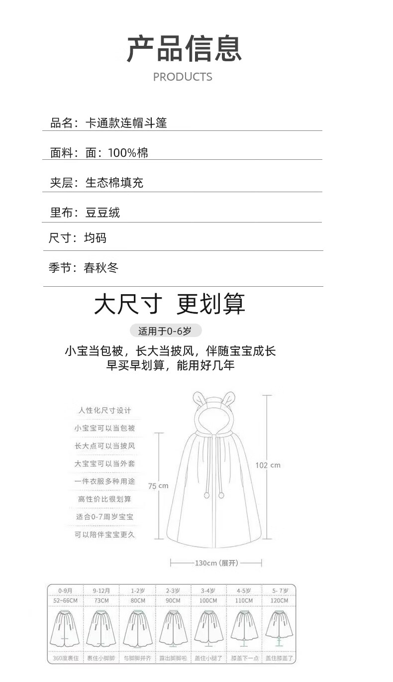 Baby cloak cloak autumn and winter outdoor windproof jacket for men and women baby thickened windshield quilt children's shawl winter Feilong Chengyun thickened quilted cloak (06 years old) length 95cm 42 F without zipper