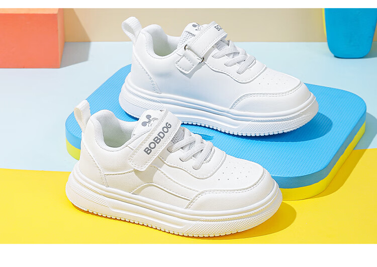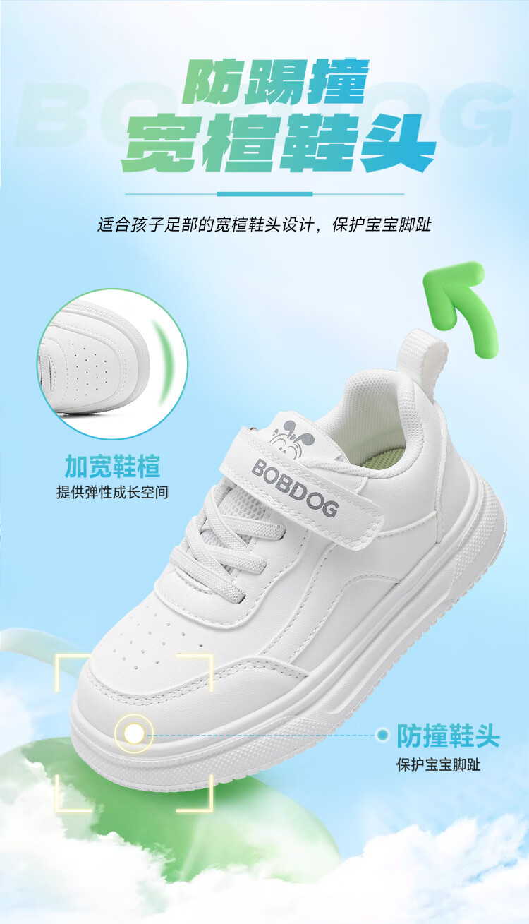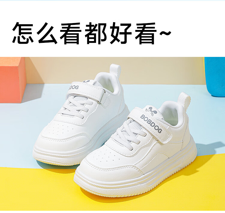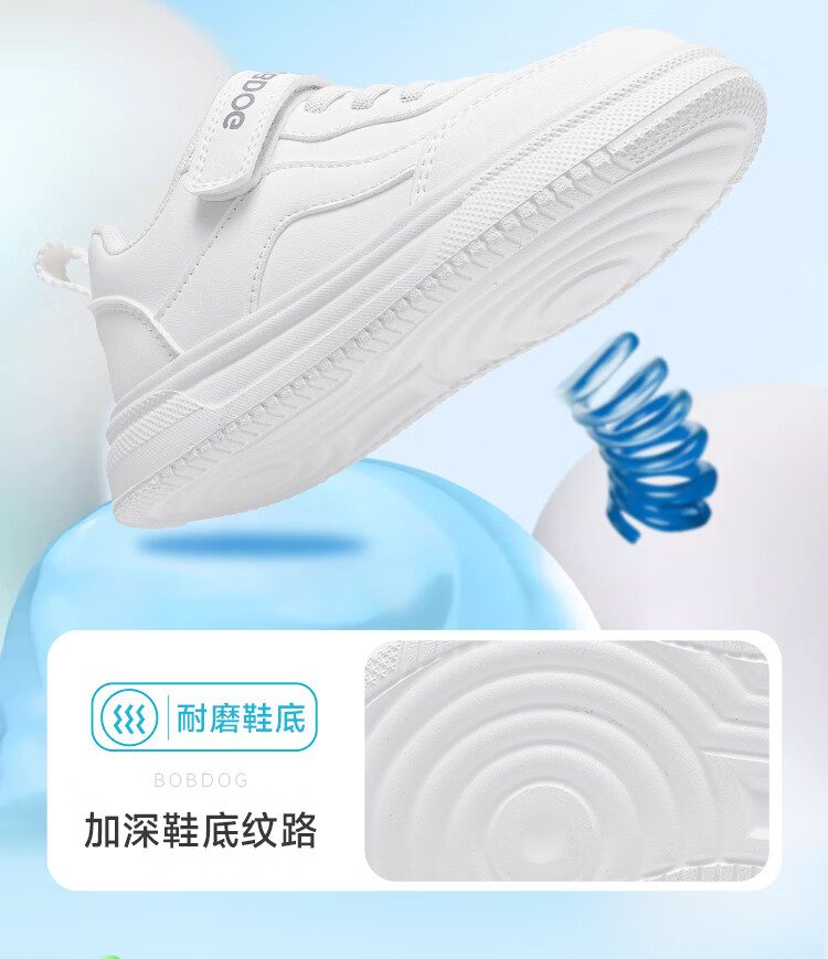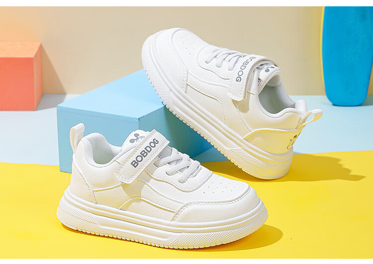 BOBDOG children's shoes 2026 boys' low-top casual shoes spring children's sneakers women's running shoes big children's versatile white shoes white 26 suitable for feet 15.5cm long