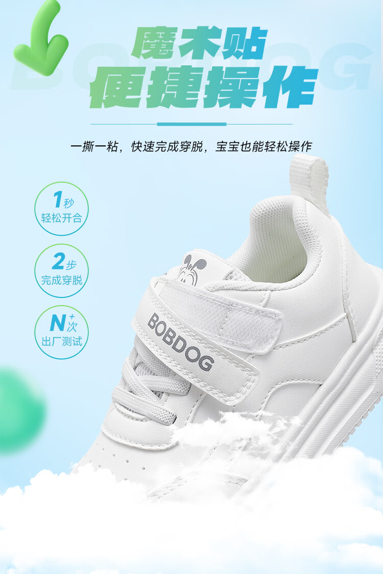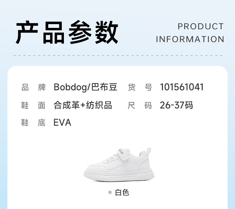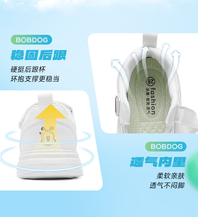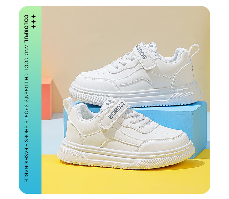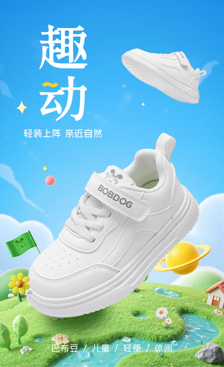 BOBDOG children's shoes 2026 boys' low-top casual shoes spring children's sneakers women's running shoes big children's versatile white shoes white 26 suitable for feet 15.5cm long