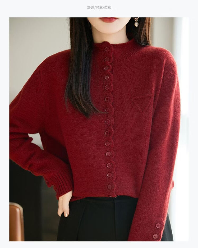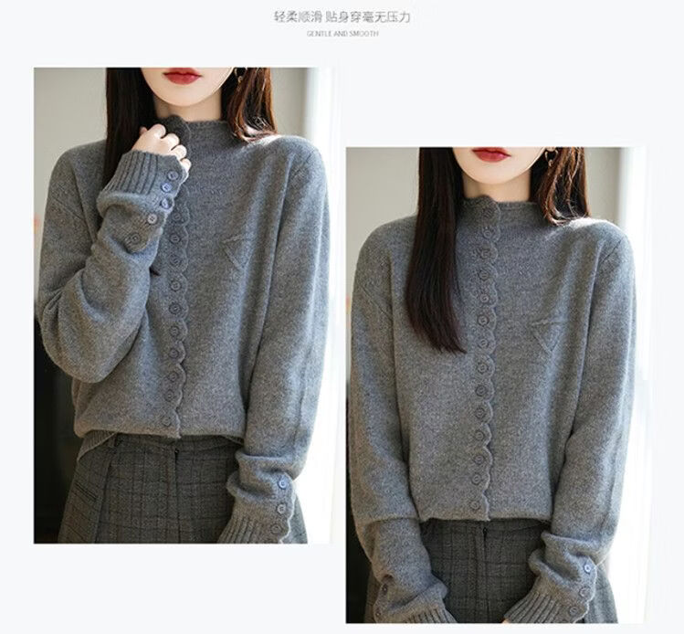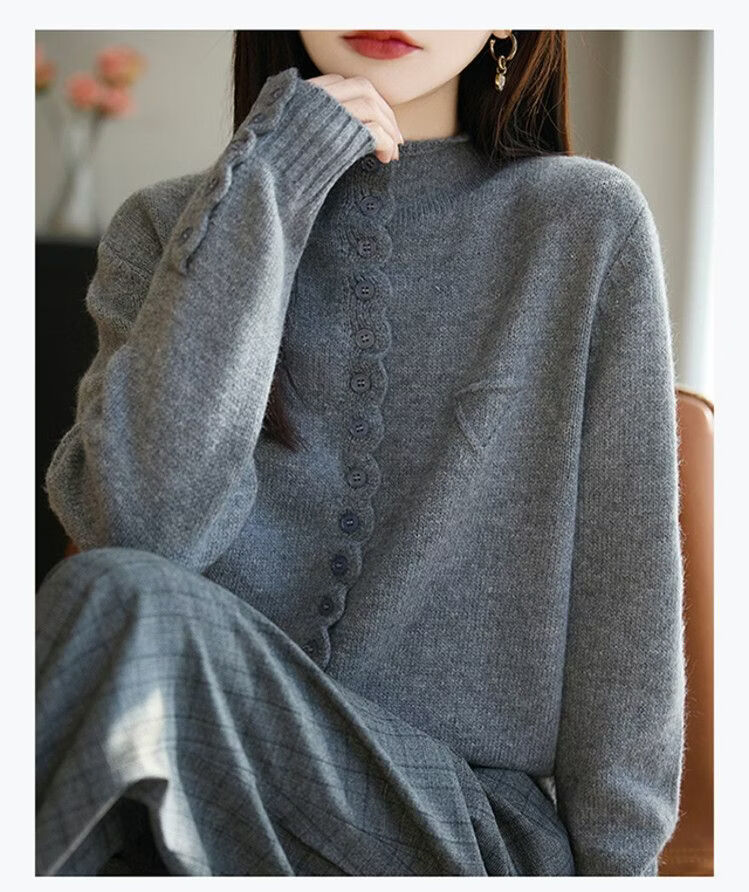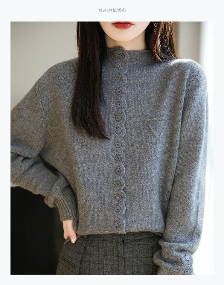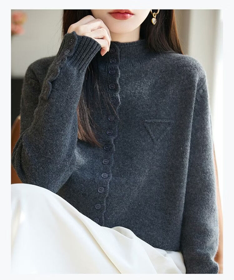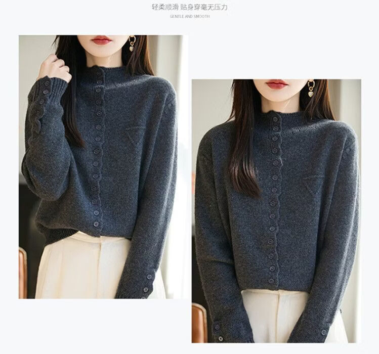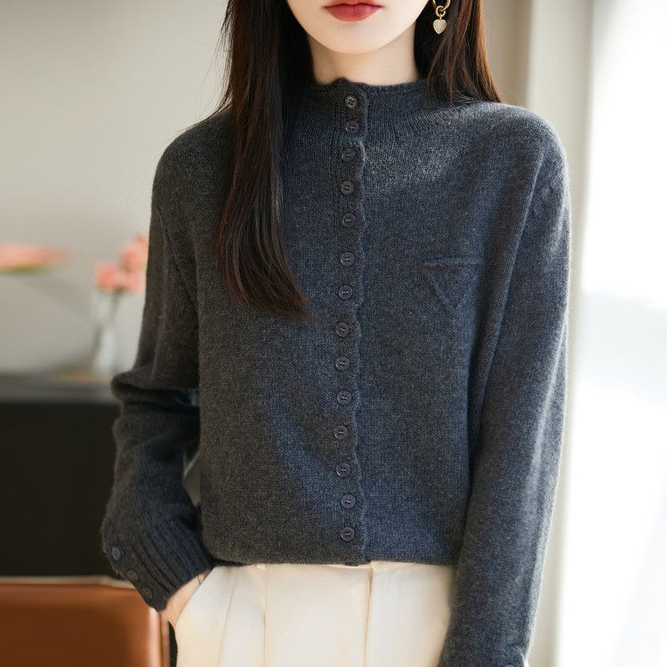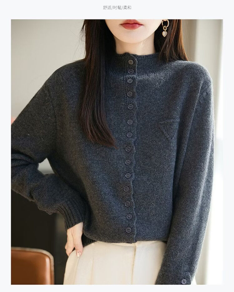 ROMON wool sweater autumn and winter 26 new solid color knitted cardigan jacket short women's sweater fashionable versatile top for women dark gray 3XL recommended 145-155Jin Jin equals 0.5 kg