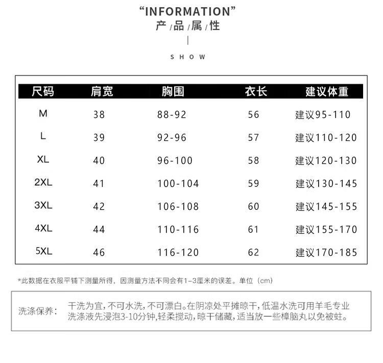 China (cm) 165 / 88-90 170 / 96-98 175 / 108-110 180 / 118-122 185 / 126-130