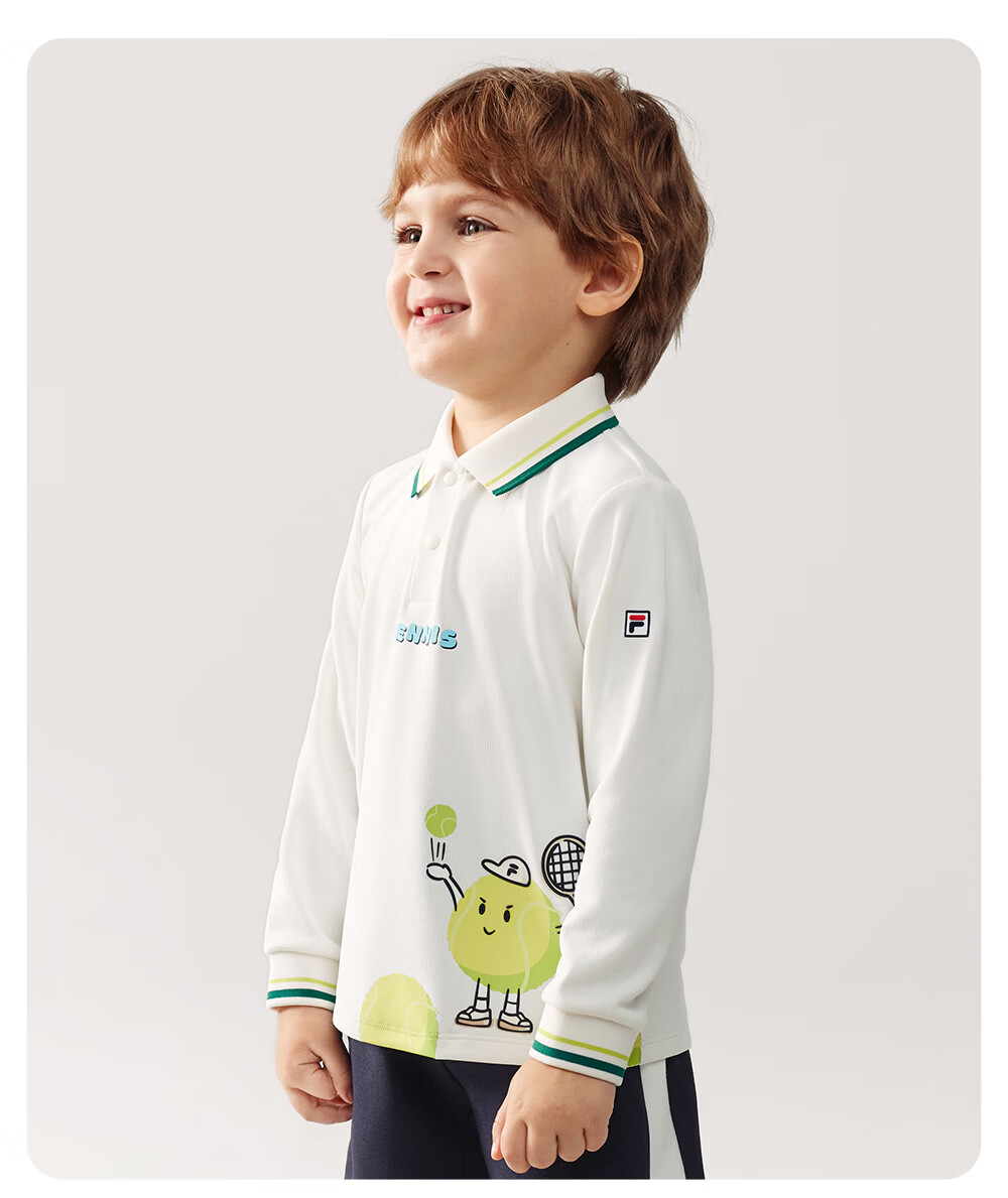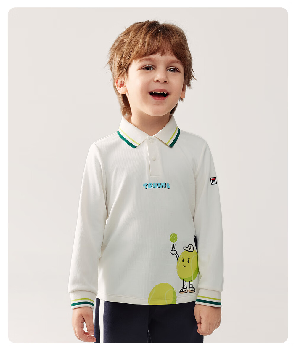 FILA children's clothing long-sleeved 2026 spring new boys' POLO shirt cloud white-WT 105