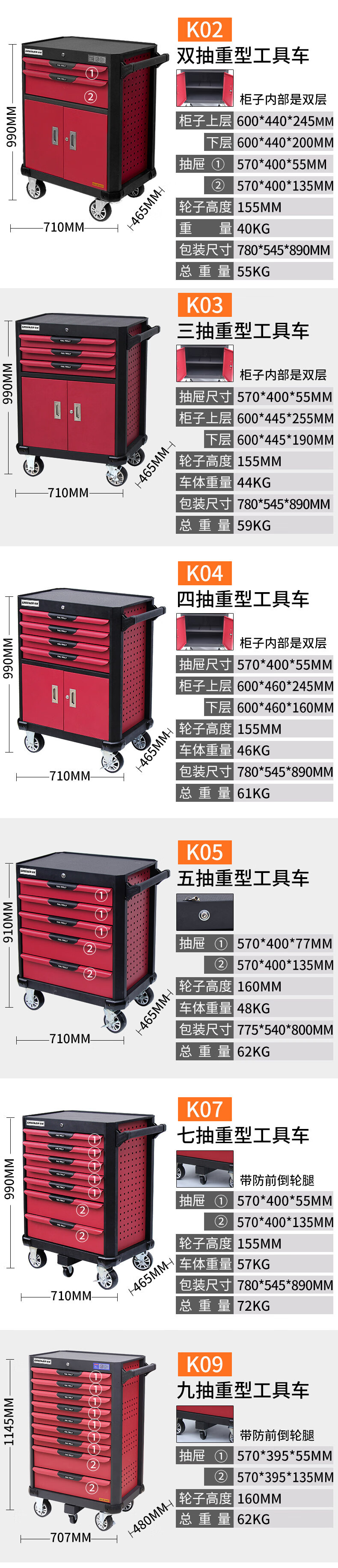 Sailoto Tool Cart Trolley Multifunctional Tool Cabinet Car Repair Mobile Workshop Iron Sheet Drawer Tool Box Five Drawers Heavy Tool Trolley K05 Delivery