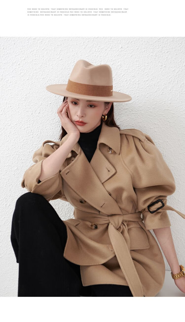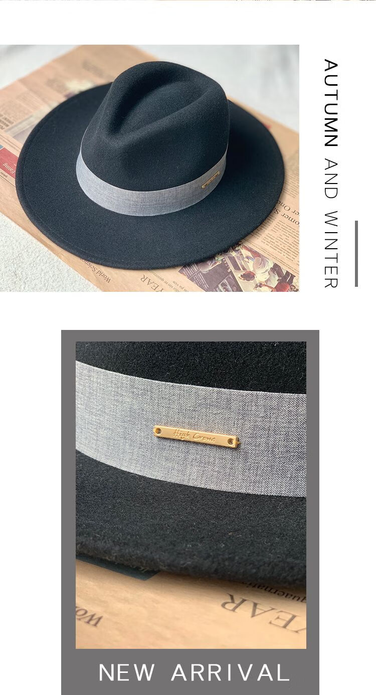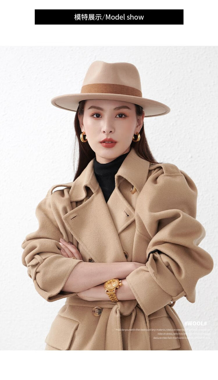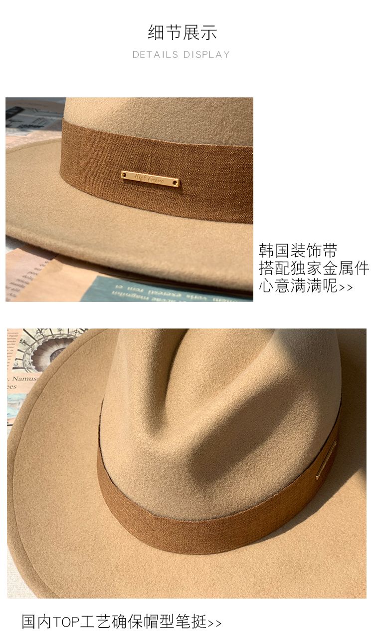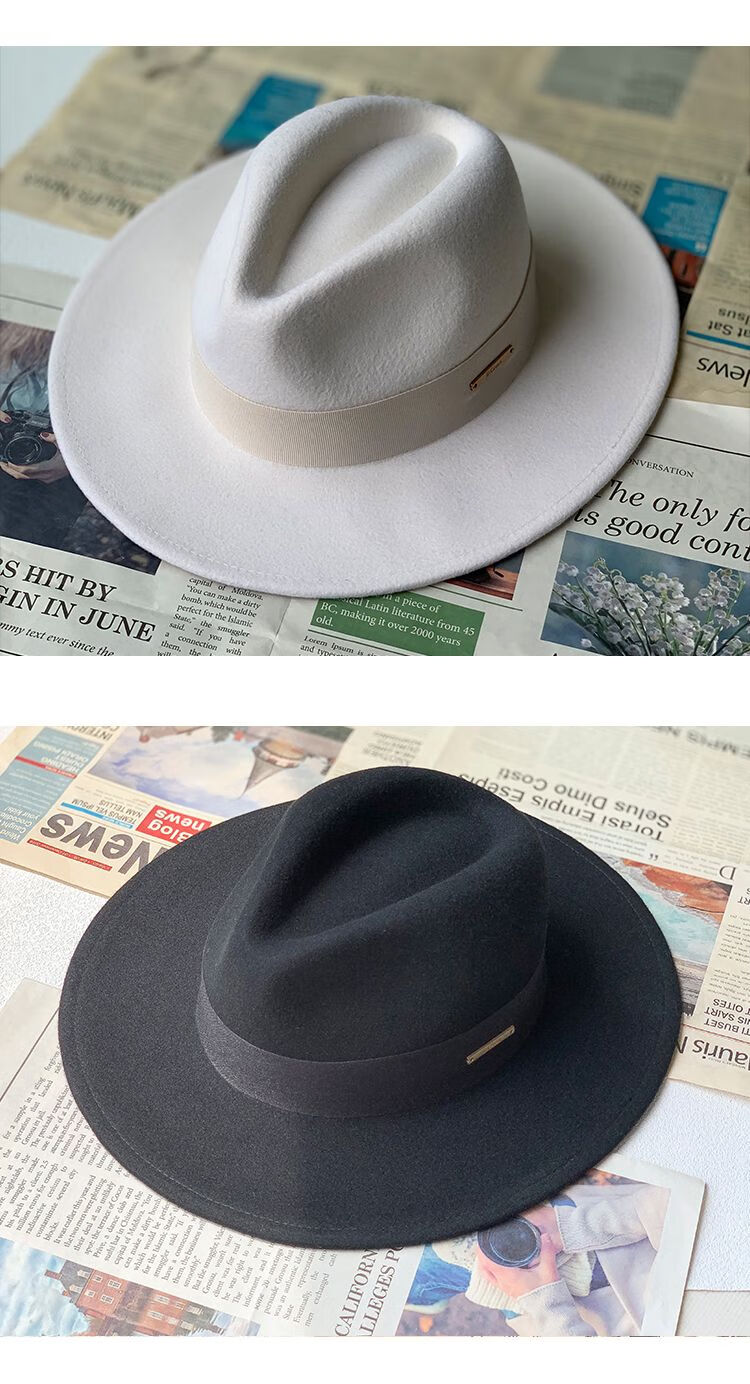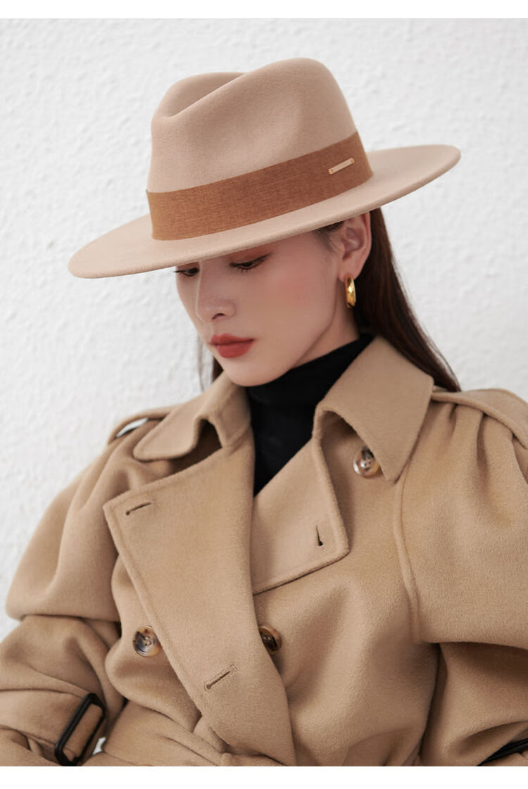 ALBINELE French new autumn and winter flat-brimmed woolen hat for men and women, fashionable wide brim black versatile European and American large head circumference camel camel (classic hot sale) M size 54-57cm head circumference (regular) adjustable