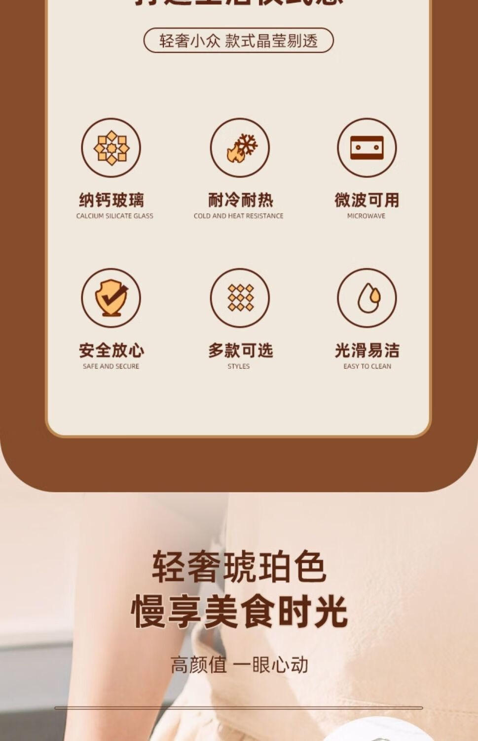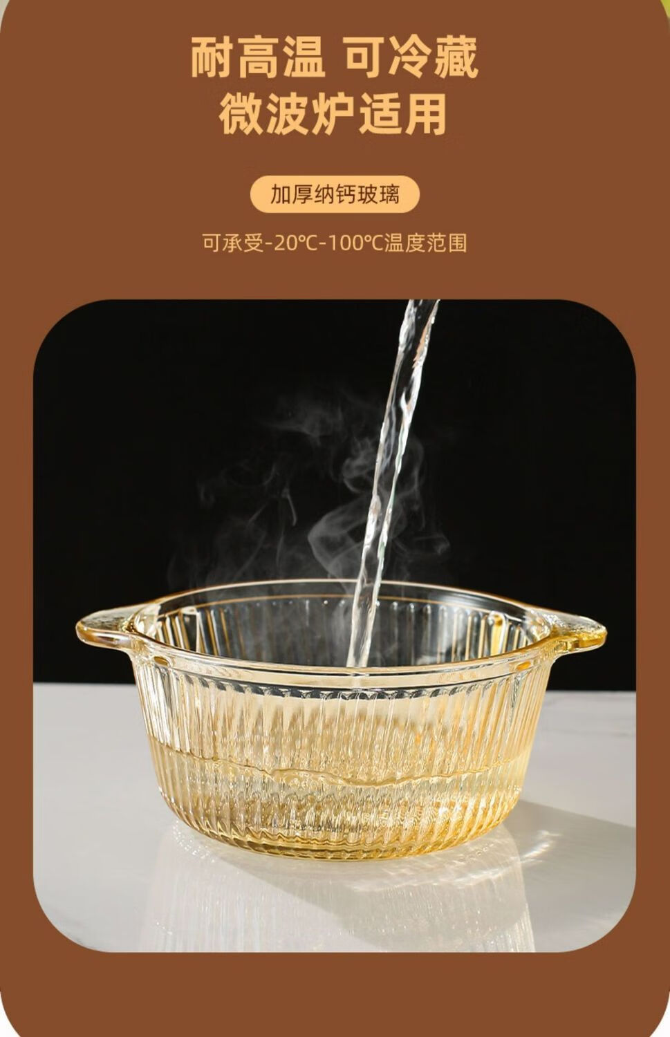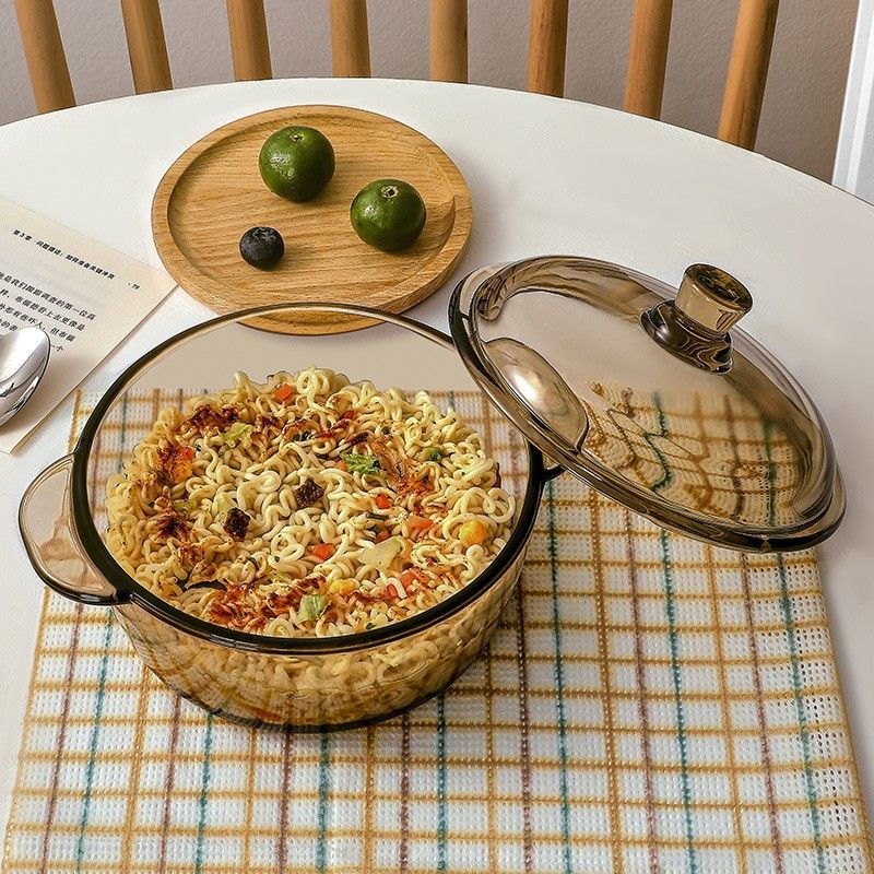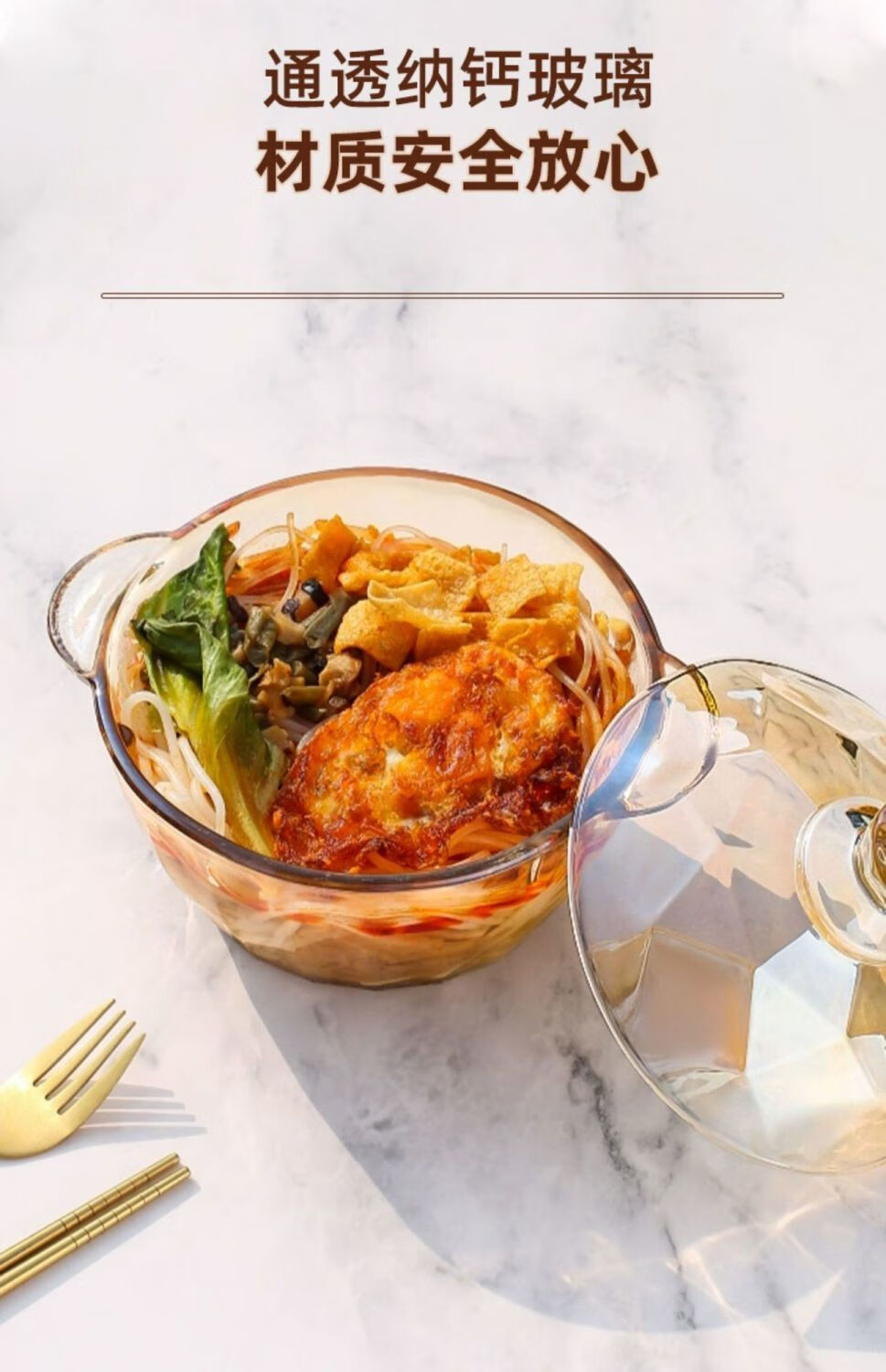 Hualeji ins style instant noodle bowl with lid salad bowl large bowl glass bowl home new dormitory student binaural soup brown small size - 11 cm