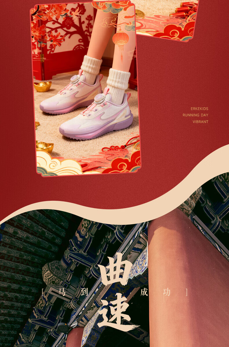 Hongxing Erke children's sports shoes for boys and girls 2026 new dense mesh magic spin running shoes for the Year of the Horse and New Year greeting shoes | Warp Speed Girls Microcrystalline White/Lavender Pink 33