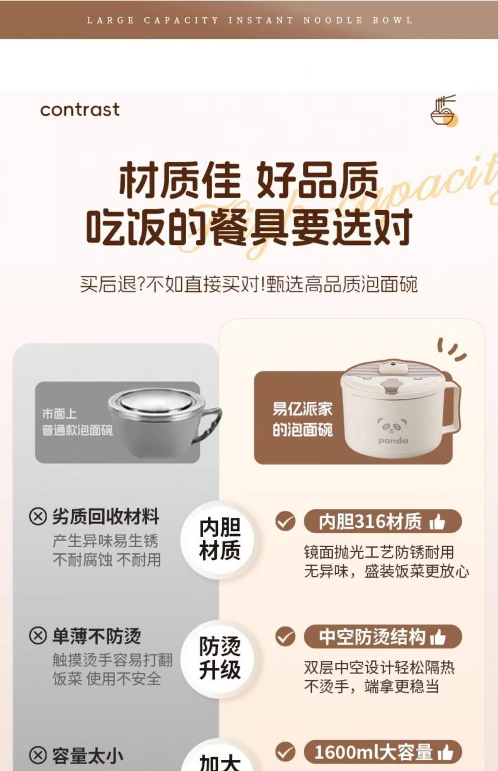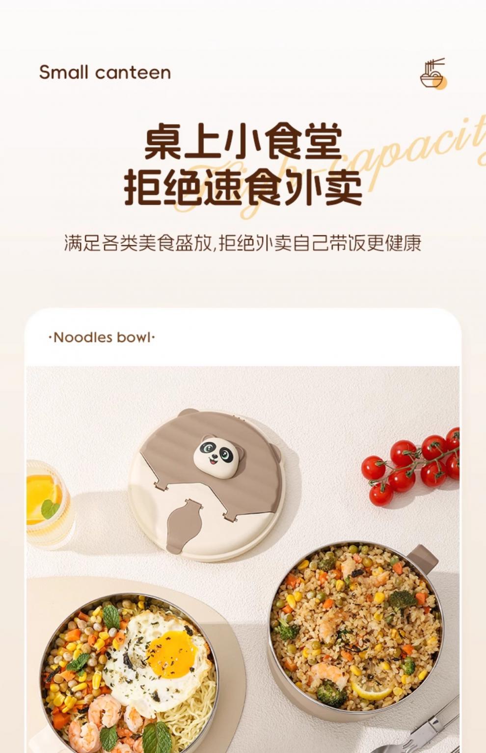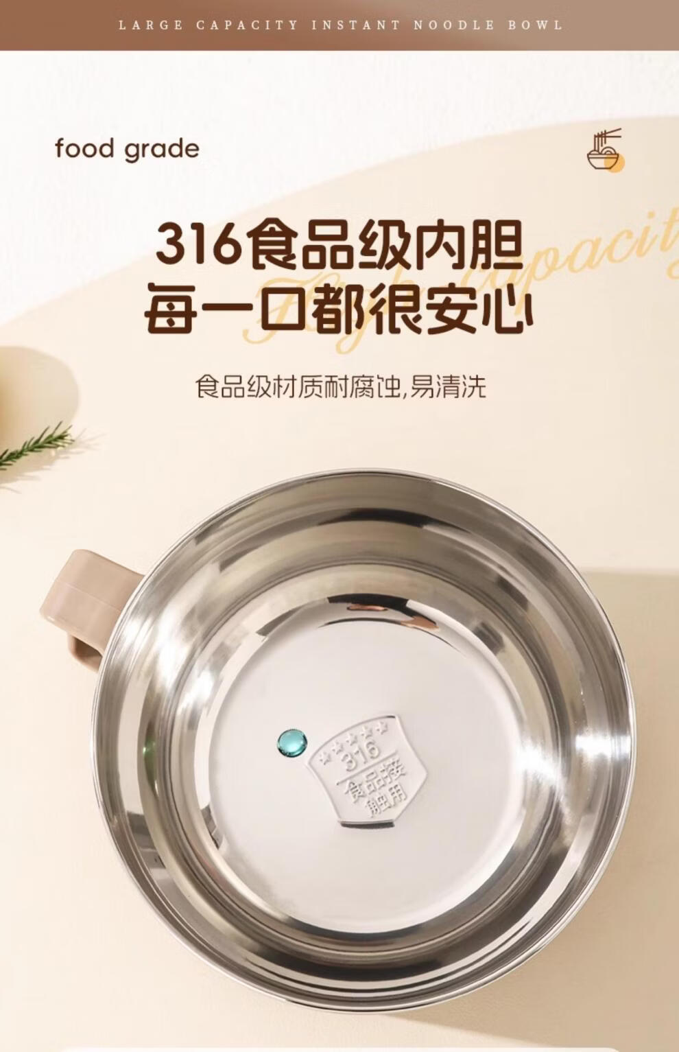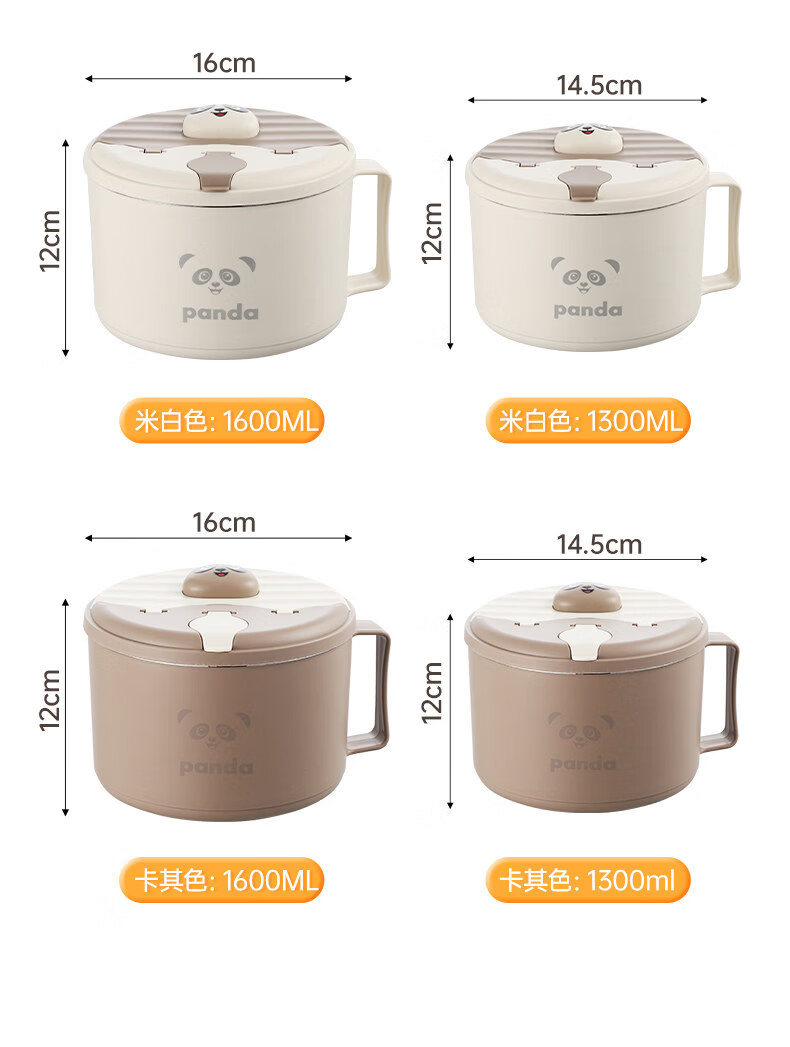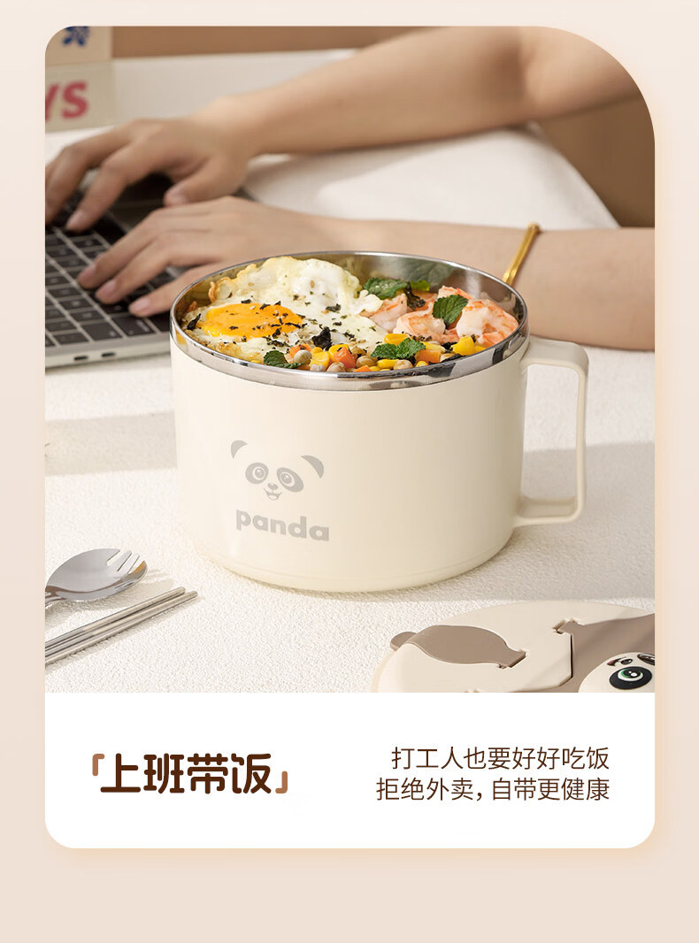 Tuojin German imported quality instant noodle bowl for dormitory students with lid 316 stainless steel instant noodle drainable bowl for canteen off-white 316 stainless steel + tableware supports testing 1300ml