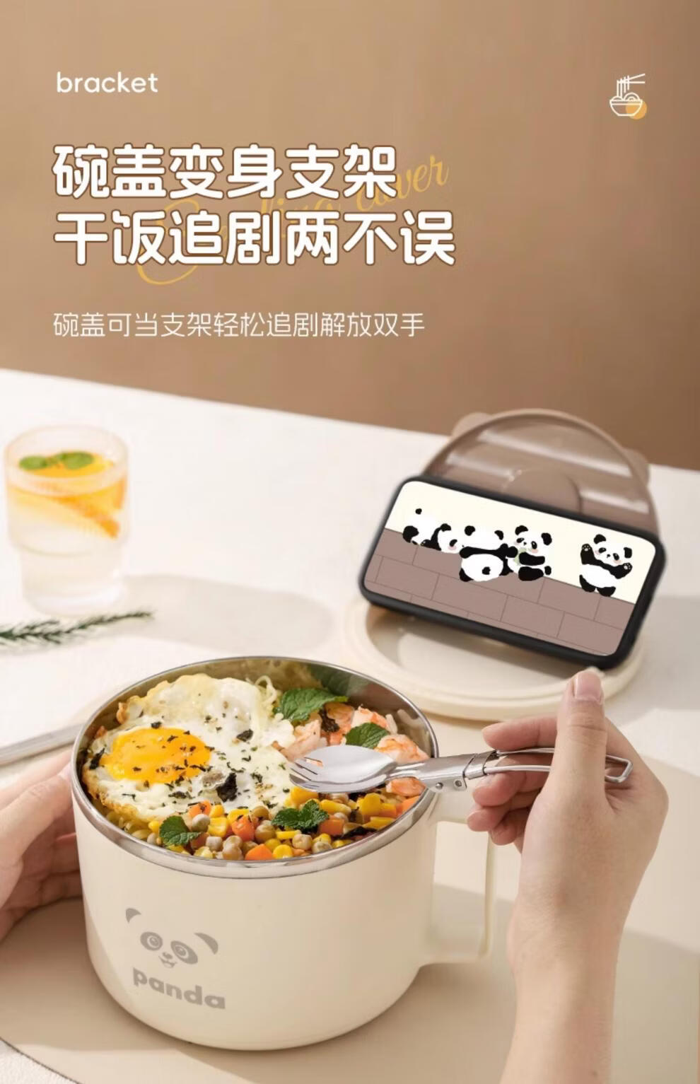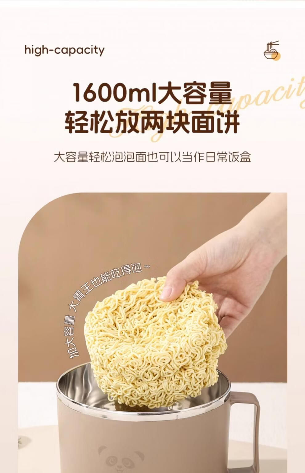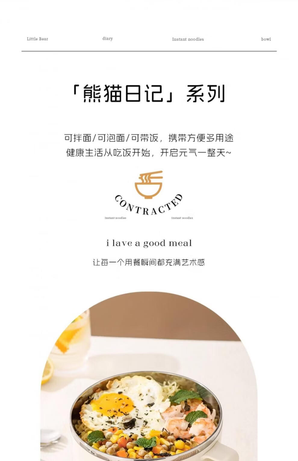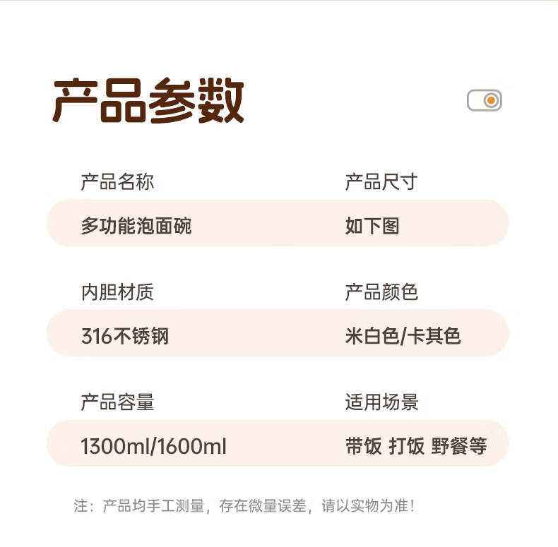 Tuojin German imported quality instant noodle bowl for dormitory students with lid 316 stainless steel instant noodle drainable bowl for canteen off-white 316 stainless steel + tableware supports testing 1300ml