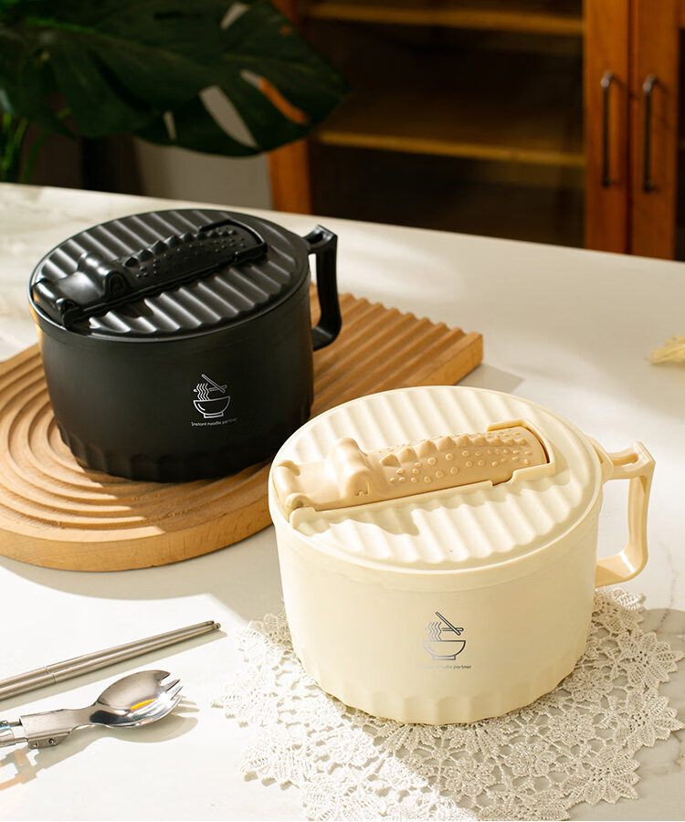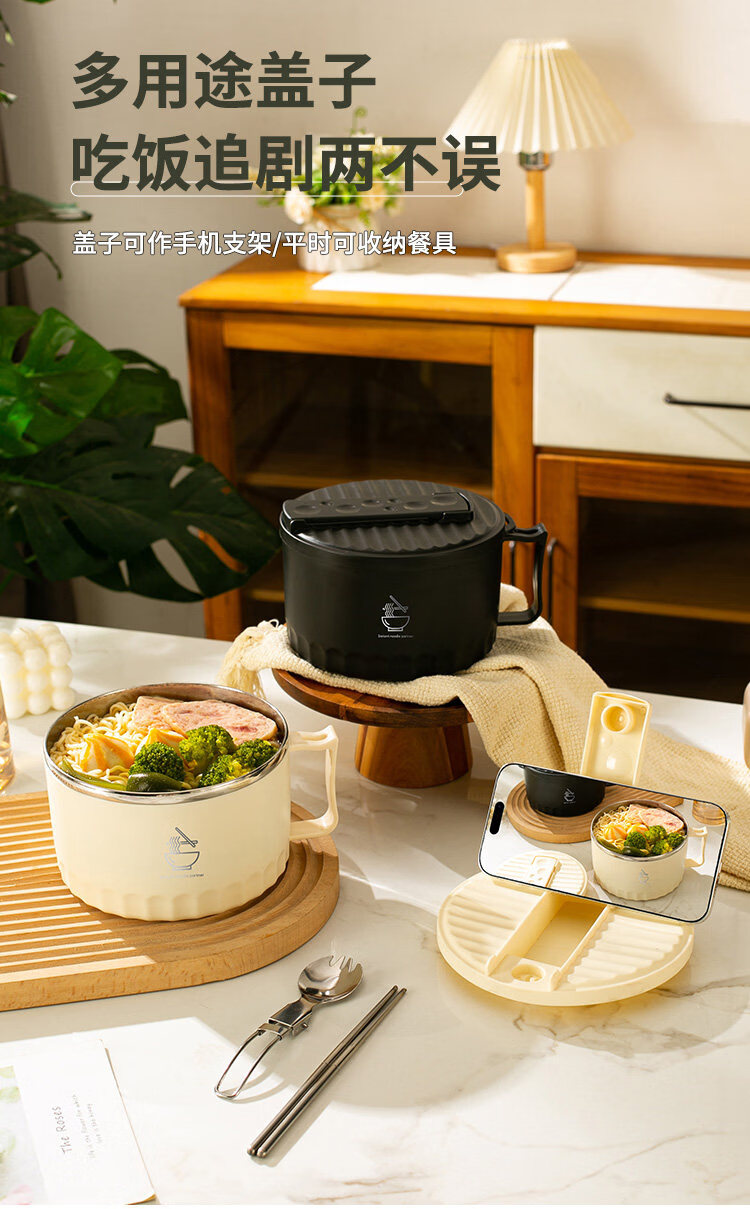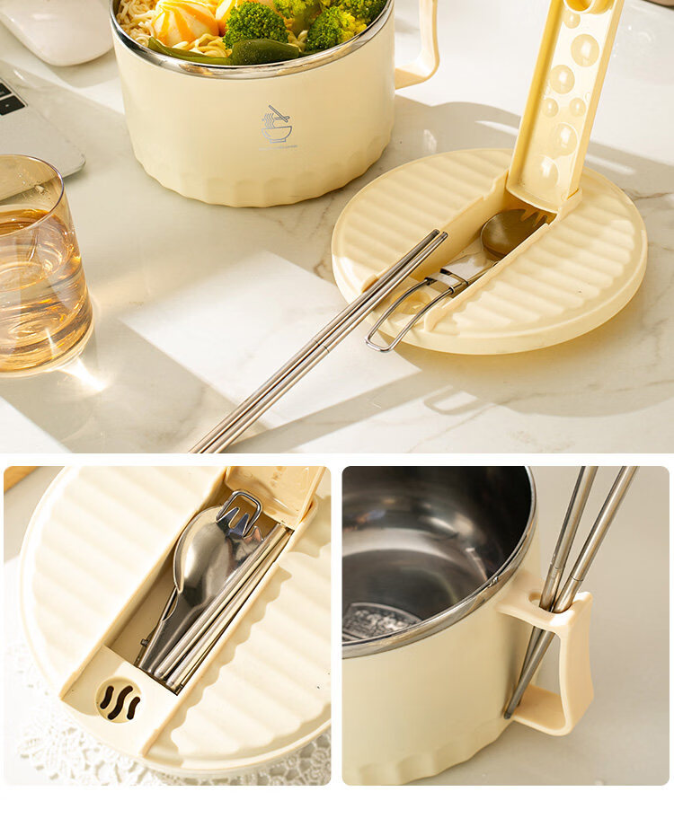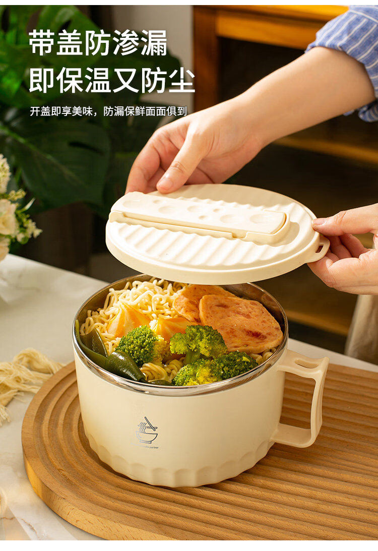 Tuojin imported high-quality, high-looking, personal-specific large-capacity college dormitory handle drained stainless steel instant noodles from Germany, standard large size (black)_comes with matching spoons and chopsticks 1400ml