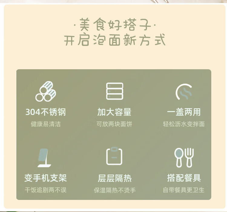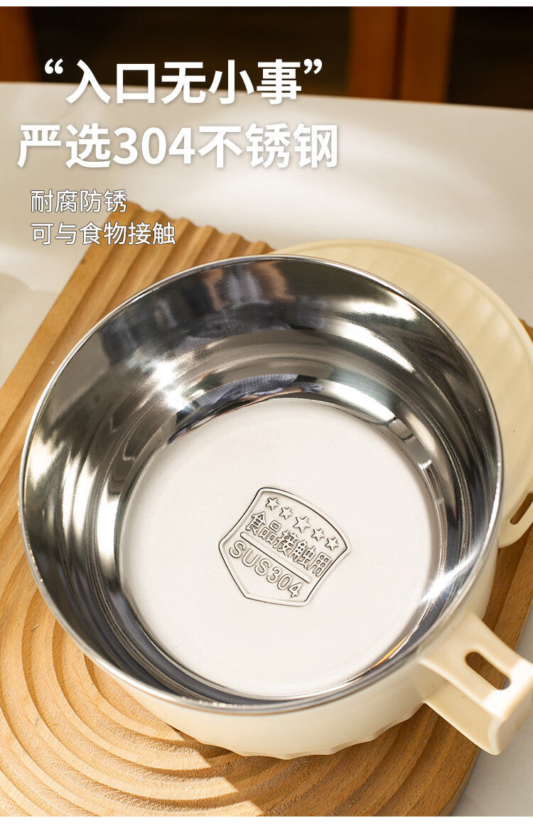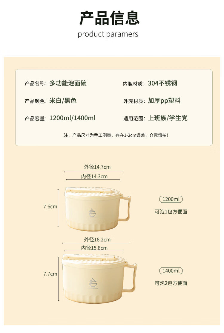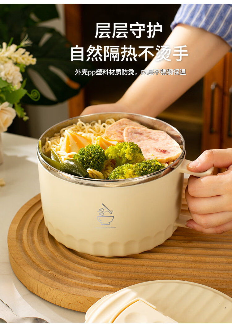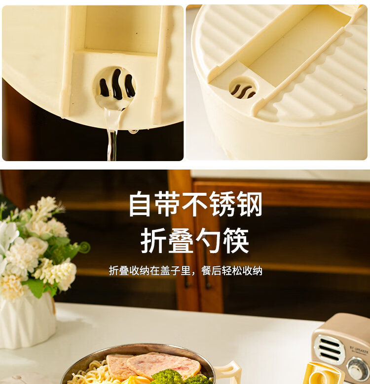 Tuojin imported high-quality, high-looking, personal-specific large-capacity college dormitory handle drained stainless steel instant noodles from Germany, standard large size (black)_comes with matching spoons and chopsticks 1400ml
