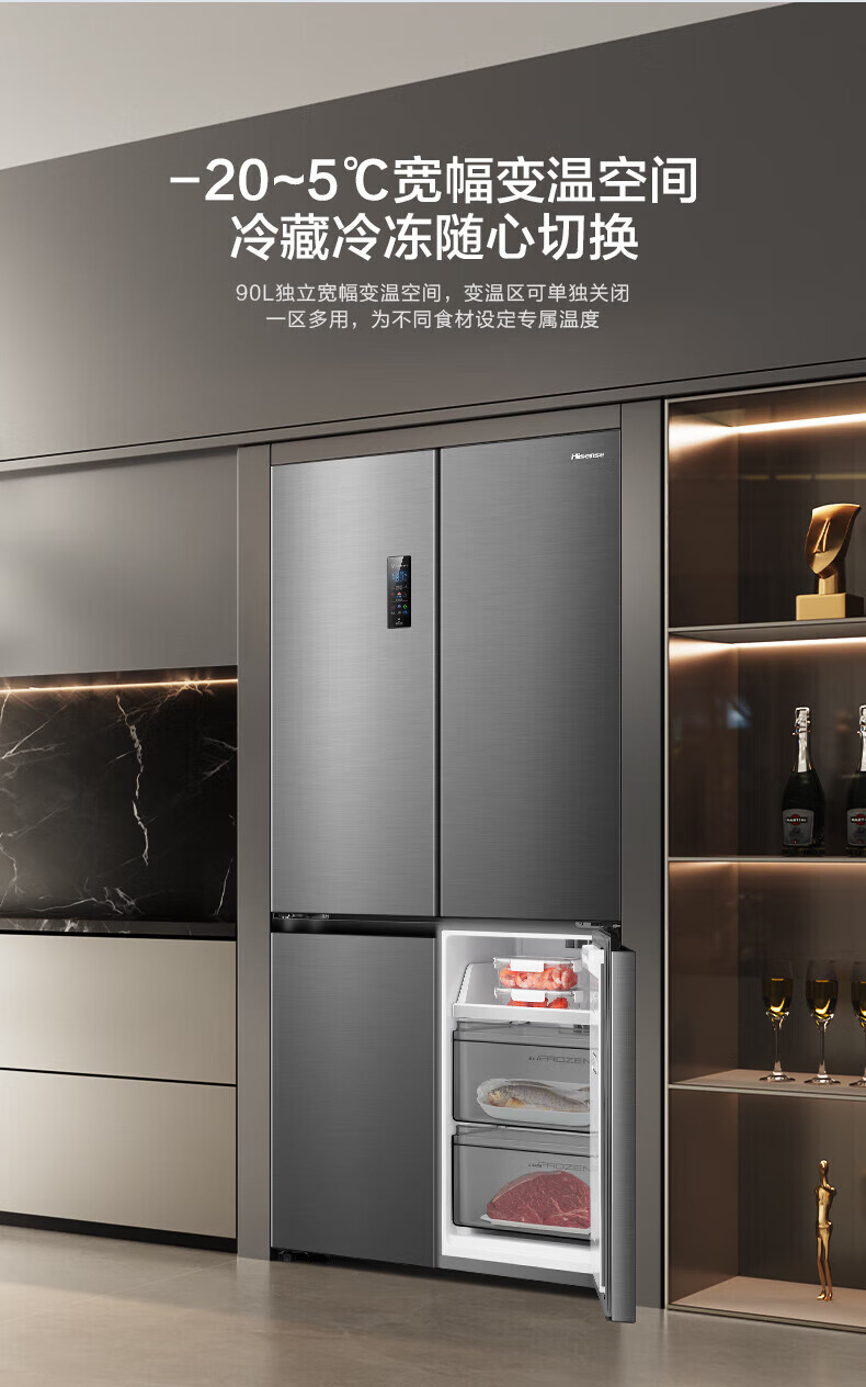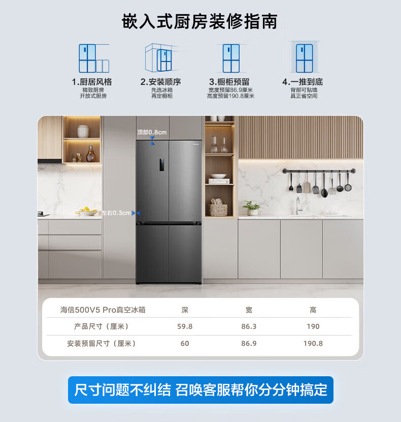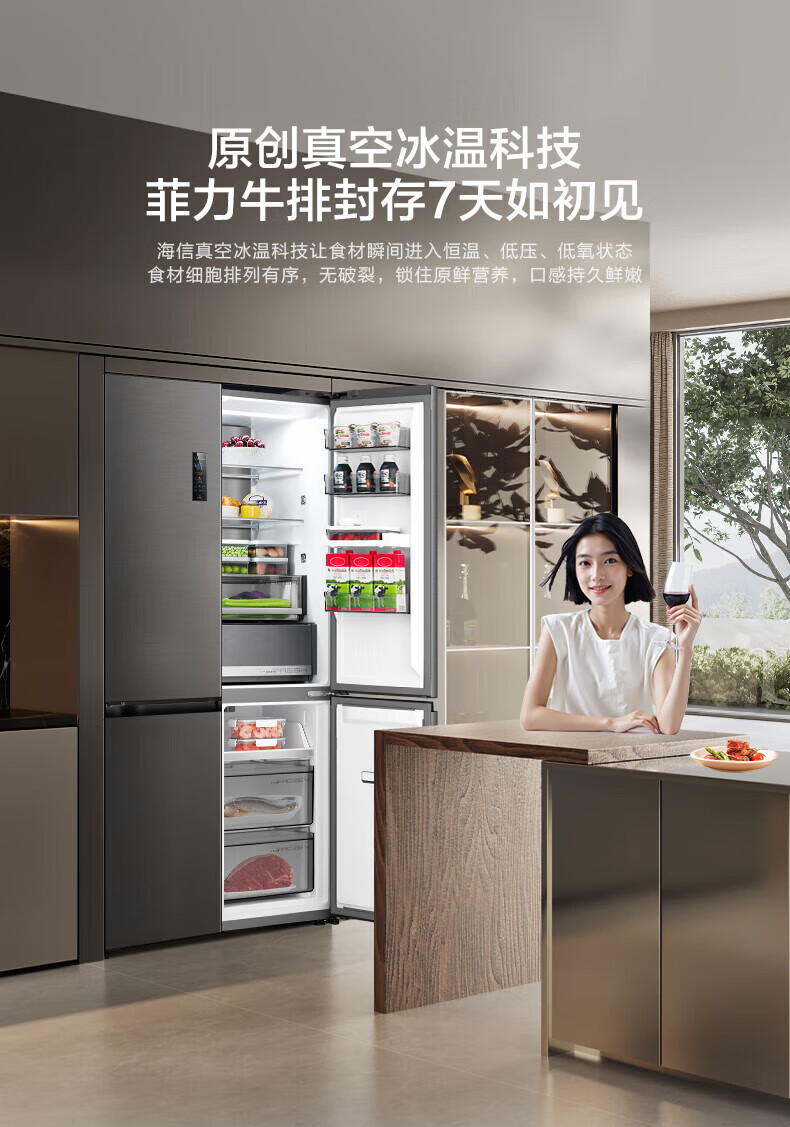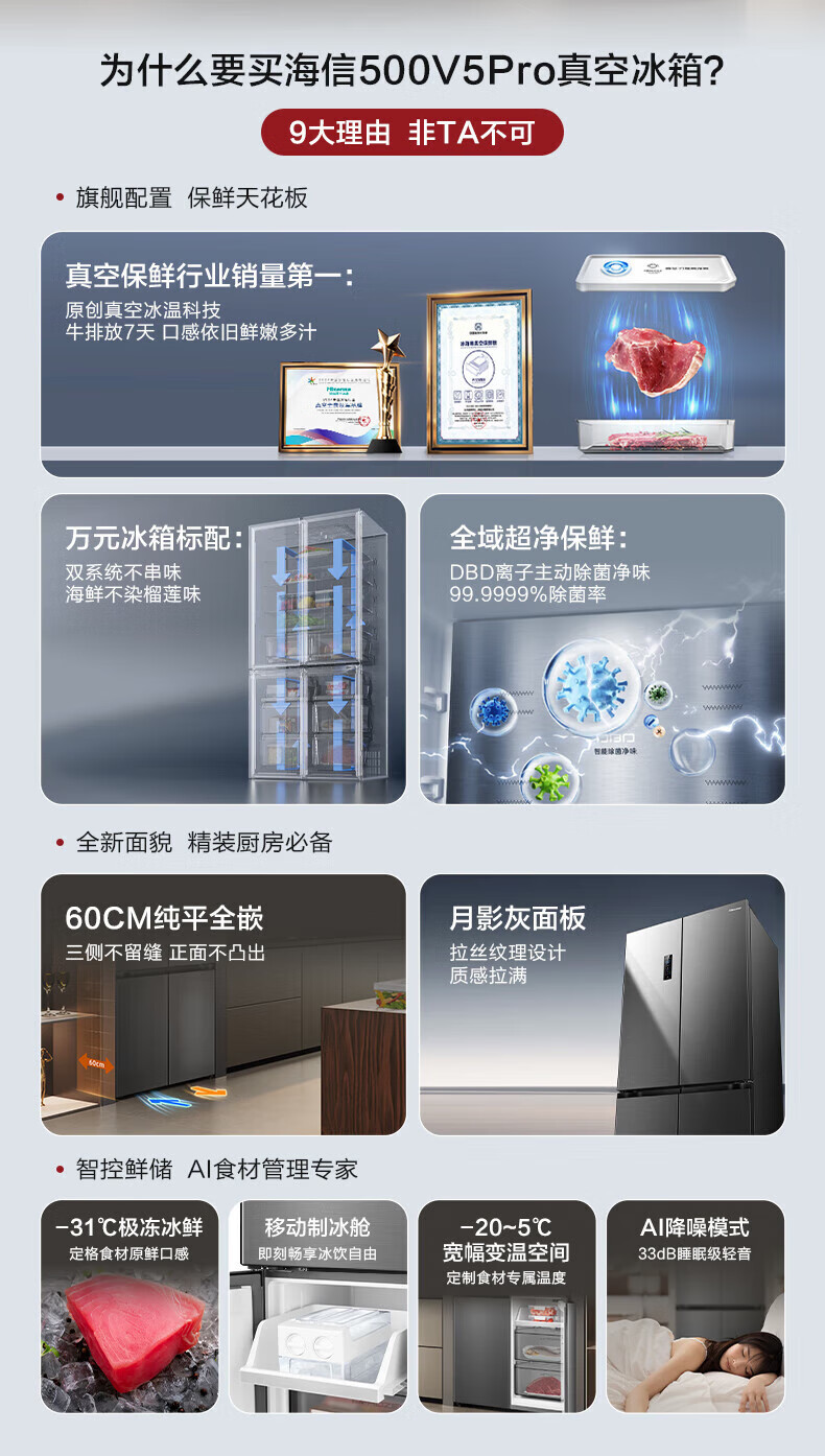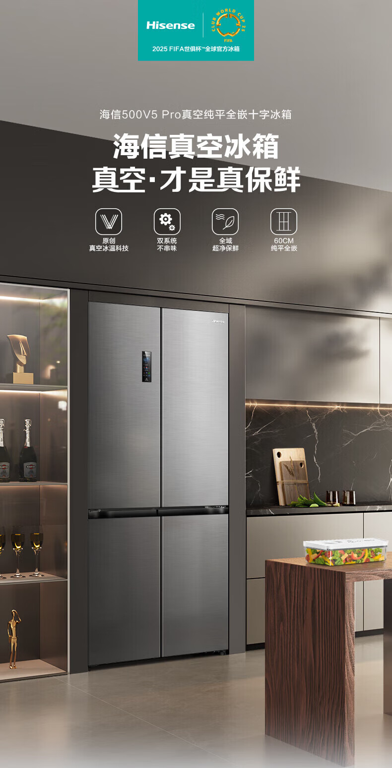 Hisense 500V5Pro vacuum zero embedded refrigerator four-door first-class energy efficiency air-cooled frost-free appliance trade-in DBD ion active sterilization BCD-500V5CZKQD