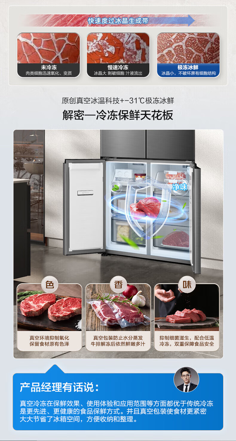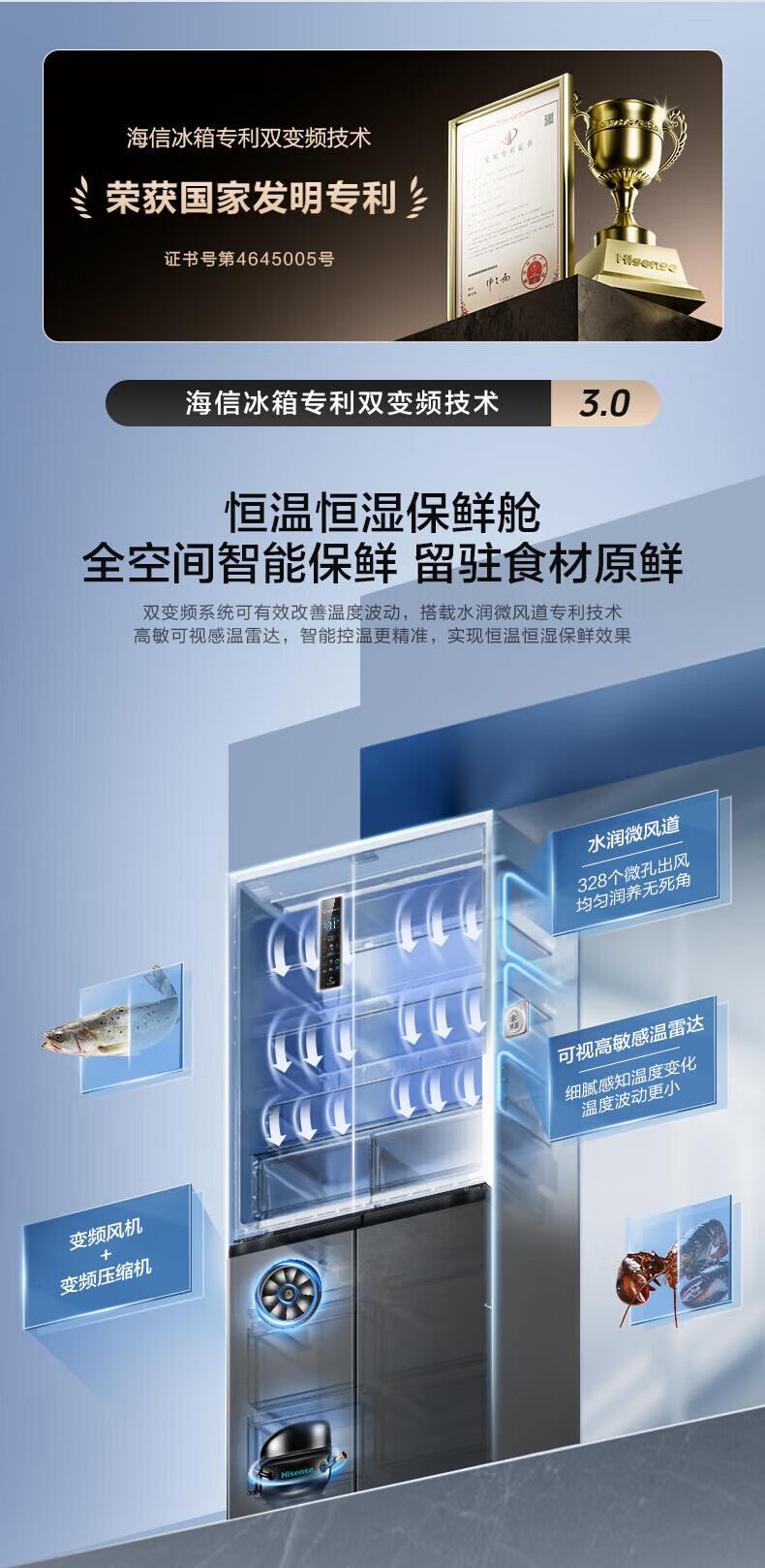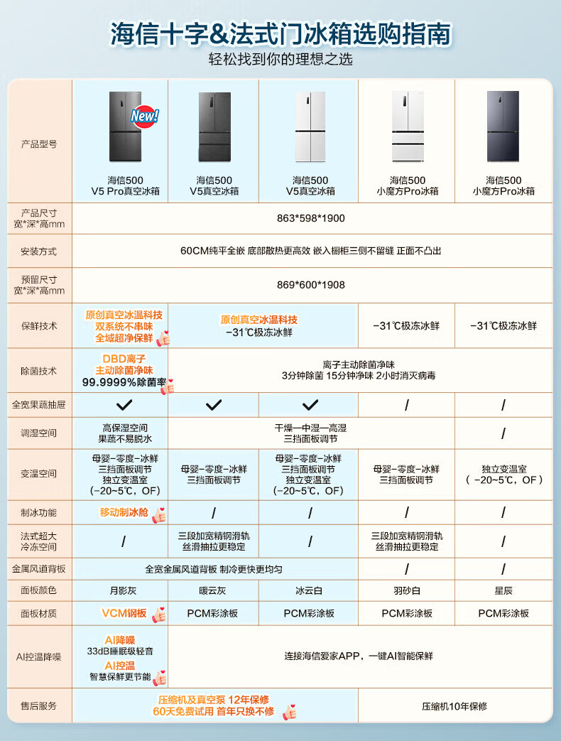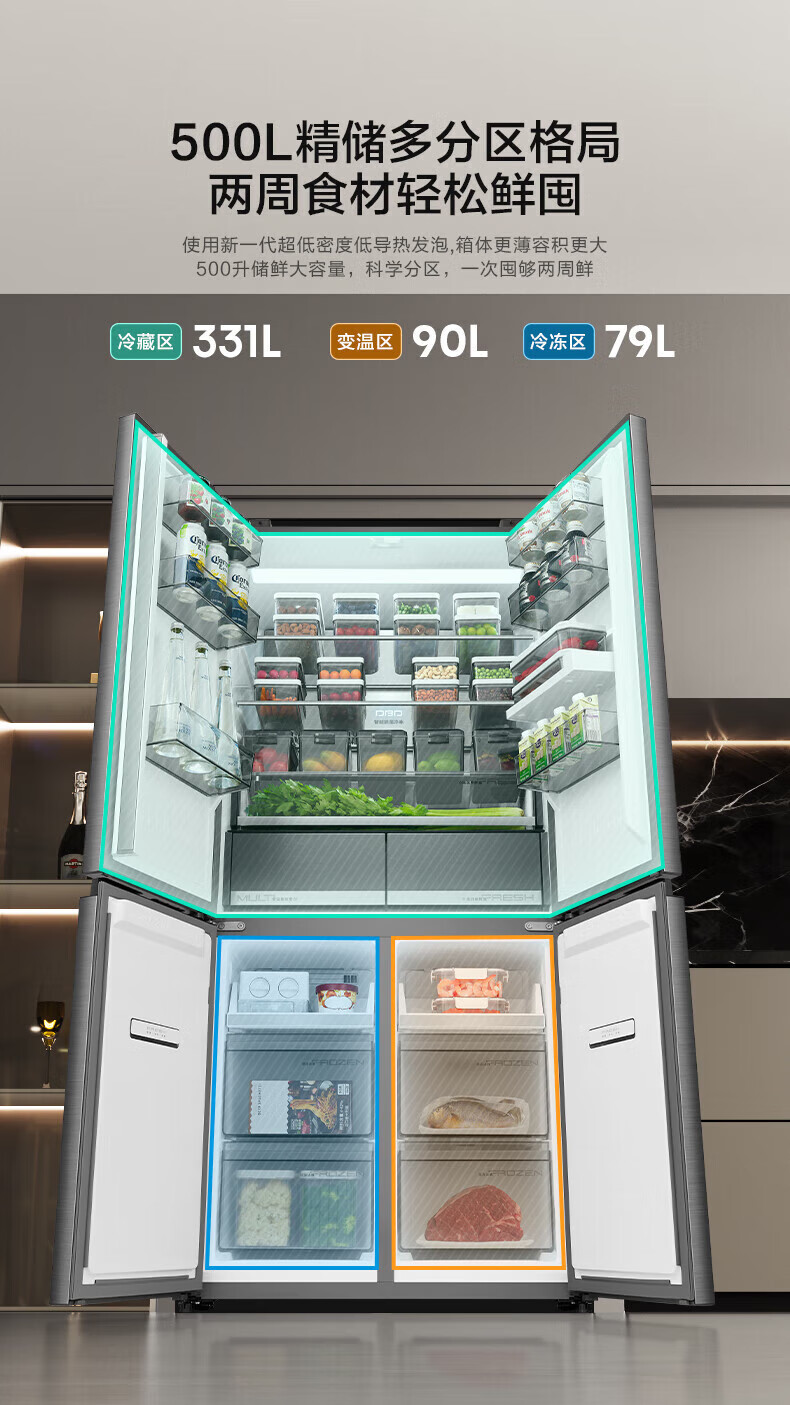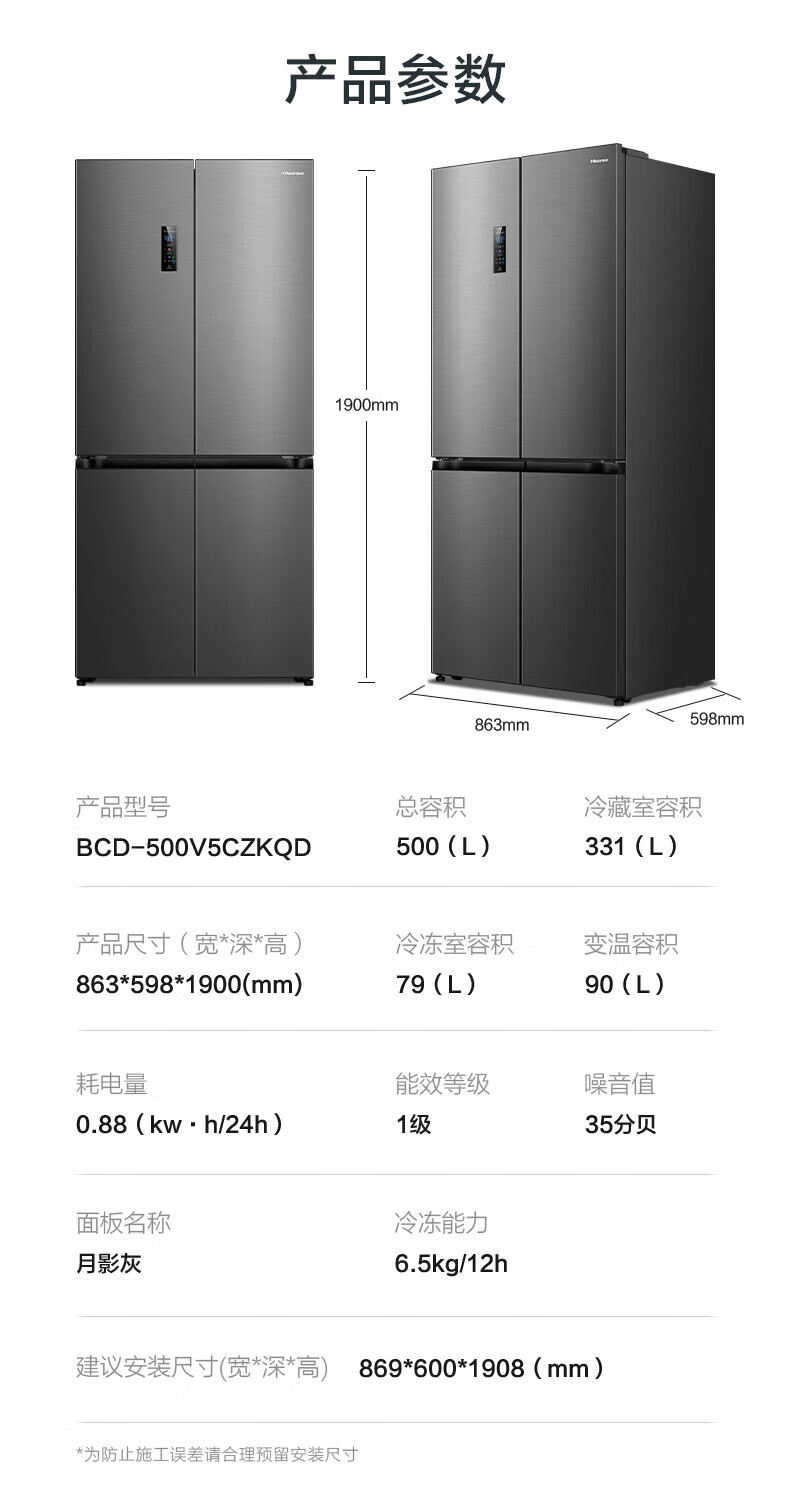 Hisense 500V5Pro vacuum zero embedded refrigerator four-door first-class energy efficiency air-cooled frost-free appliance trade-in DBD ion active sterilization BCD-500V5CZKQD