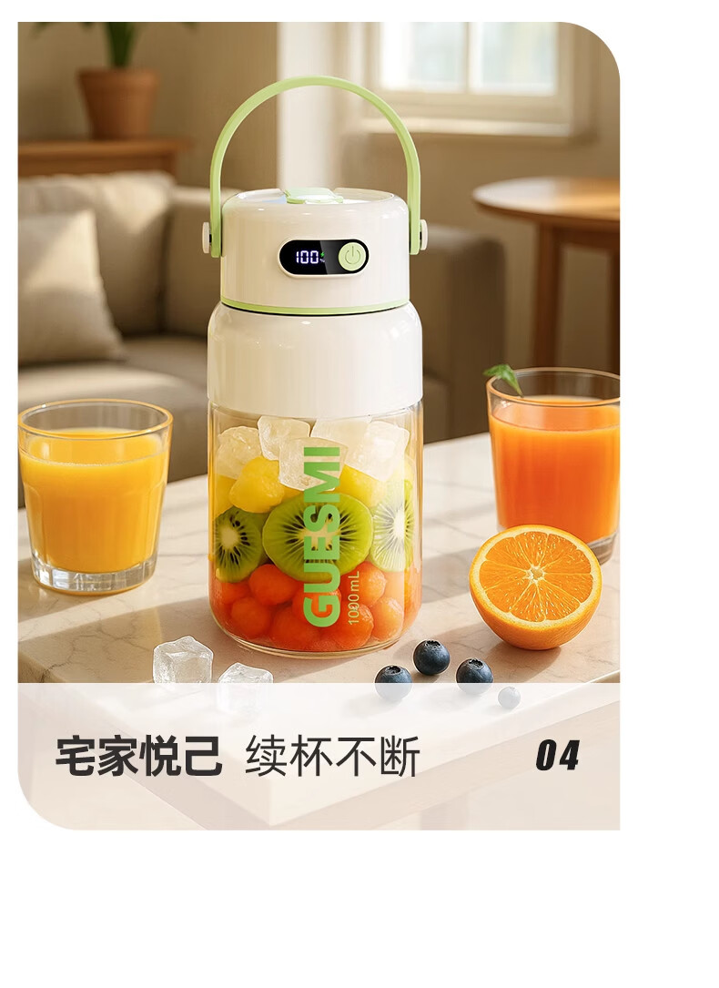 Tuojin Japan imported quality German 2025 new juicer thickened glass wireless portable juice cup small home fresh green - glass model 700ml power digital display + 26 leaves 316 steel