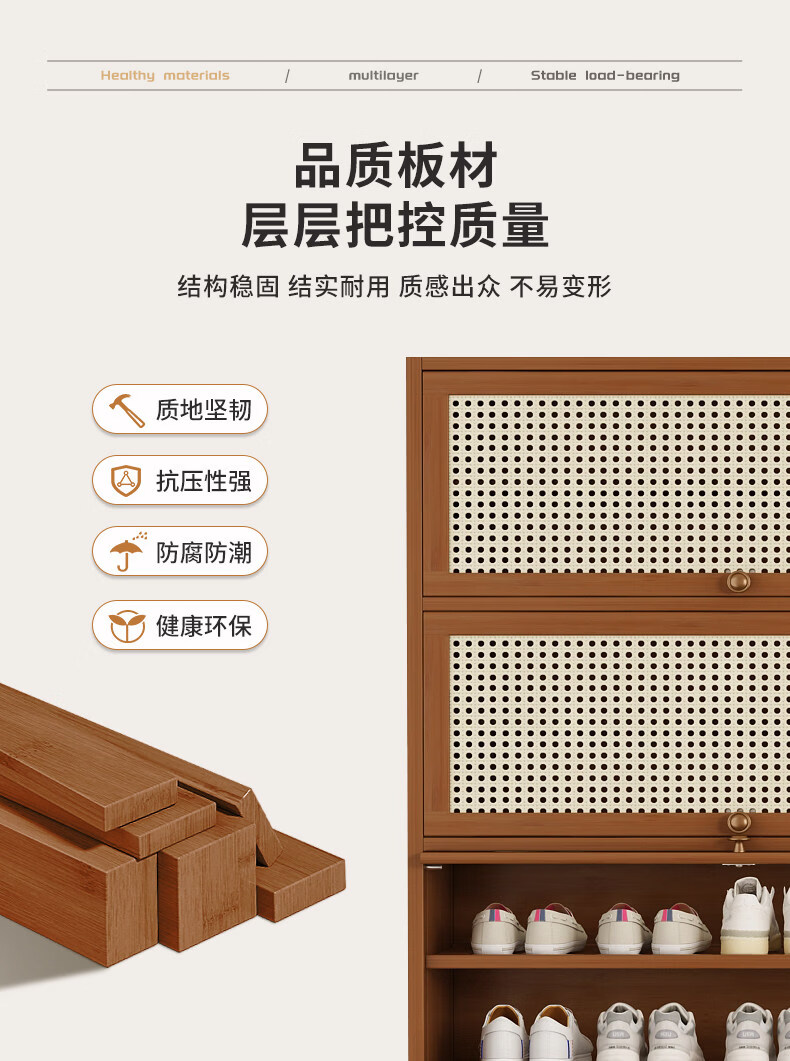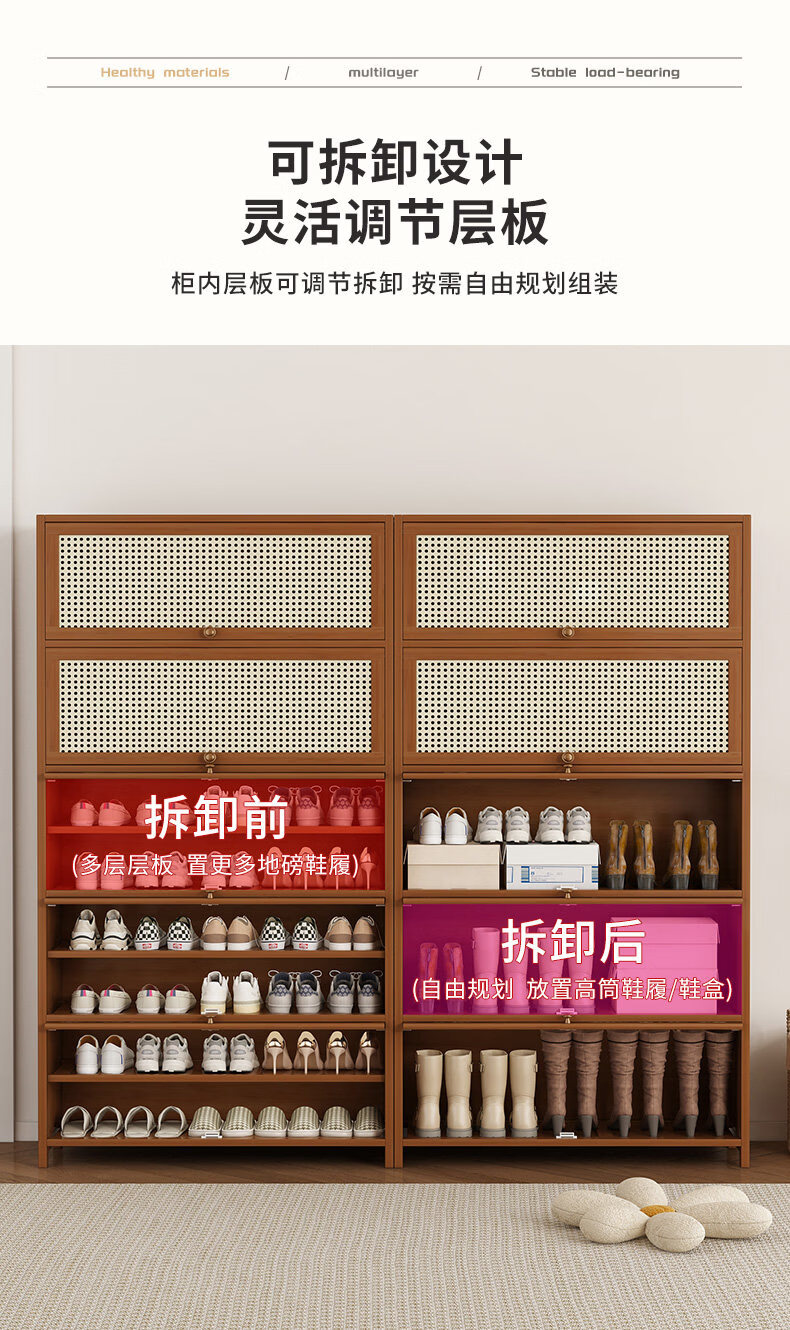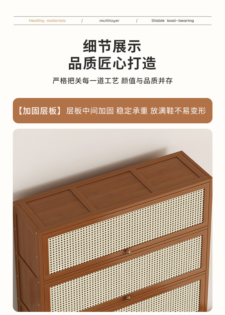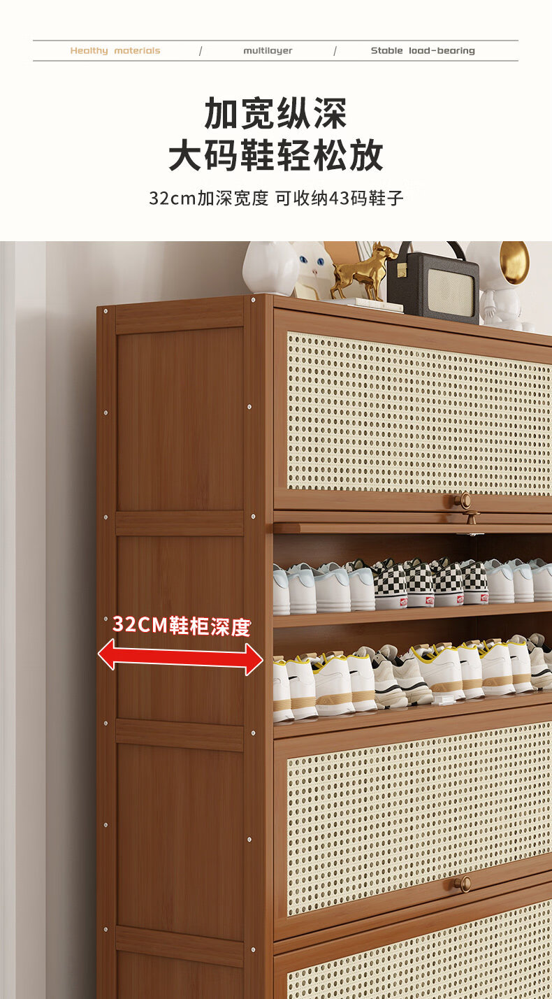 Shoe storage artifact shoe cabinet at home doorway outdoor multi-layer simple entry storage bamboo shoe rack new style brown plastic rattan door extended version 11 layers 100 long (widened 32CM)