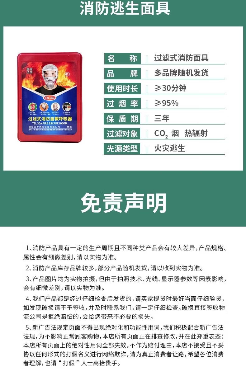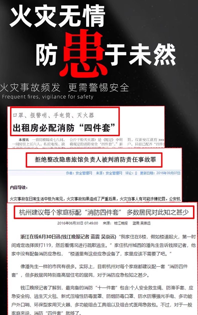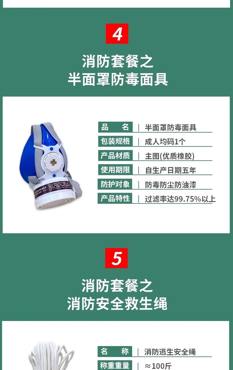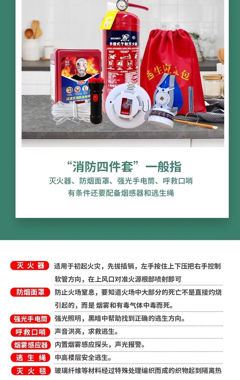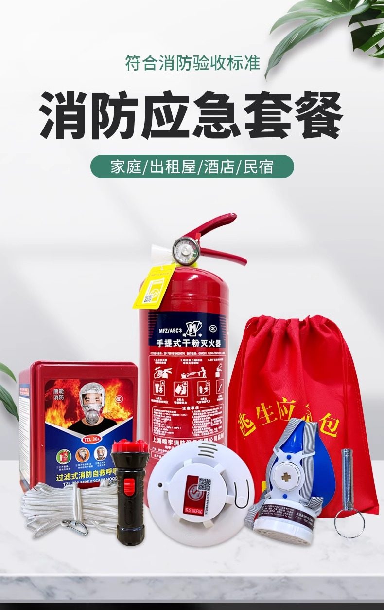 Fire escape four-piece fire rental house home use set hotel hotel self-rescue emergency kit 2 masks + large escape bag_(bag can hold two masks)