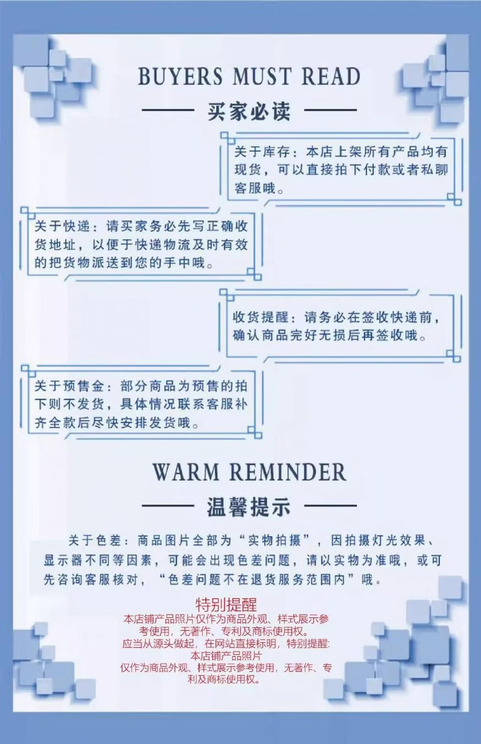 2)The shipping cost is normally charged by every 0.5KG. So if you buy a product that is only 0.1KG then you might consider buying 2-3 PCS per time which will not add more shipping cost for your order.