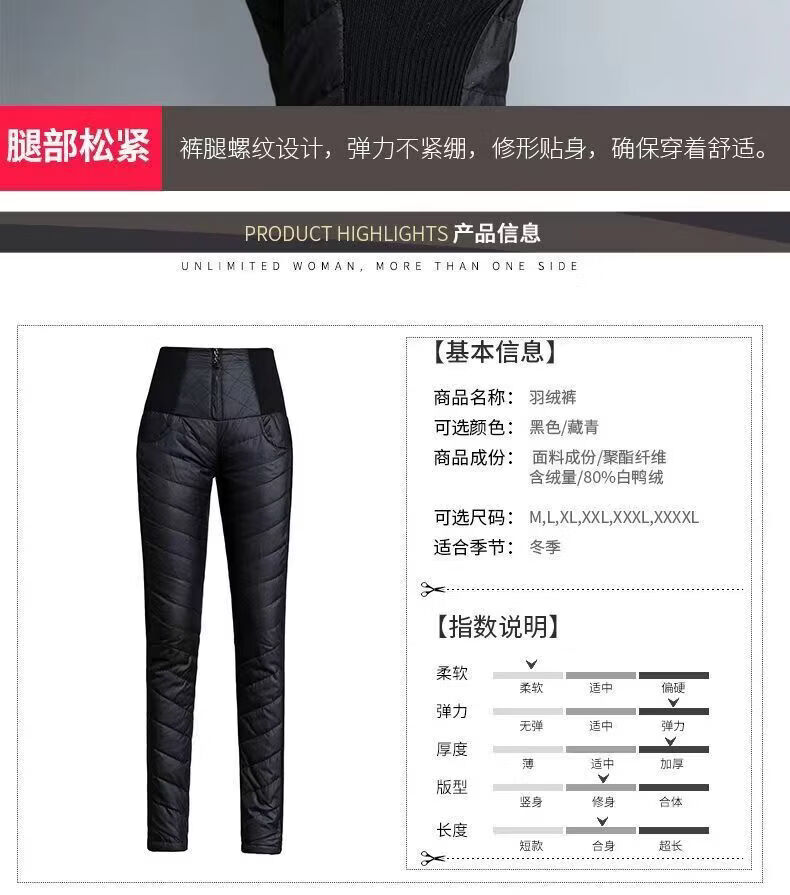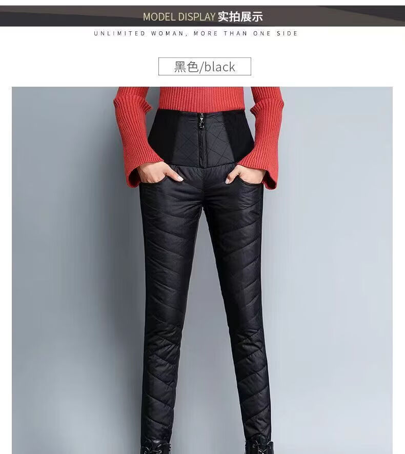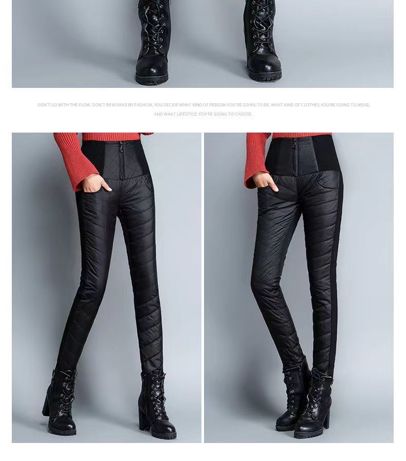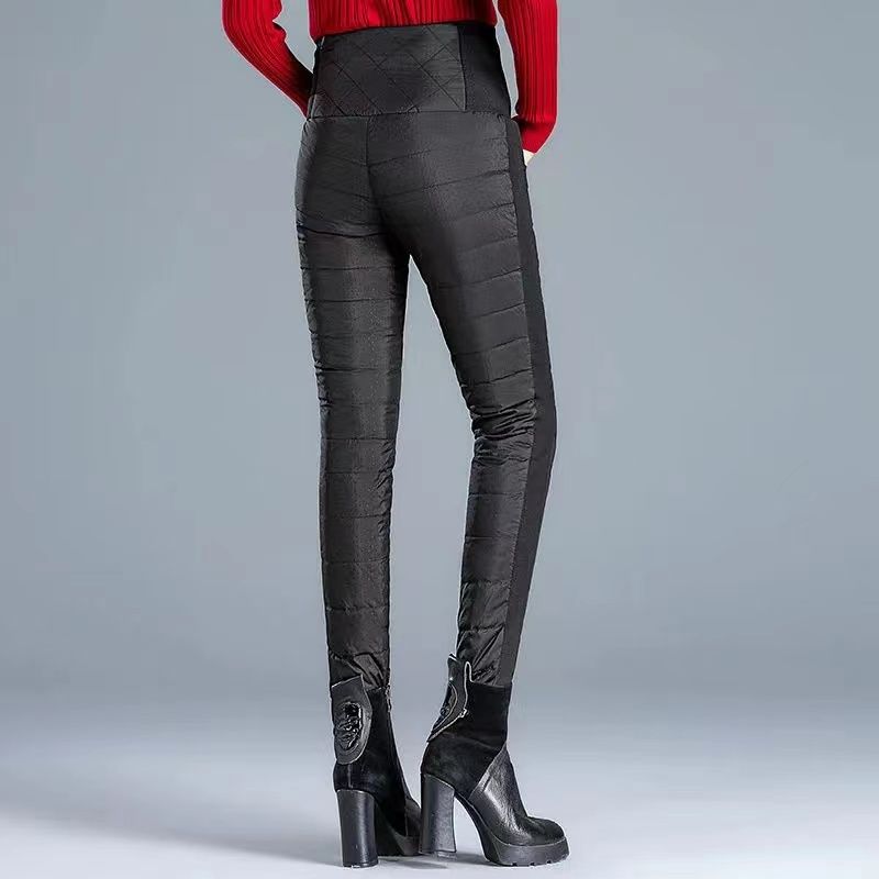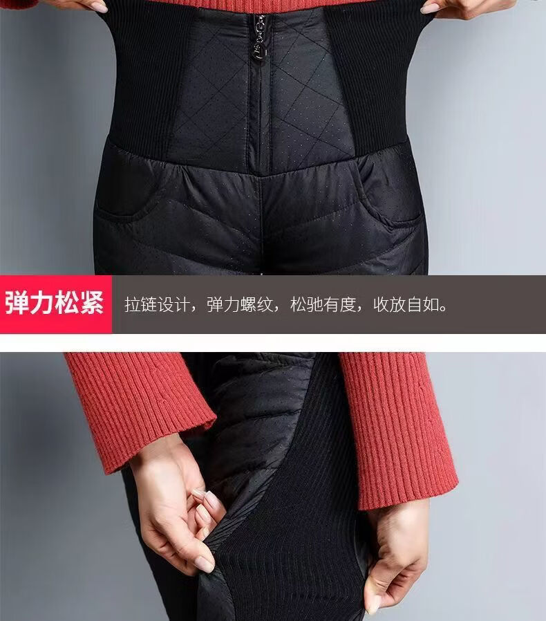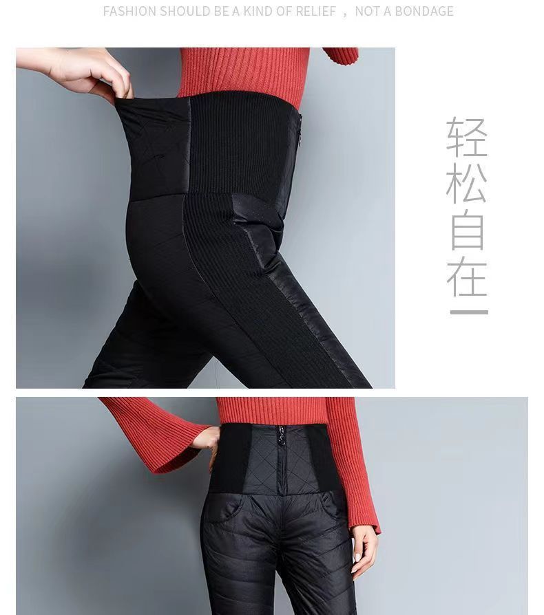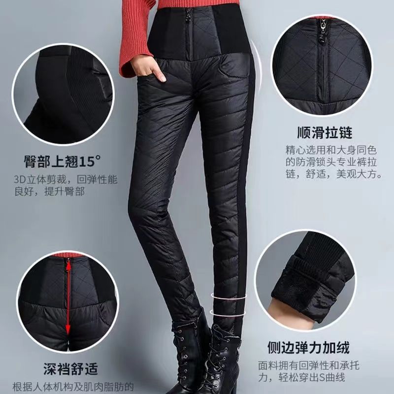 ROMON down pants for women to wear high waist thickened white duck down slimming double-sided warm winter Korean style pencil pants for women black 4XL 136-155Jin Jin is equal to 0.5kg waist circumference 82-97