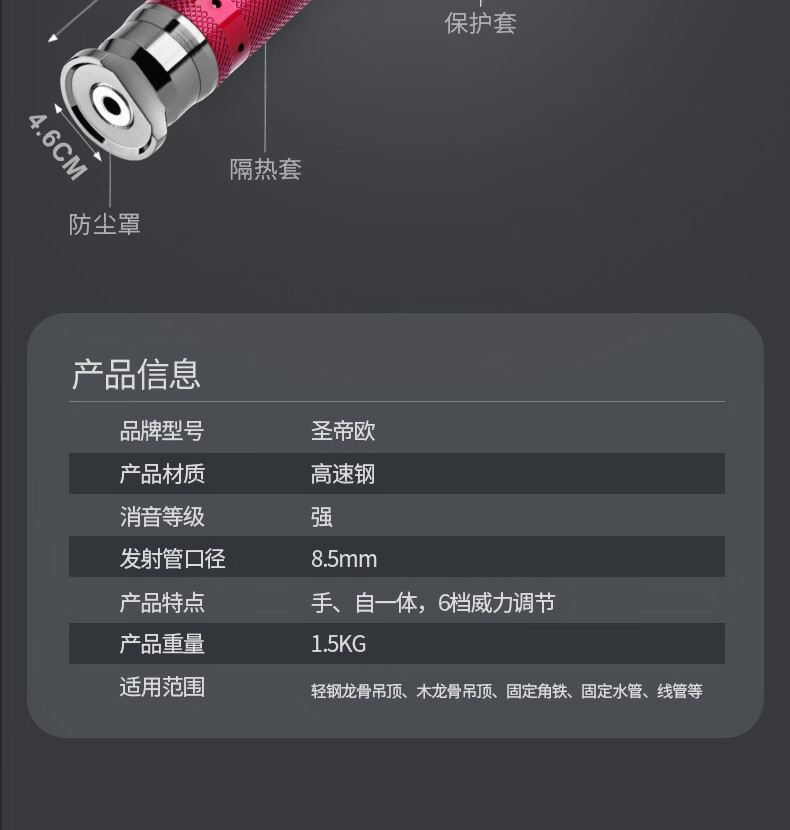 Shengdeou Cannon Nail Gun, Silent Ceiling Artifact, Integrated Nail Gun, High Power Nailer, Silencer, Decoration, Carpentry and Concrete Use, Jianzun M9 Single Head + Consumable Parts