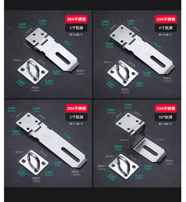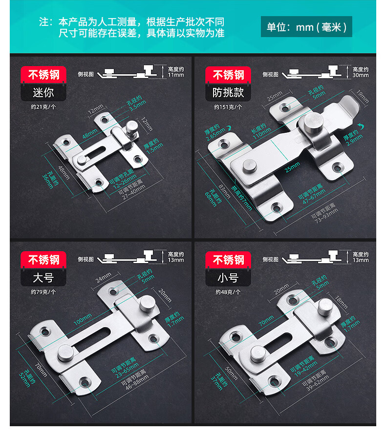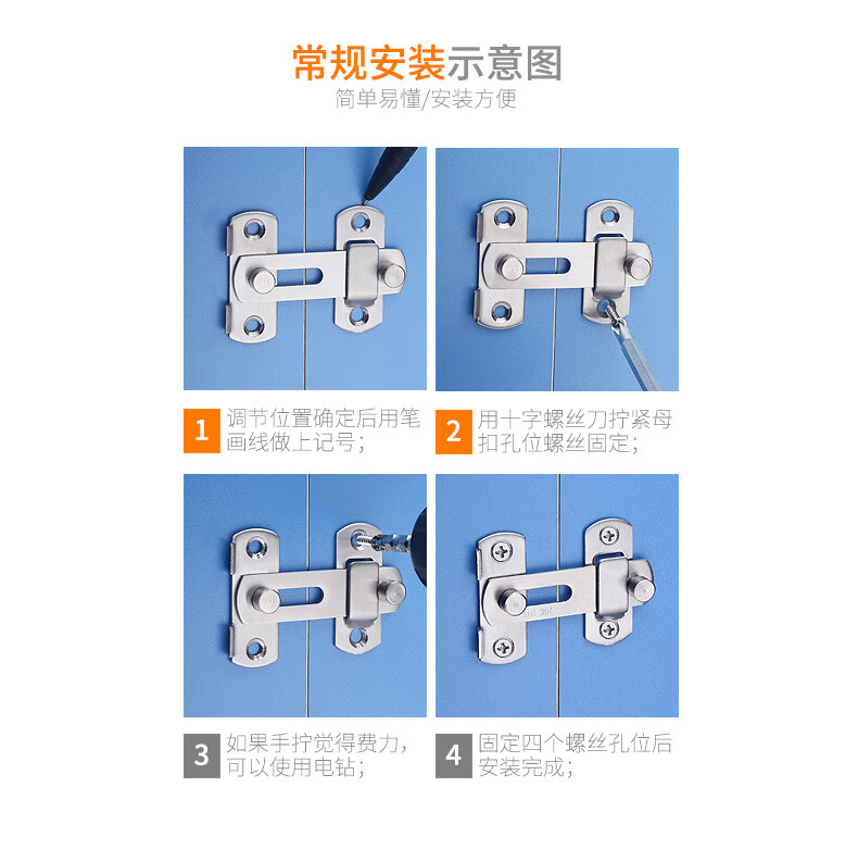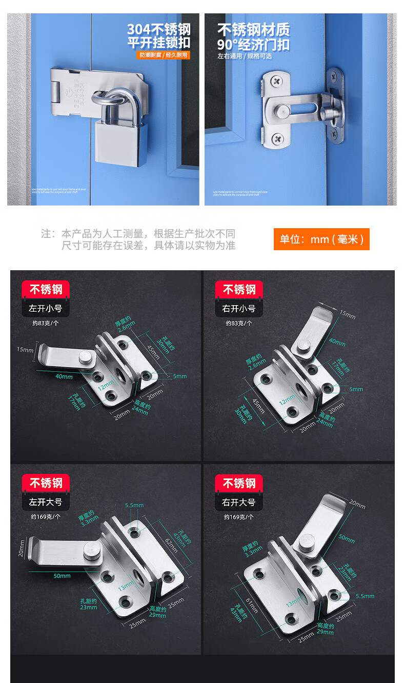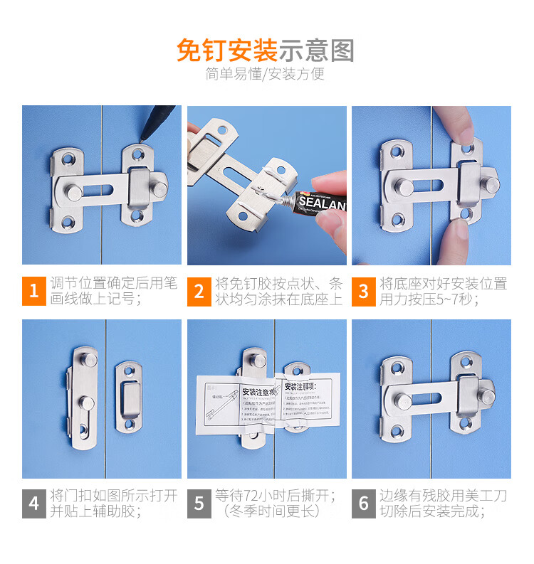 XMSJ door bolt punch-free magnet adhesive strong latch door buckle small buckle simple fixed toilet lock door buckle rotation thickened stainless steel left door buckle large