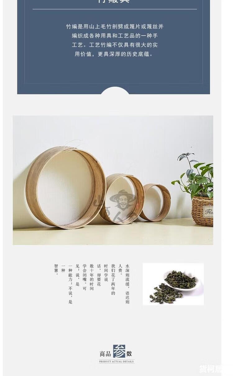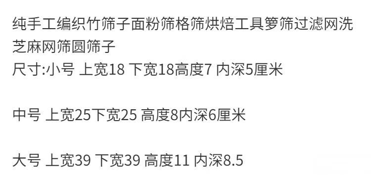Sieve surface sieve flour household hand-woven bamboo sieve grid sieve baking tool basket sieve filter washing sesame net large size 39*11 points 5cm