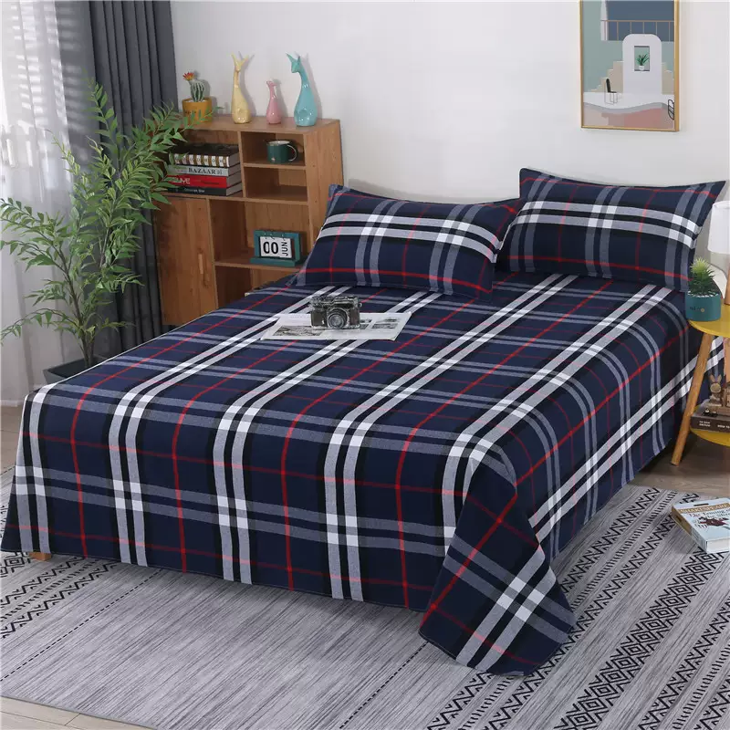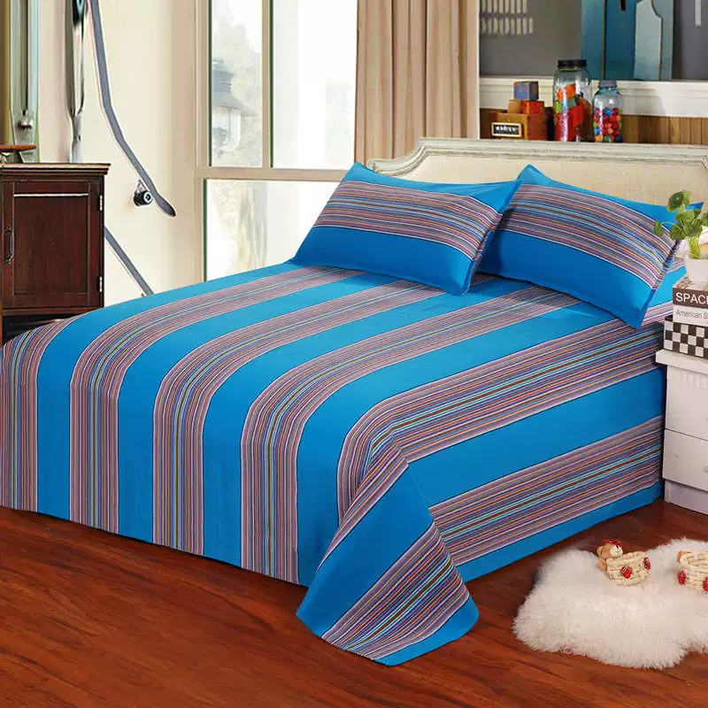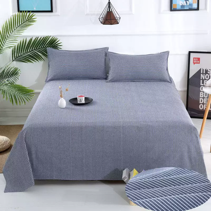 Yusenyi thickened striped four-season three-piece quilt cover single-piece double single dormitory cloth sheet quilt cover quilt old royal blue 2.5x2.5 meter sheet for large bed