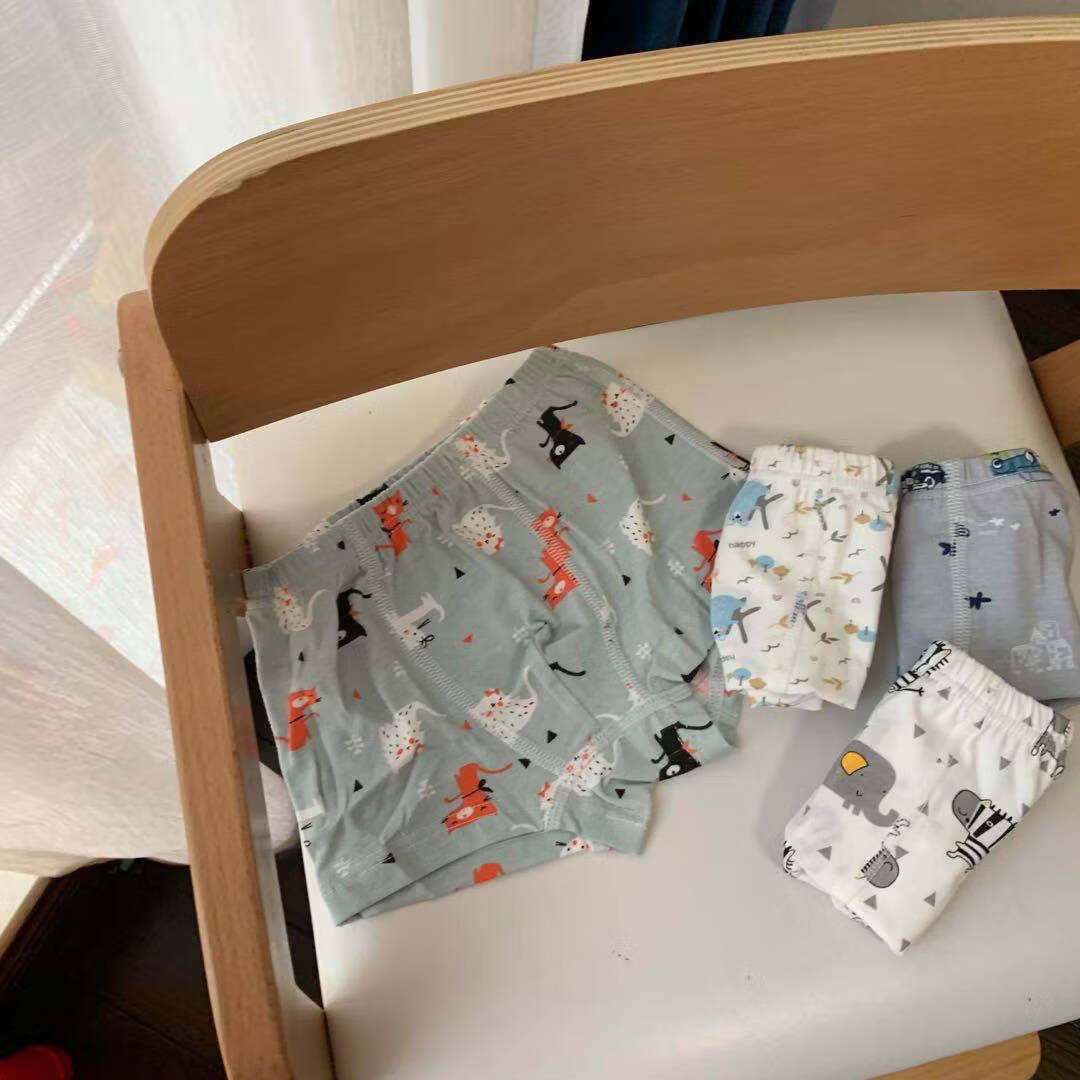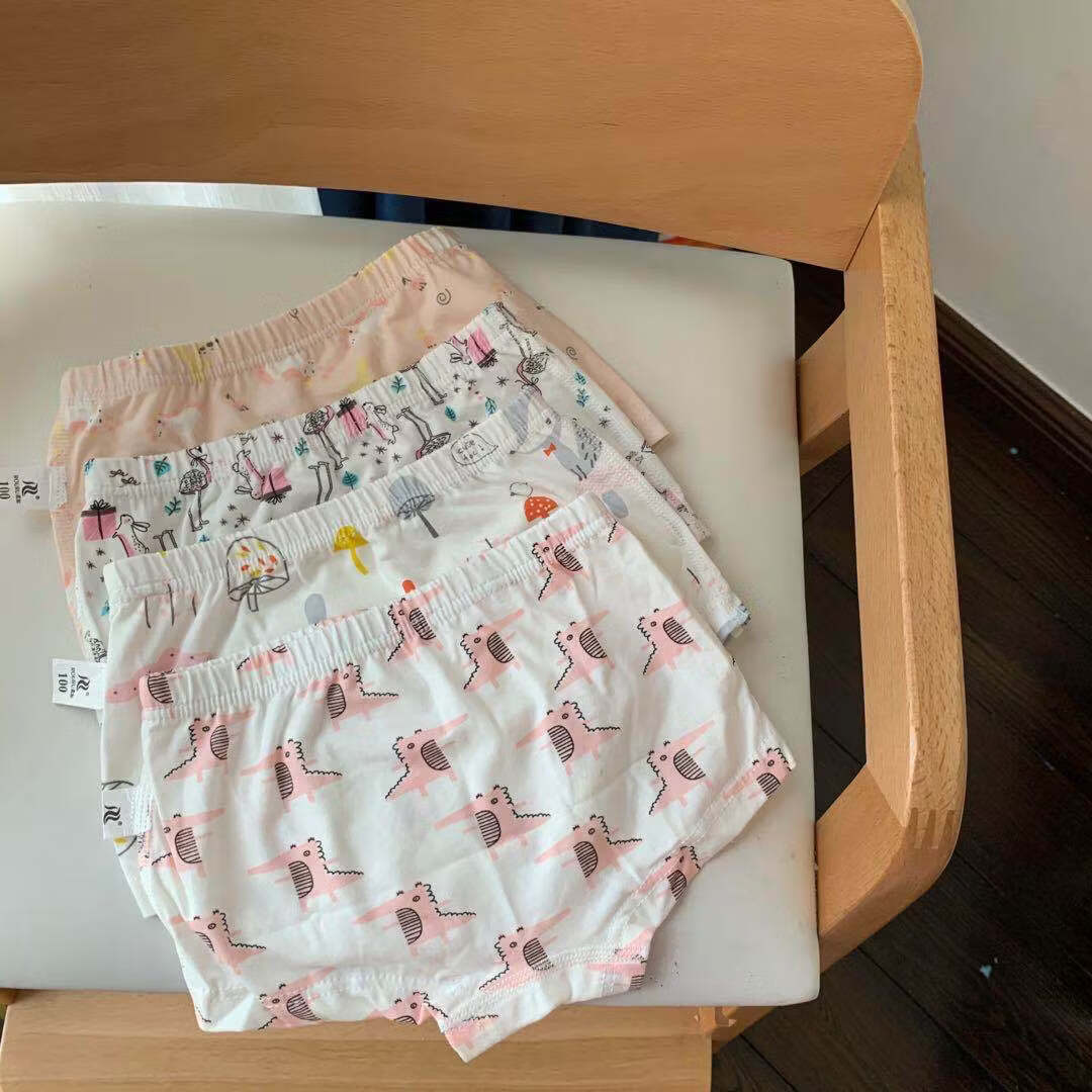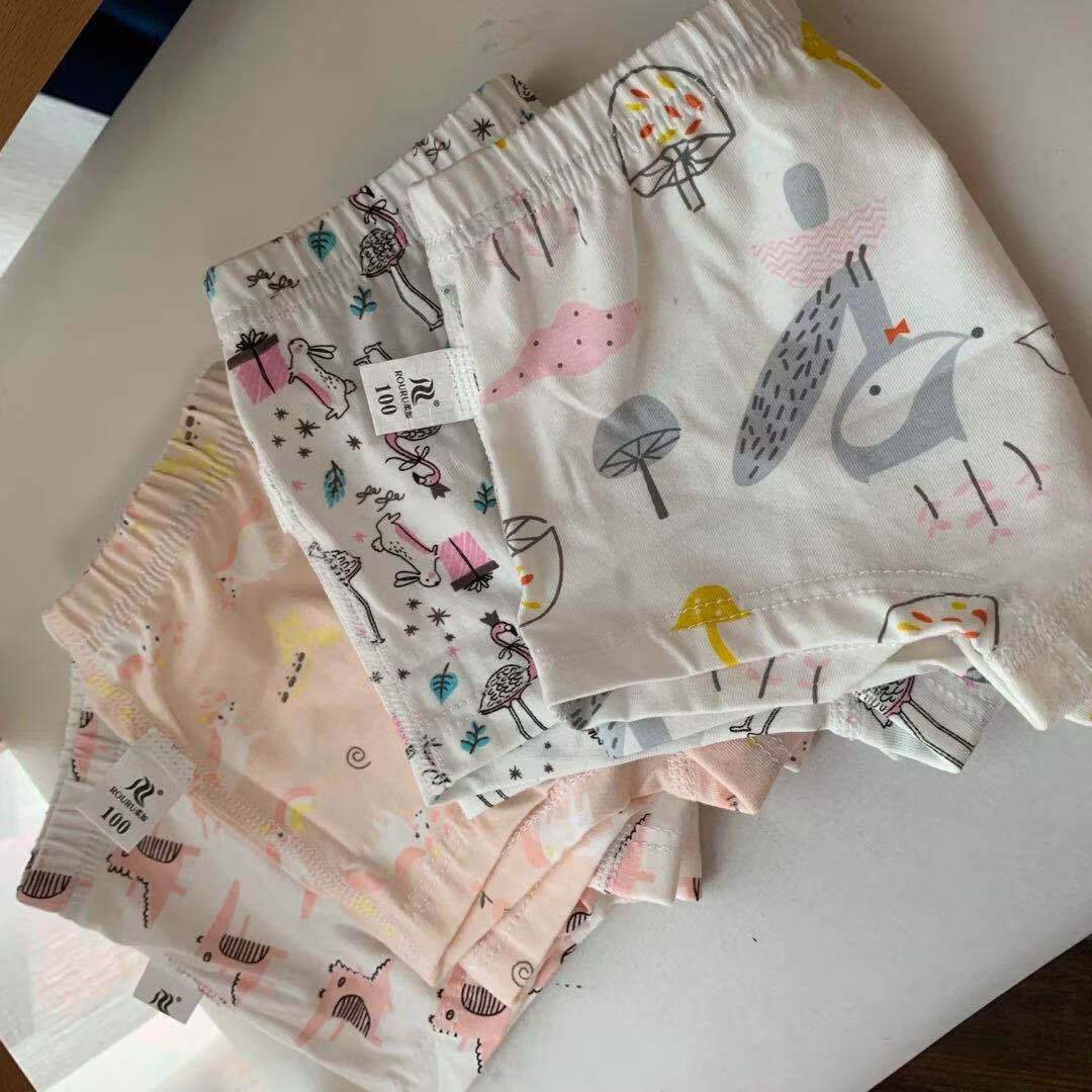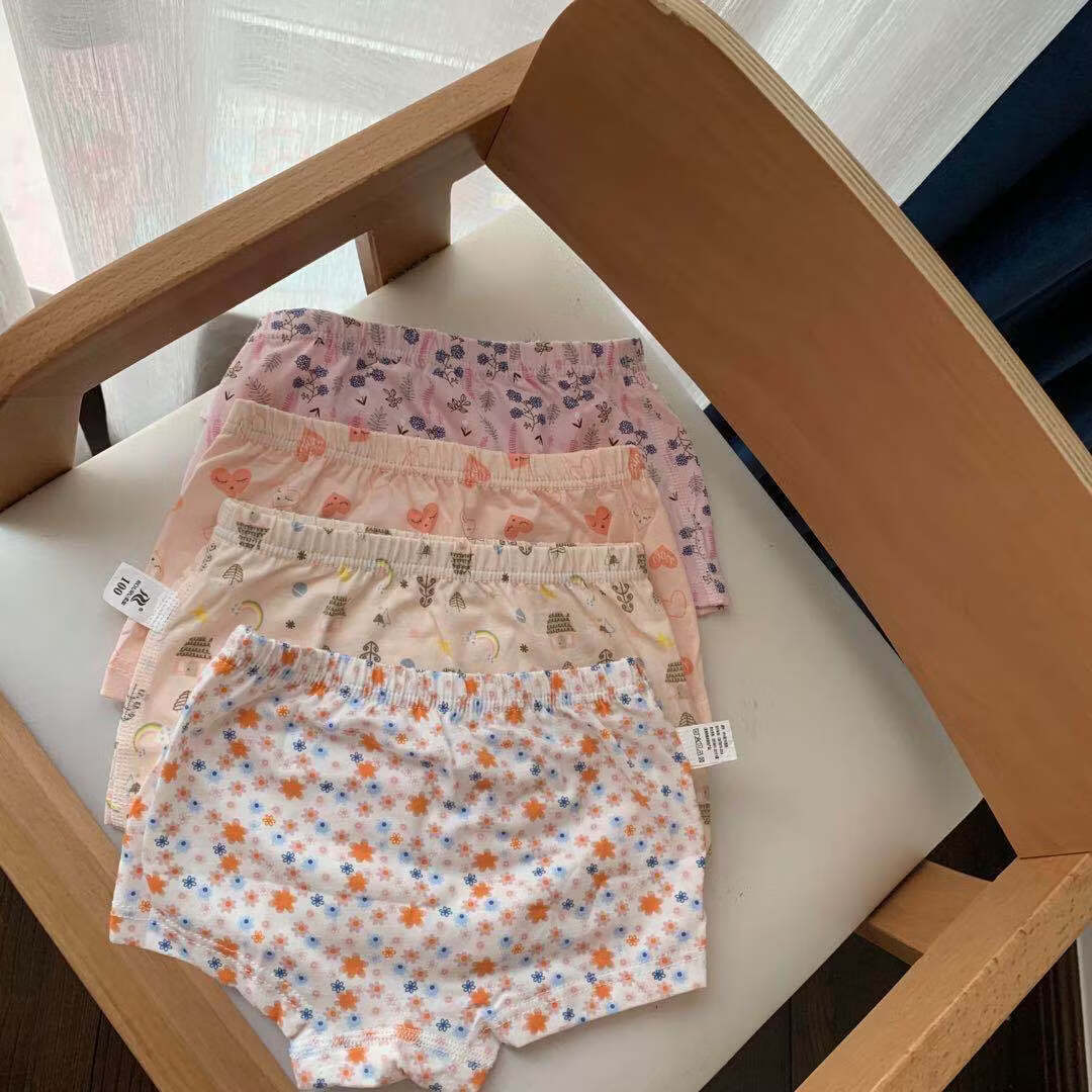 ABJA children's underwear Korean style printed type A cotton boys and girls boxer briefs 4 pack boxer briefs forest animals (girls-children) 100