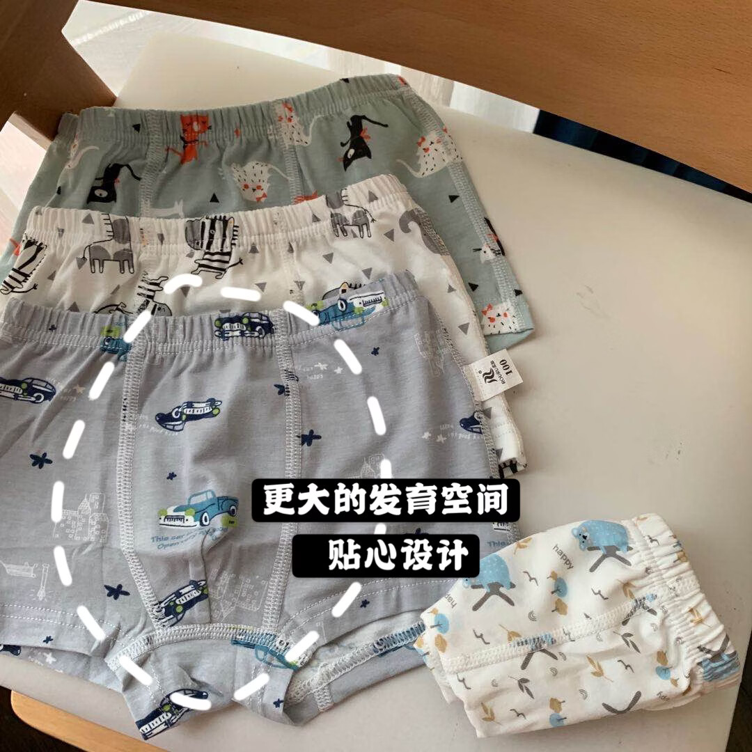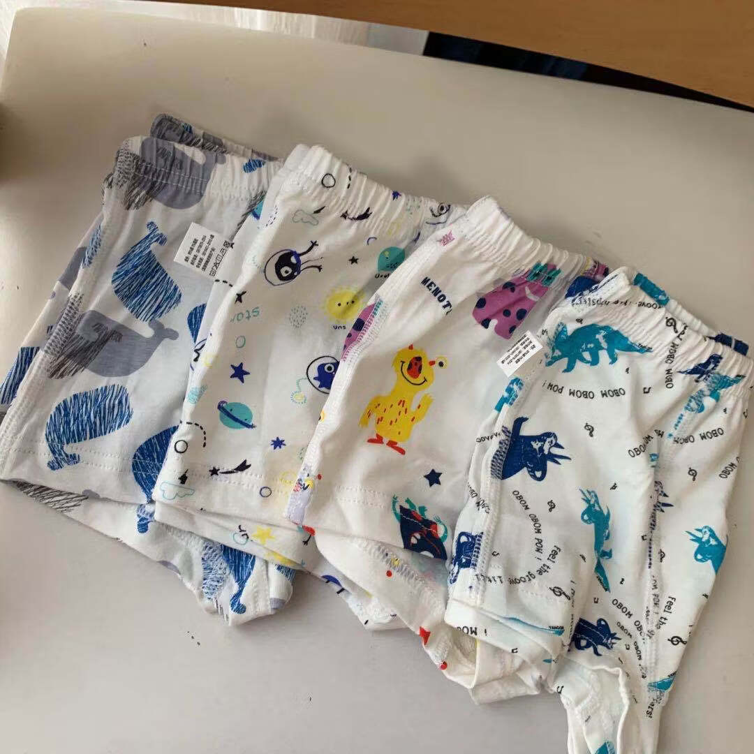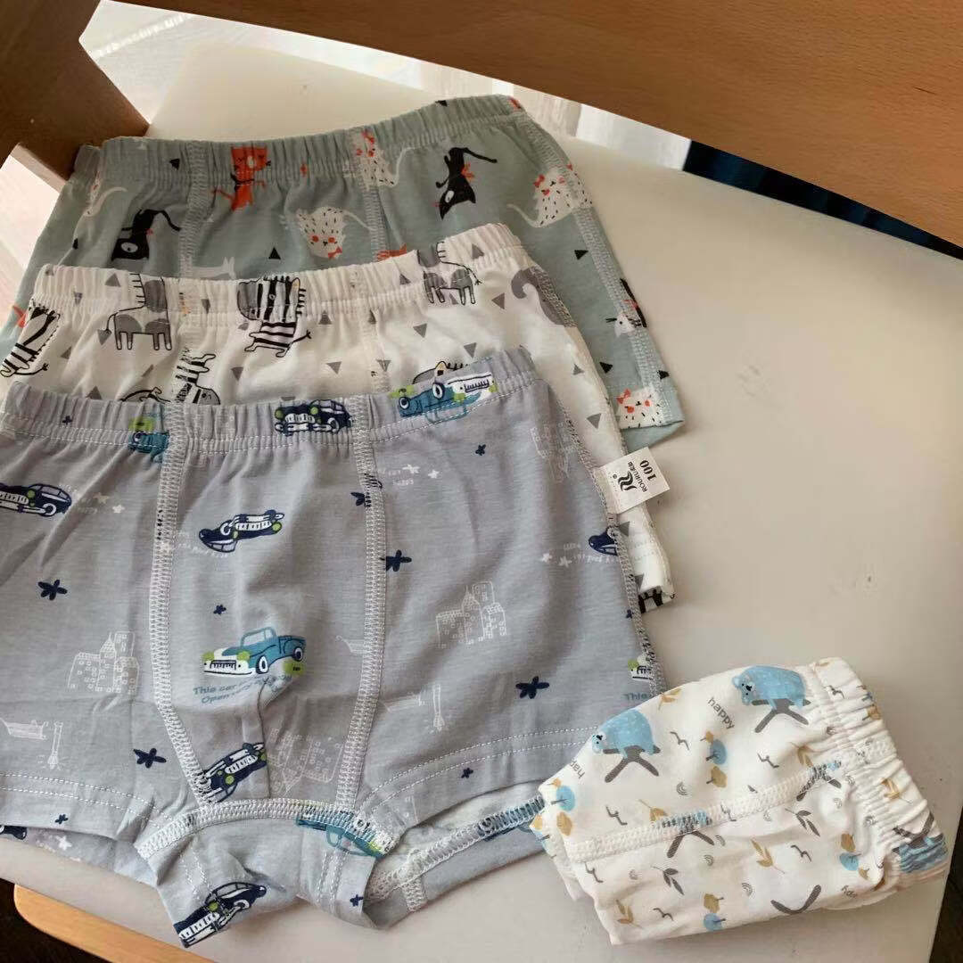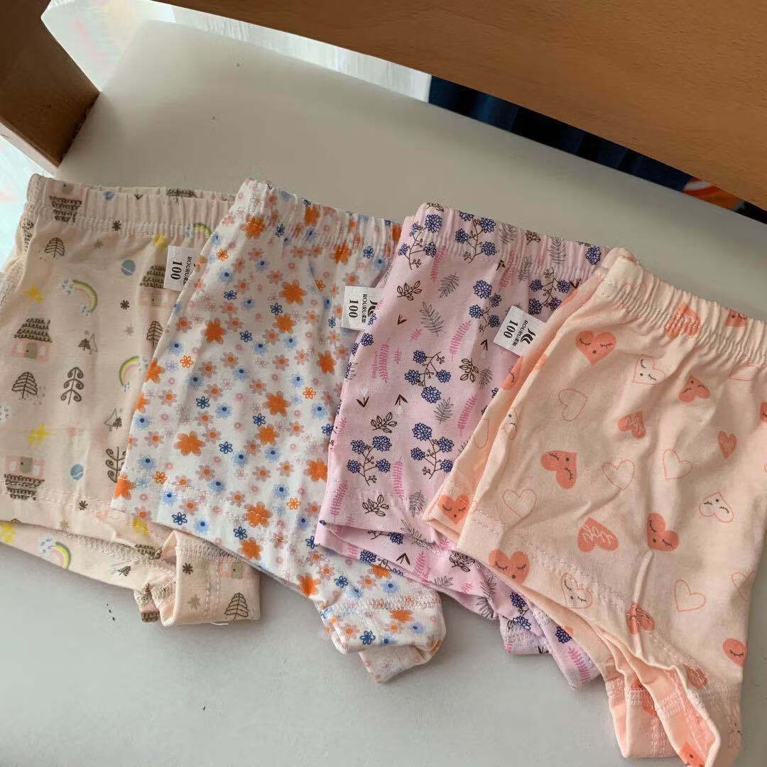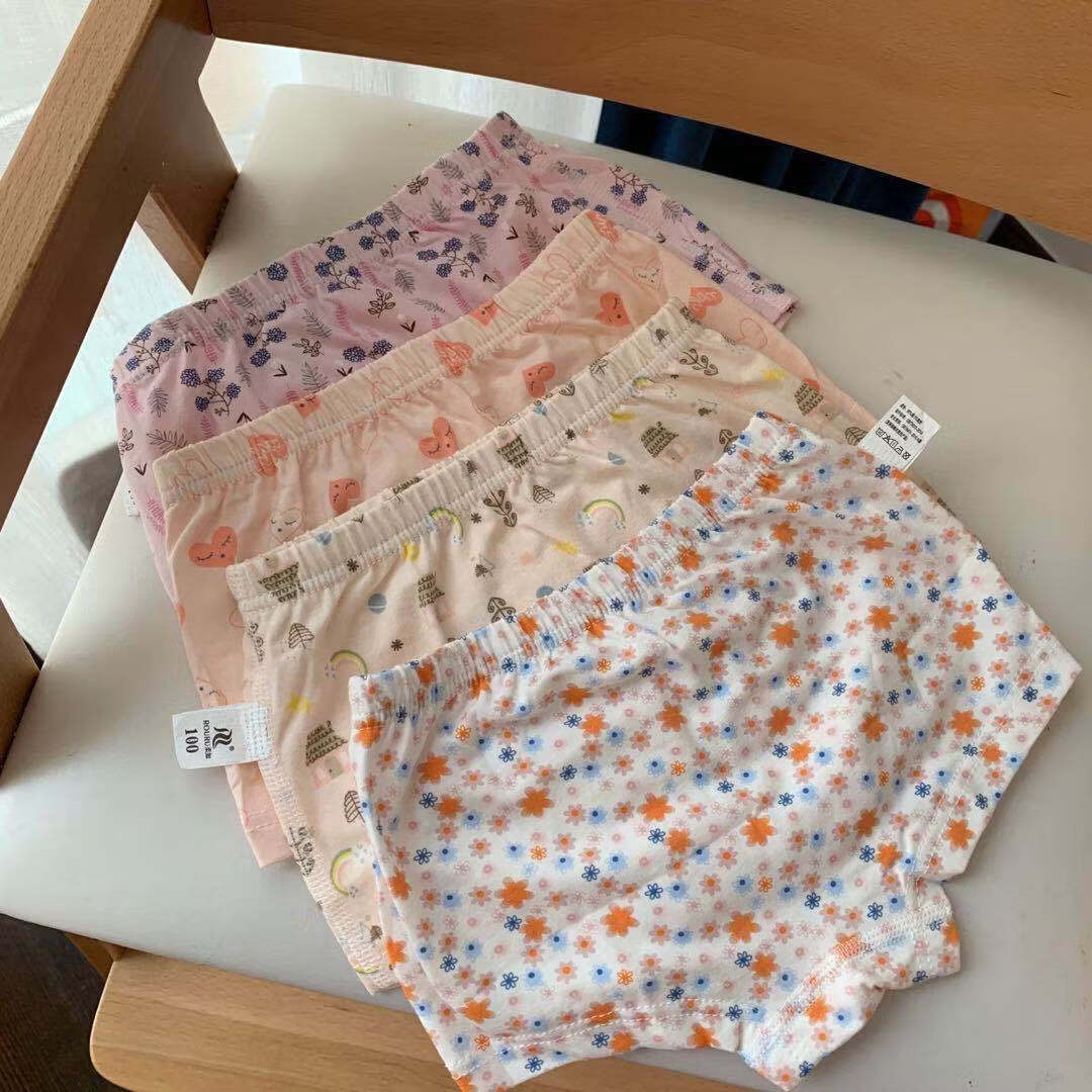 ABJA children's underwear Korean style printed type A cotton boys and girls boxer briefs 4 pack boxer briefs forest animals (girls-children) 100