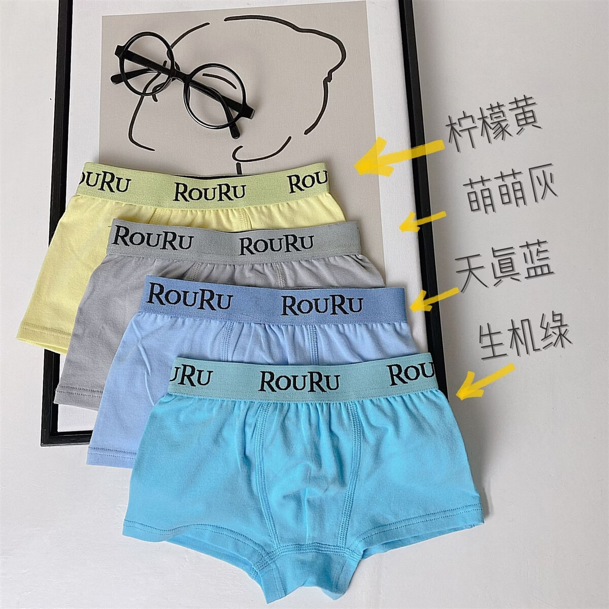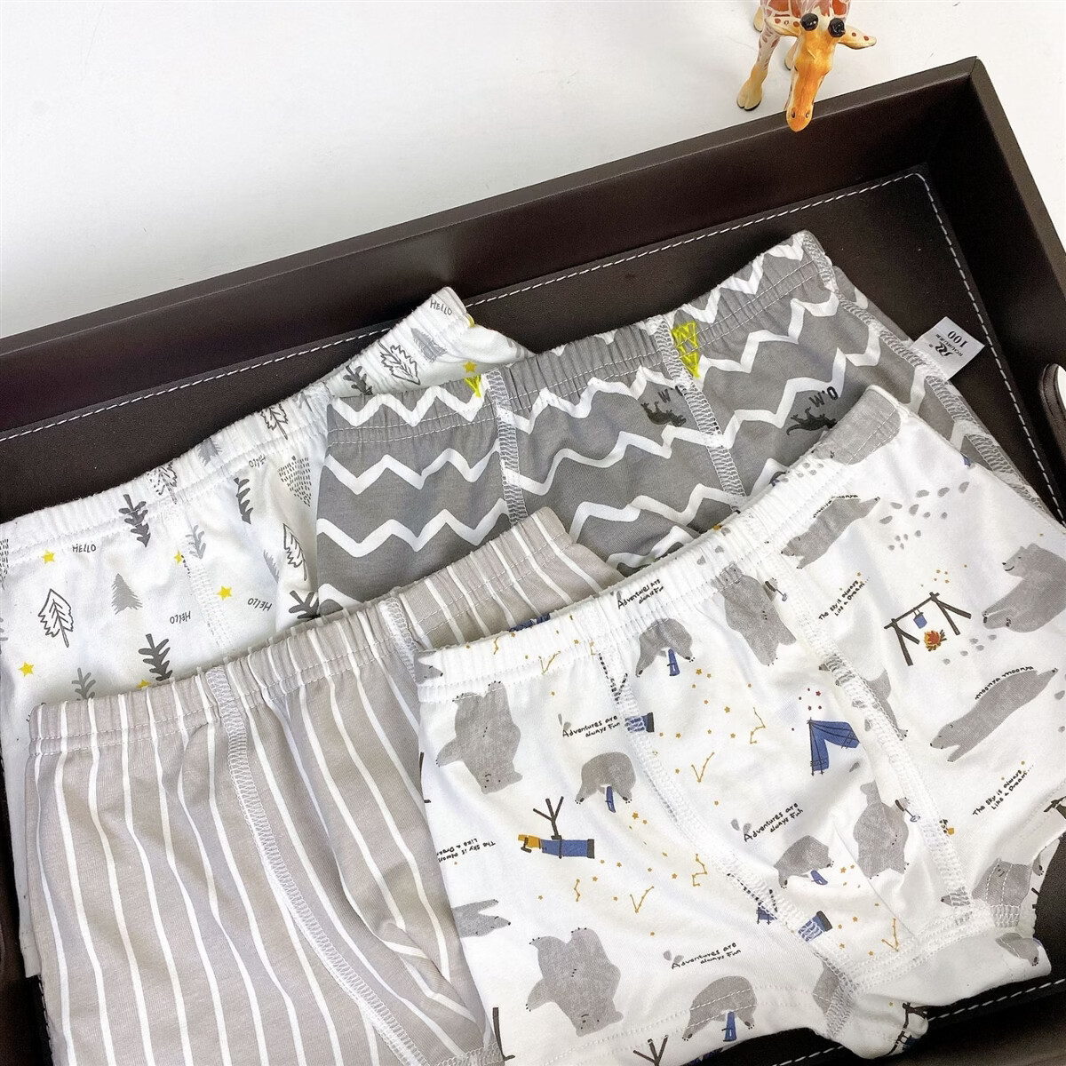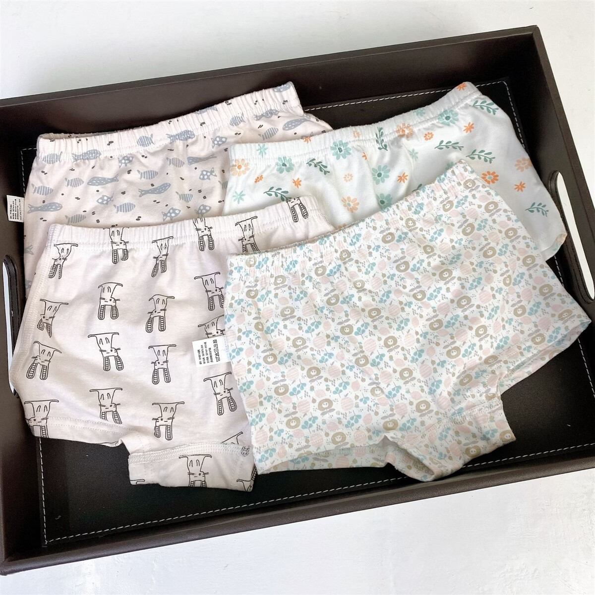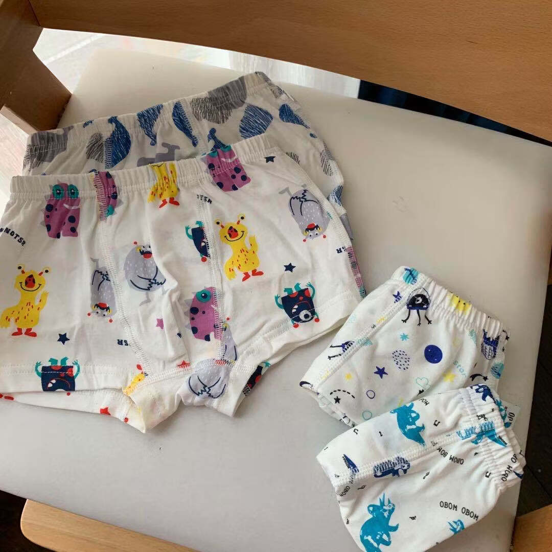 ABJA children's underwear Korean style printed type A cotton boys and girls boxer briefs 4 pack boxer briefs forest animals (girls-children) 100