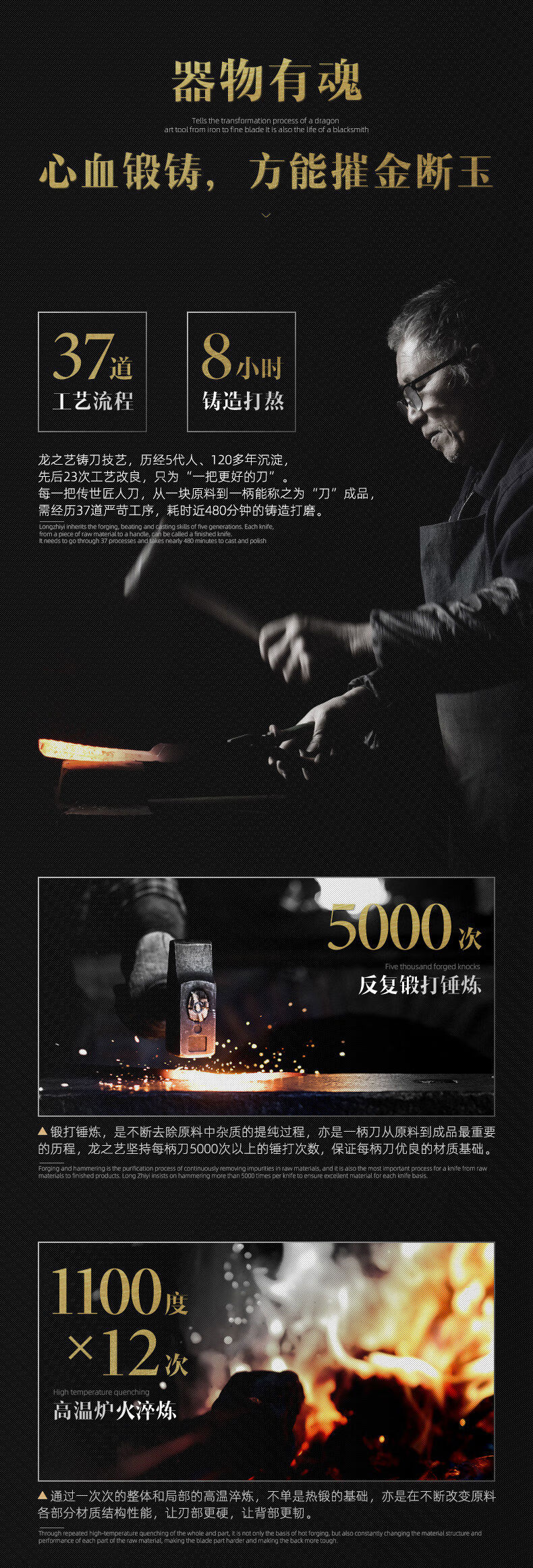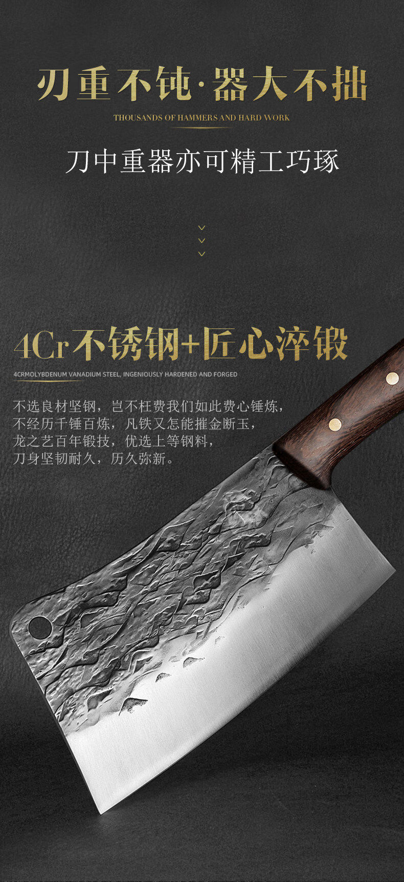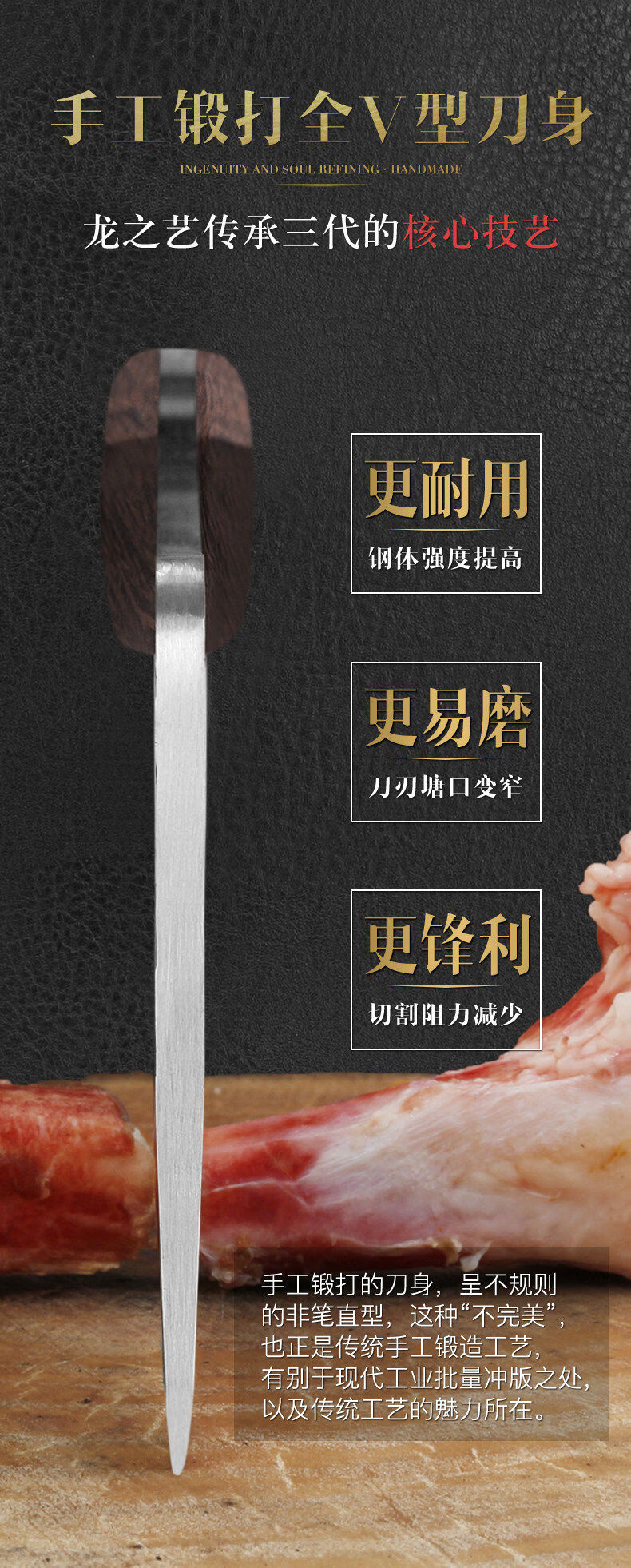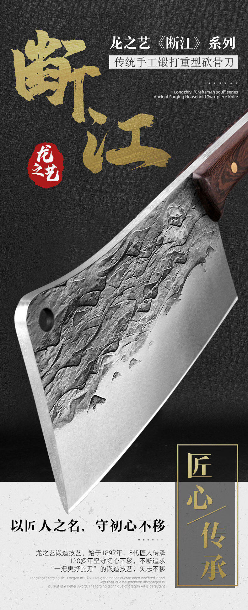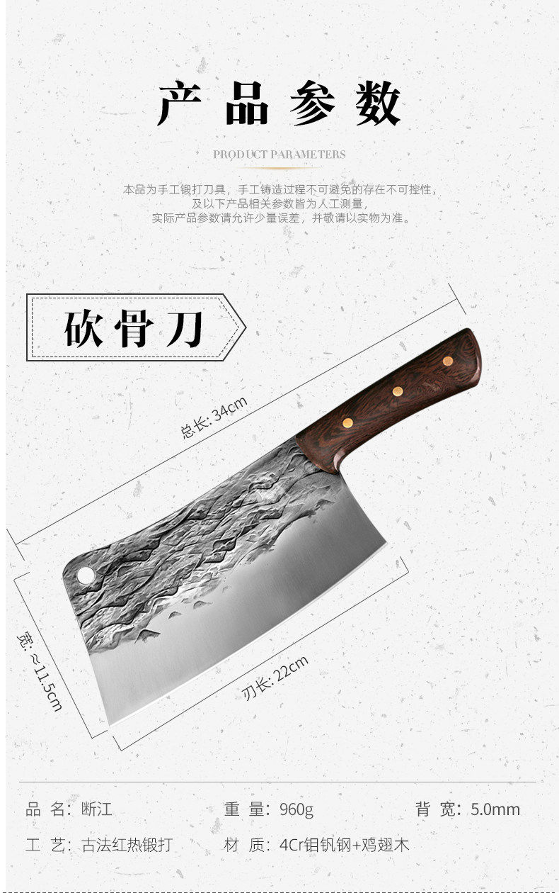 Dragon Art Forged Chopped Bone Butcher Heavy Bone Blue 22cm