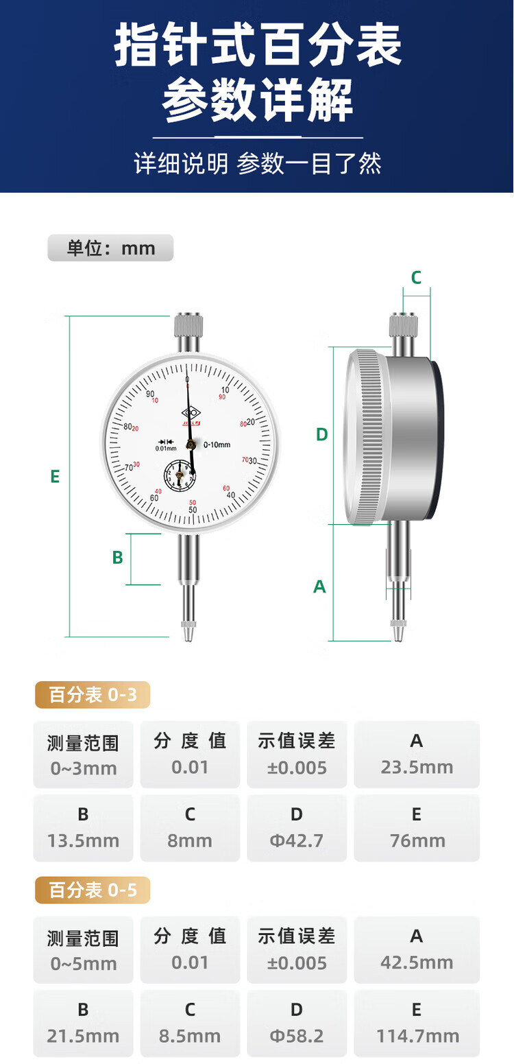 Inner diameter dial indicator indicator 010mm pointer type calibration lever dial indicator 001mm magnetic table base set pointer type 0-10mm dial indicator