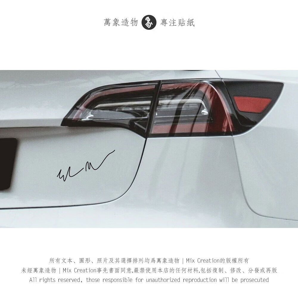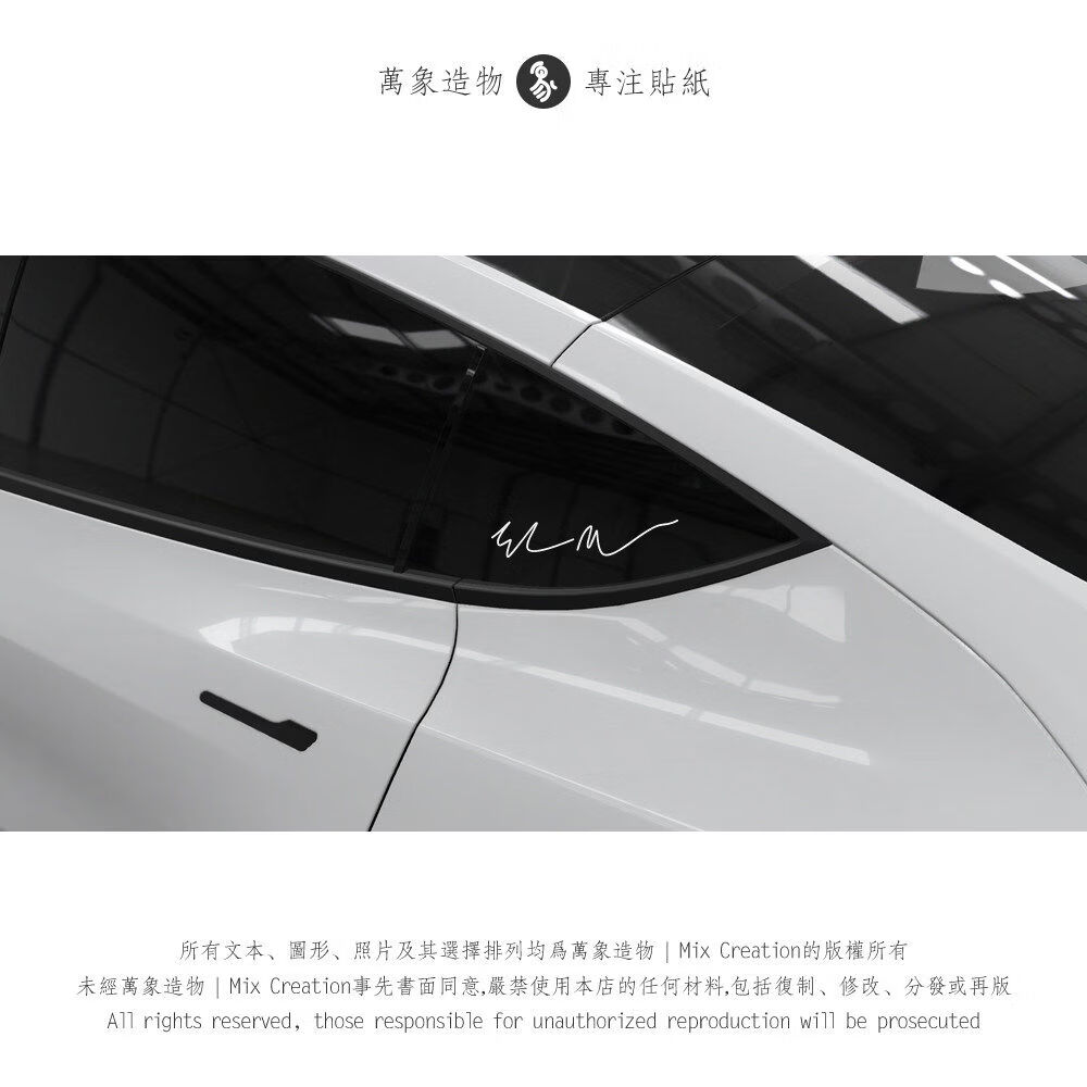Litian MC Tesla ElonMusk signature triangle window charging pile personalized creative reflective waterproof car sticker reflective silver white 20cm*4cm