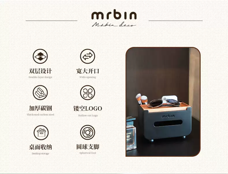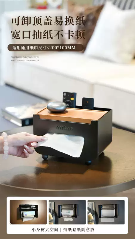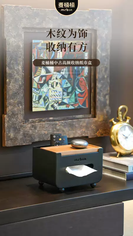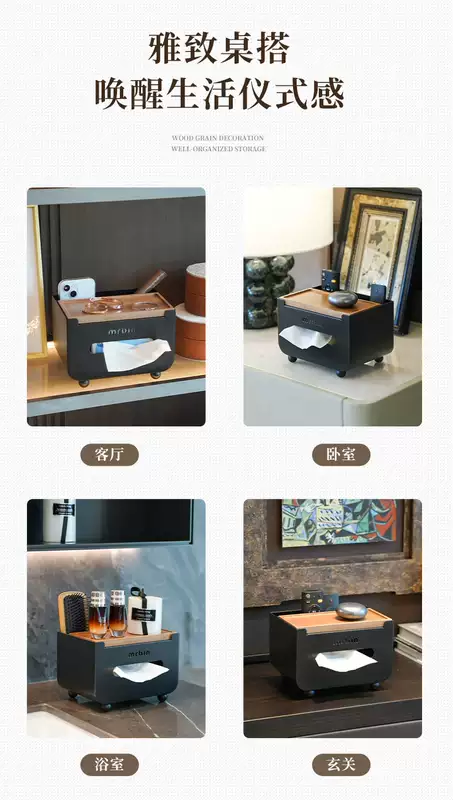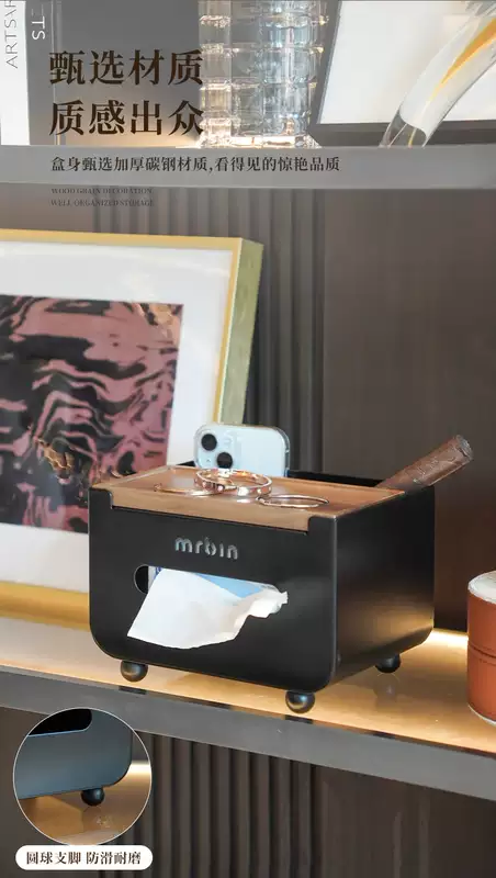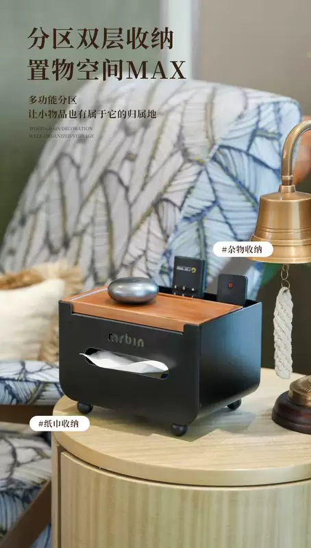 Yusen Yi Mai Bucket Multifunctional Paper Box Feel Premium Living Room Coffee Table Remote Control Storage Light Luxury Box Tissue Desktop Bucket Creative Walnut Black Buck Double Layer Storage Tissue Box | Medieval Beauty