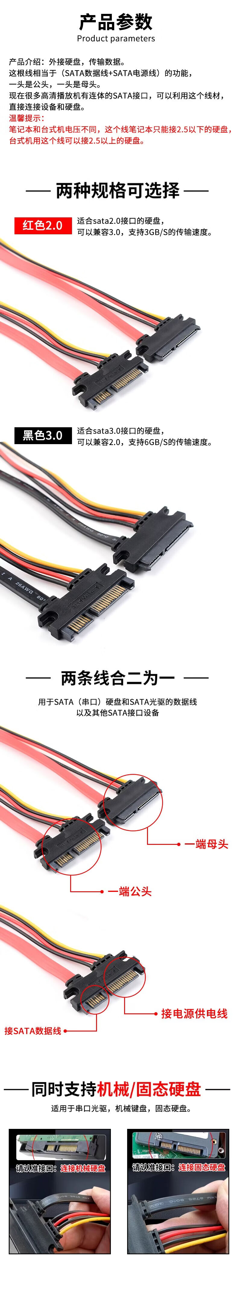 DZQJ SATA7+15 extension cable SATA data power extension cable Male to female hard drive extension cable Serial port power cable Black 3.0 SATA 7+15 male to female 30cm No Specifications